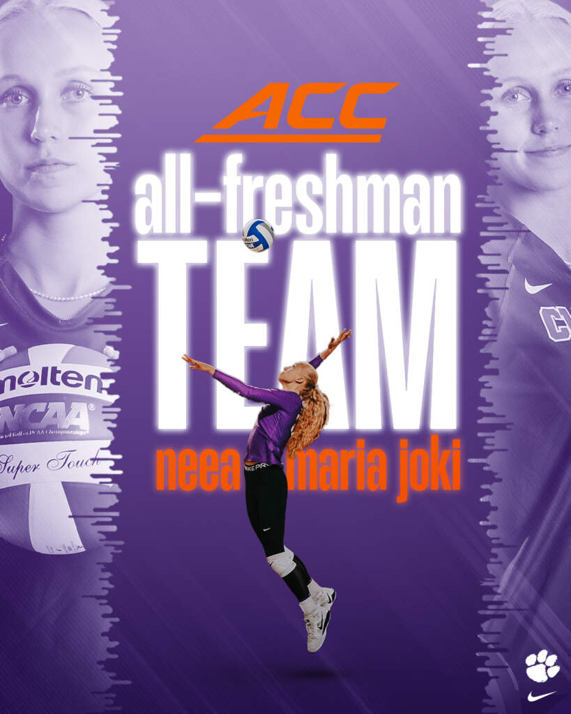 CLEMSON, S.C. – Freshman pin attacker Neea-Maria Joki earned 2024 All-ACC honors, the conference office announced Monday. Joki was an ACC All-Freshman selection, the first for the Tigers since 2022, and became the 25th Clemson volleyball player to garner All-Freshman honors dating back to 1993. Her honor is also the fourth All-ACC or ACC All-Freshman accolade to be award to a player under Clemson Head Coach Jackie Simpson Kirr.