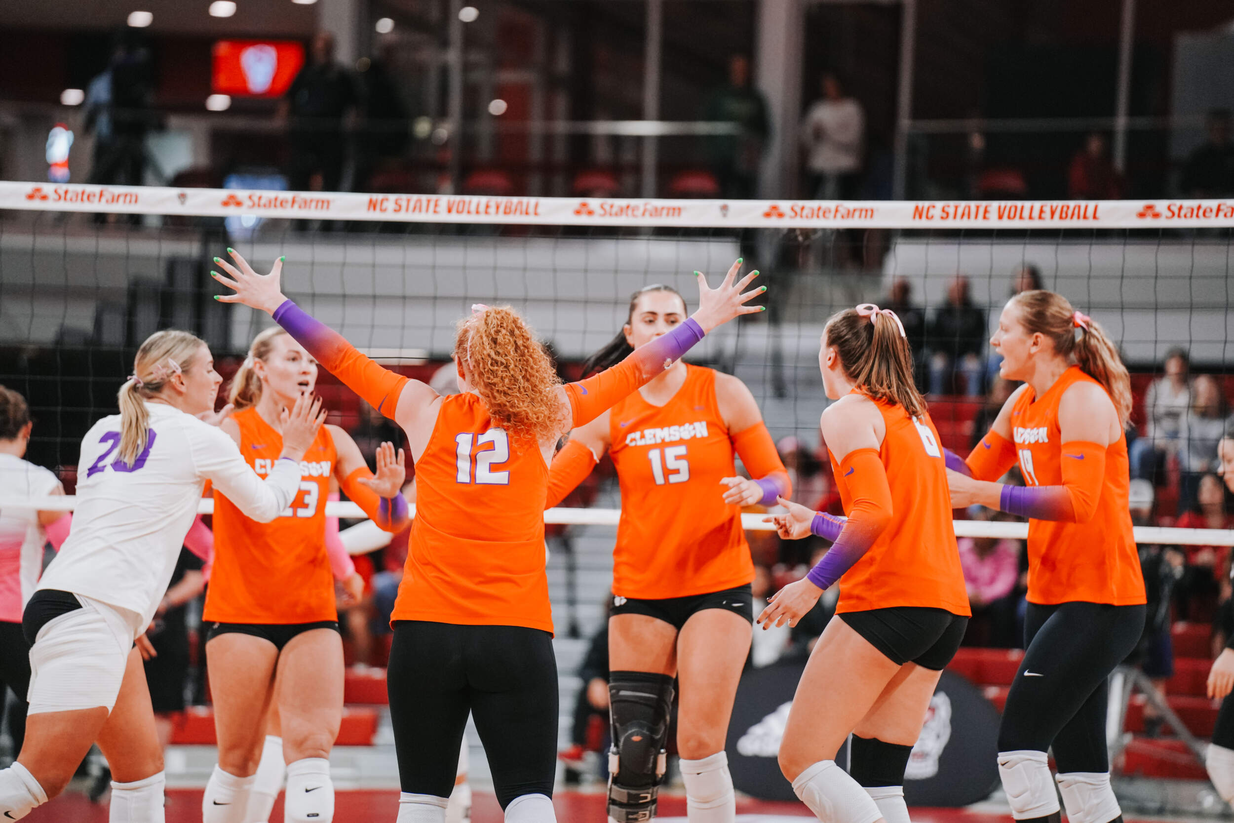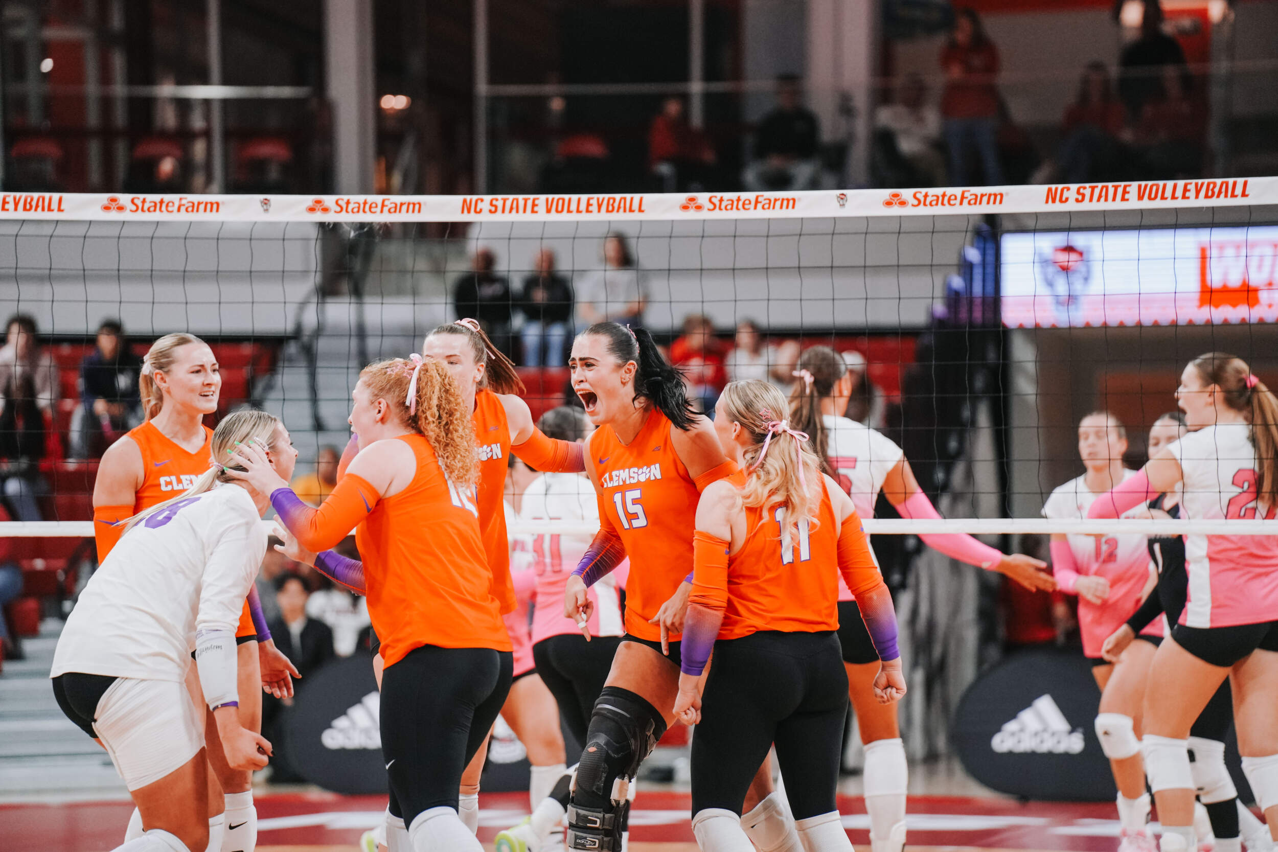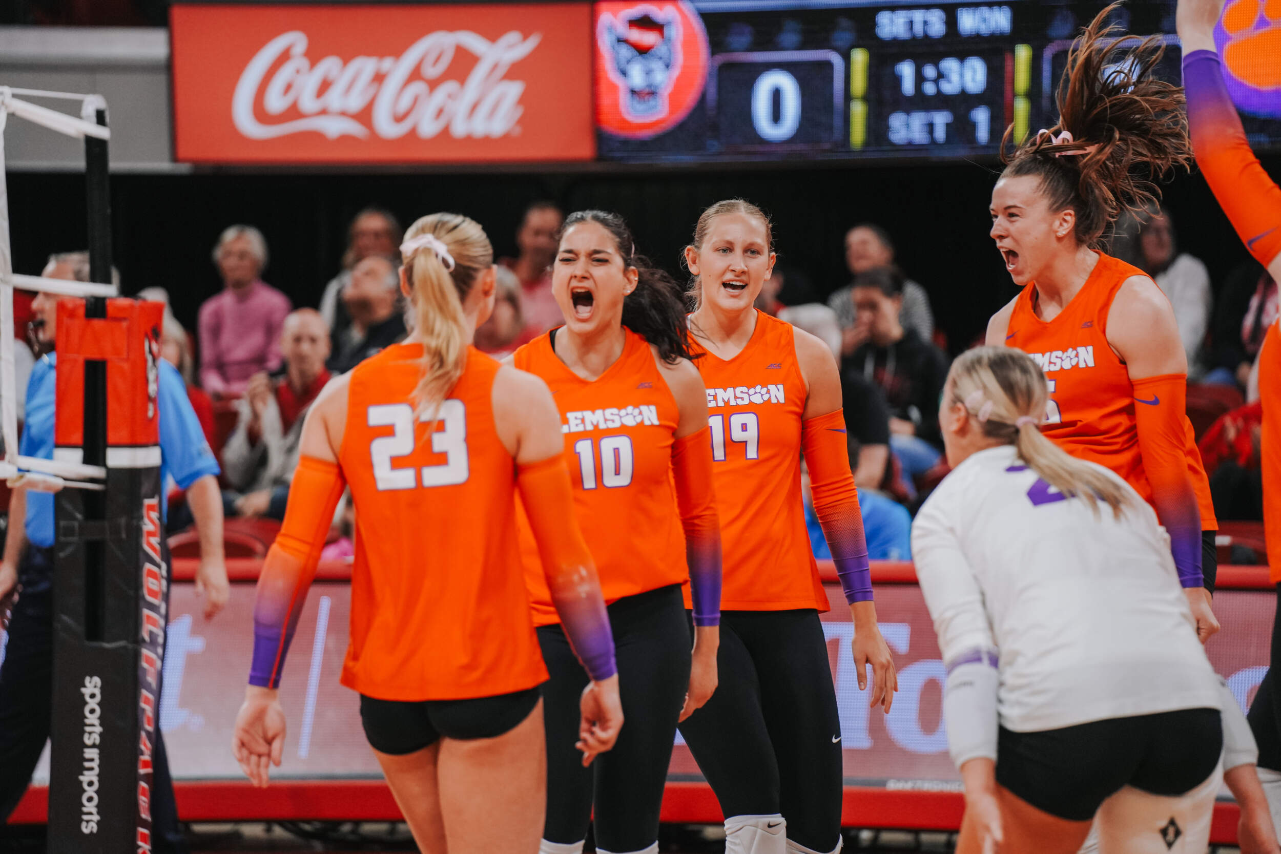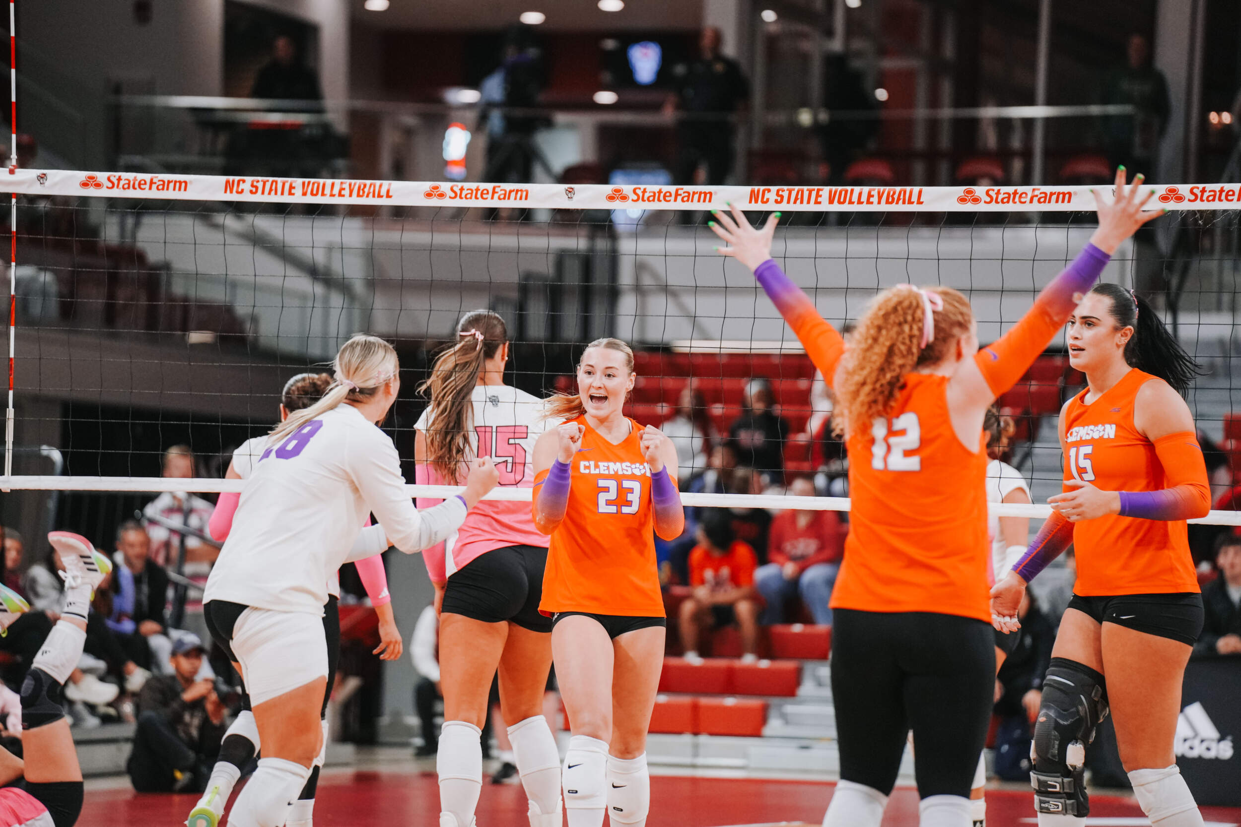 The Tigers jumped out to a strong start behind two different aces at the hands of Claire Luoma and Kate Simington. Nil Okur and Mia McGrath added kills that helped Clemson hold a 15-14 lead heading into the media timeout. Clemson continued on a four-point stretch coming out of the timeout followed by Simington, Okur and Katie Hurta recording kills that had NC State using both of its timeouts. The Tigers sealed the set victory, 25-21, with a kill by McGrath, who clocked five kills in the opening frame.