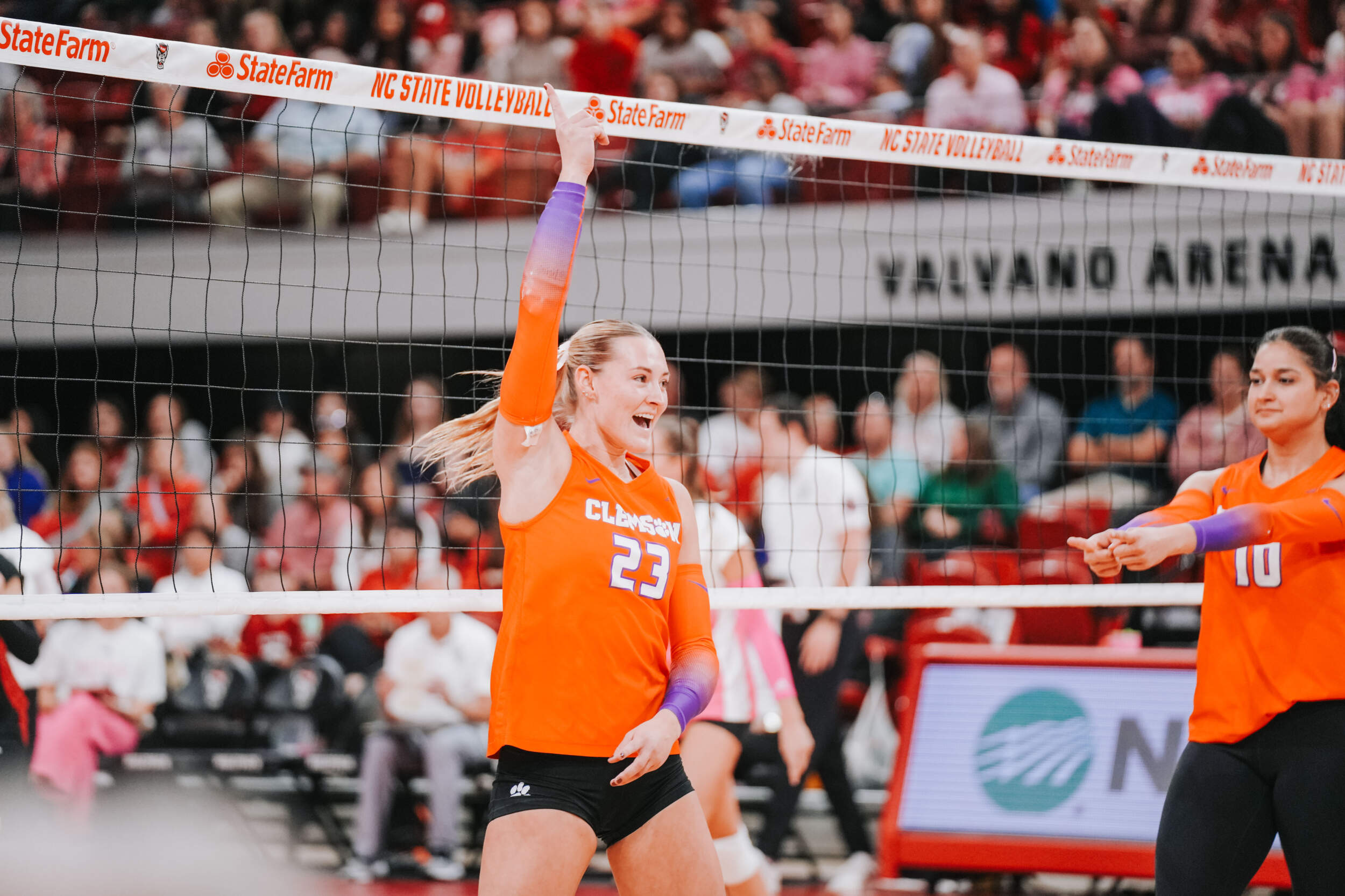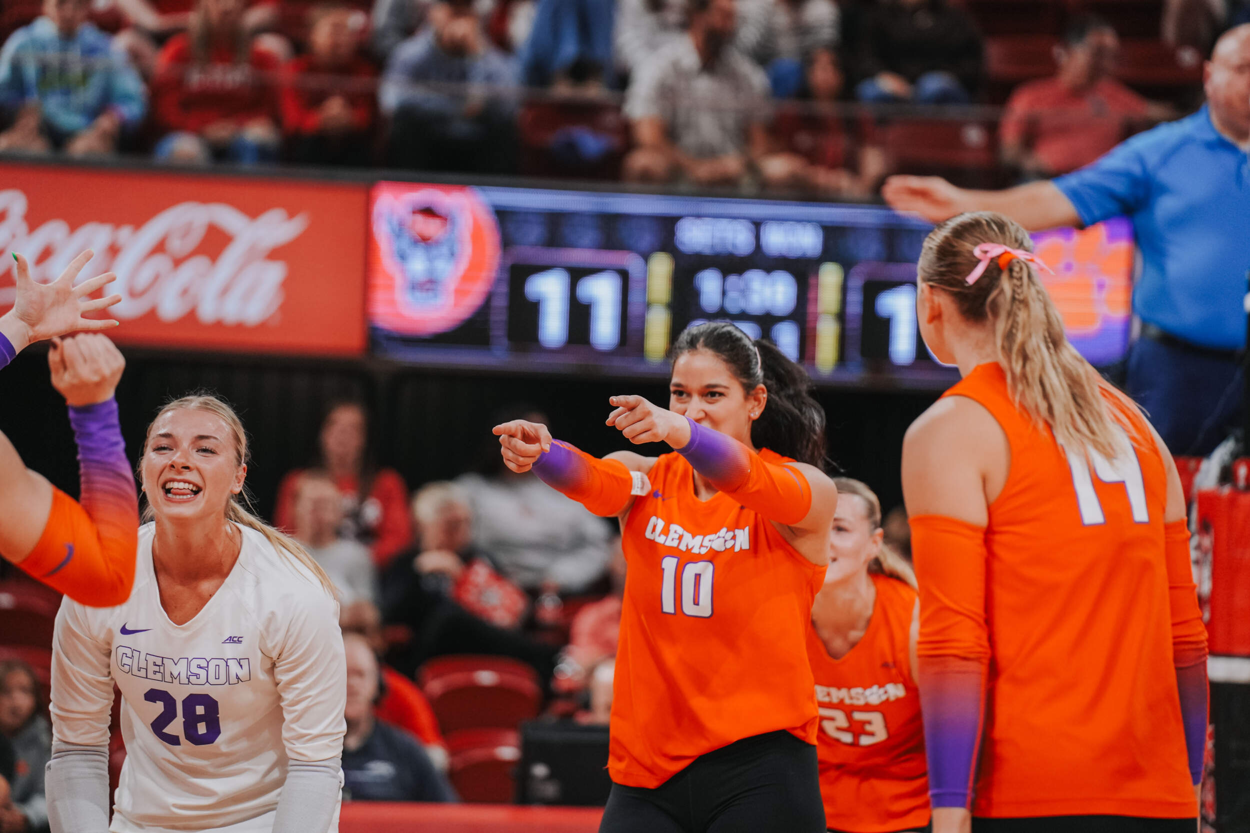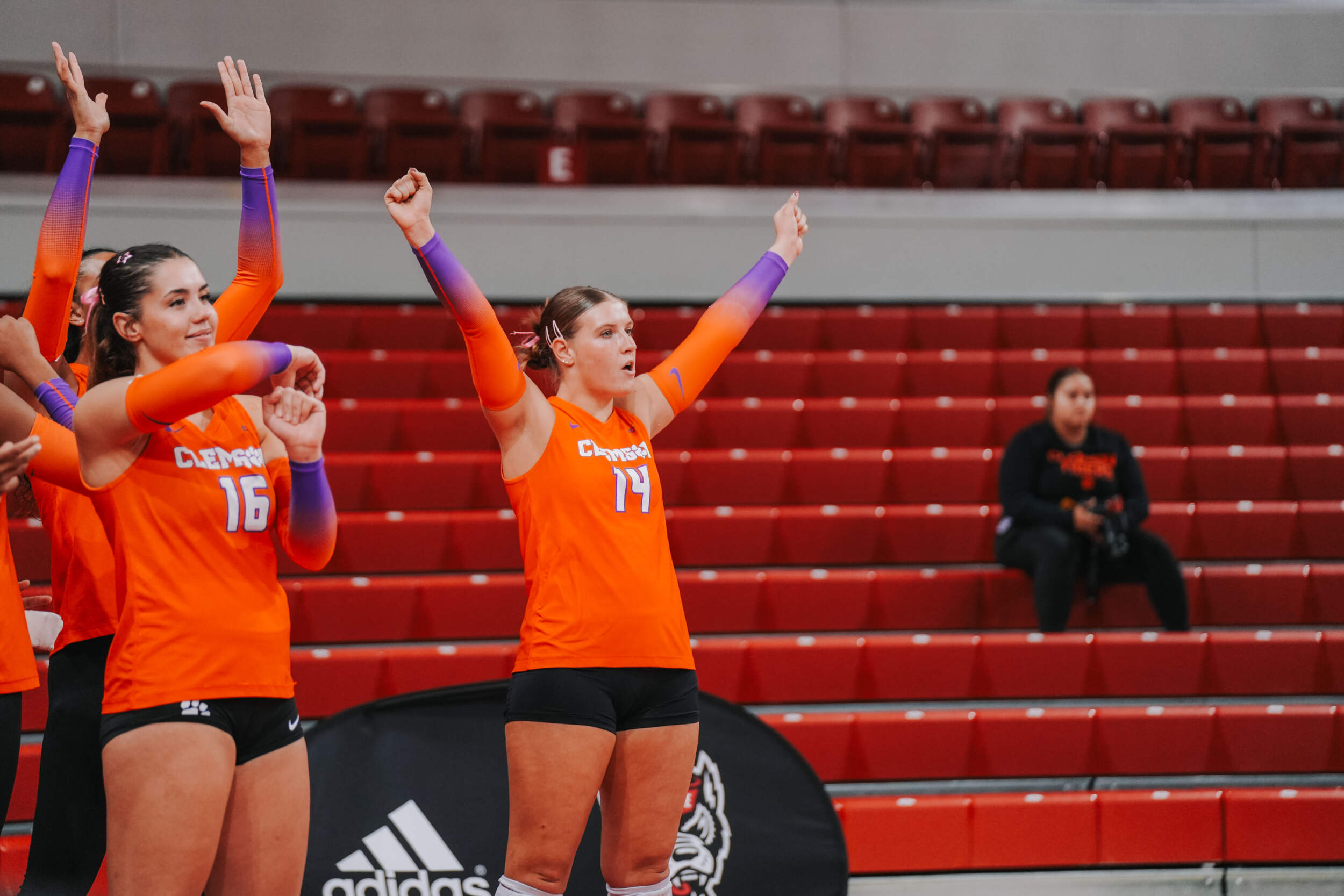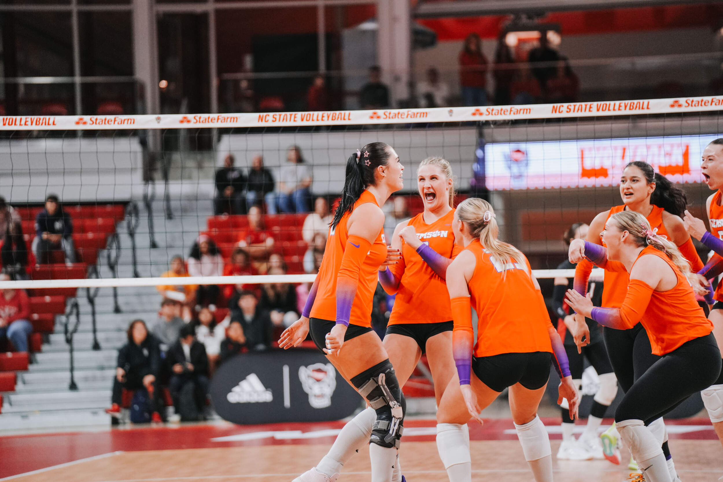The Tigers jumped out to a strong start behind two different aces at the hands of Claire Luoma and Kate Simington. Nil Okur and Mia McGrath added kills that helped Clemson hold a 15-14 lead heading into the media timeout. Clemson continued on a four-point stretch coming out of the timeout followed by Simington, Okur and Katie Hurta recording kills that had NC State using both of its timeouts. The Tigers sealed the set victory, 25-21, with a kill by McGrath, who clocked five kills in the opening frame.