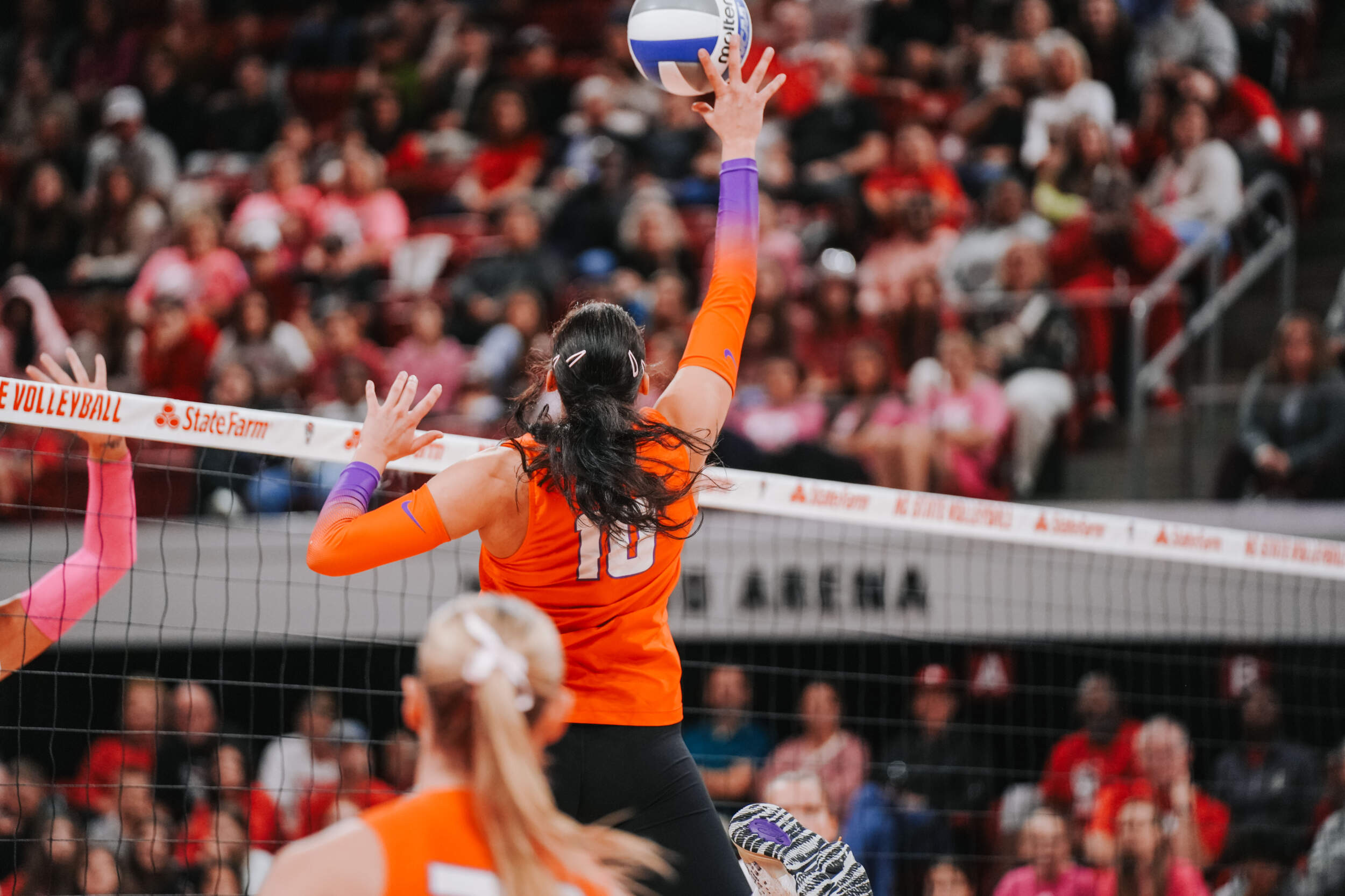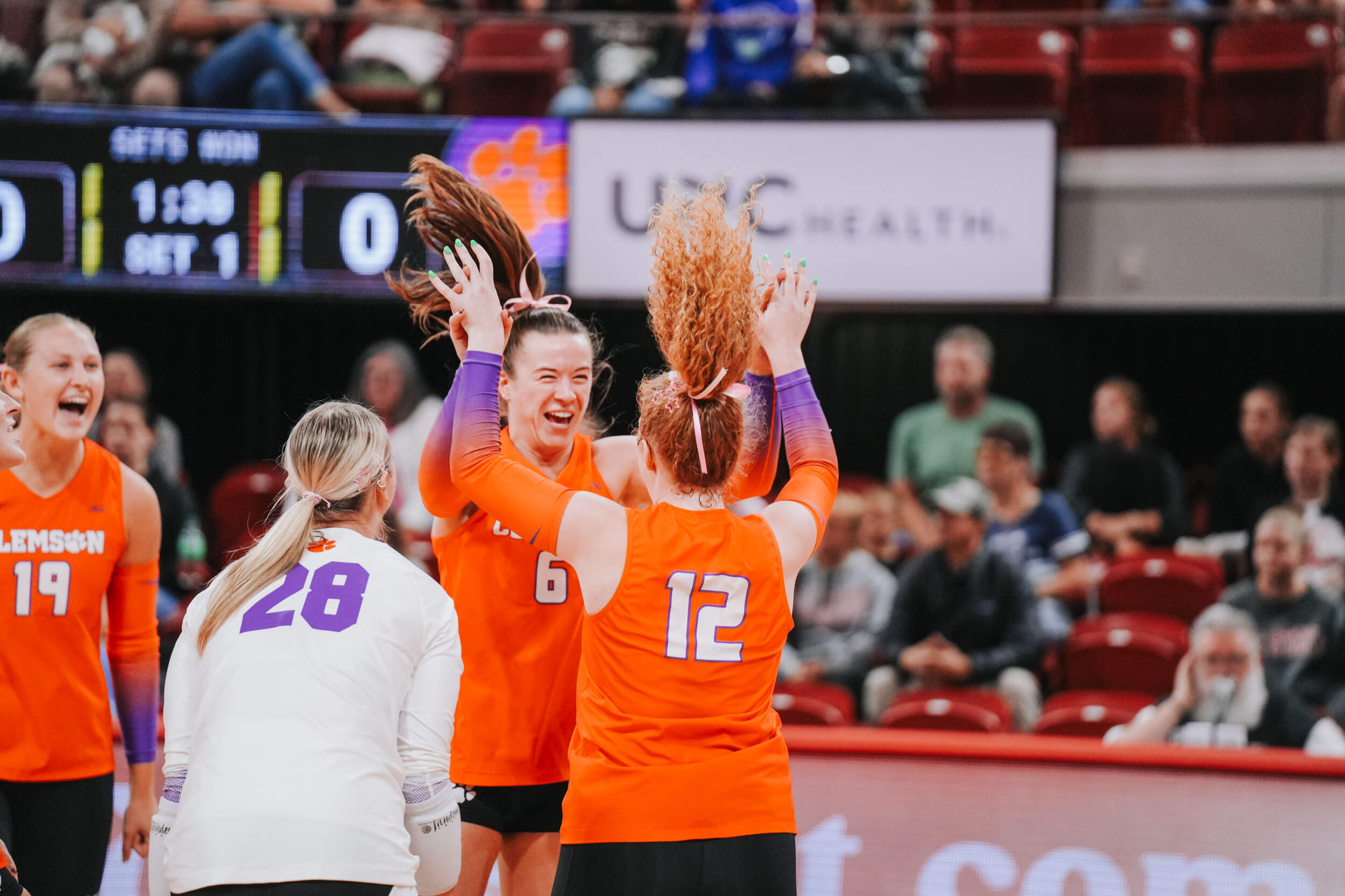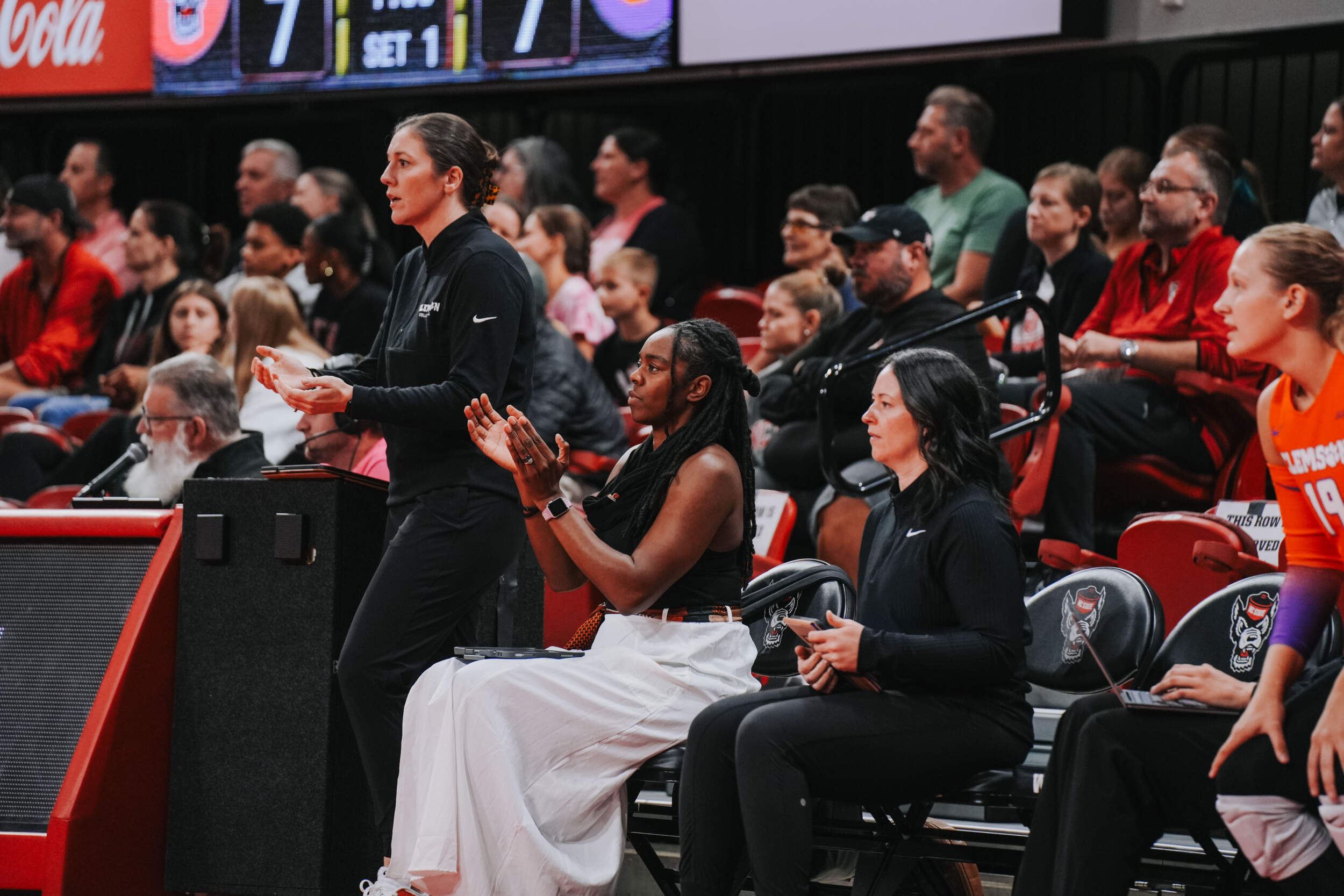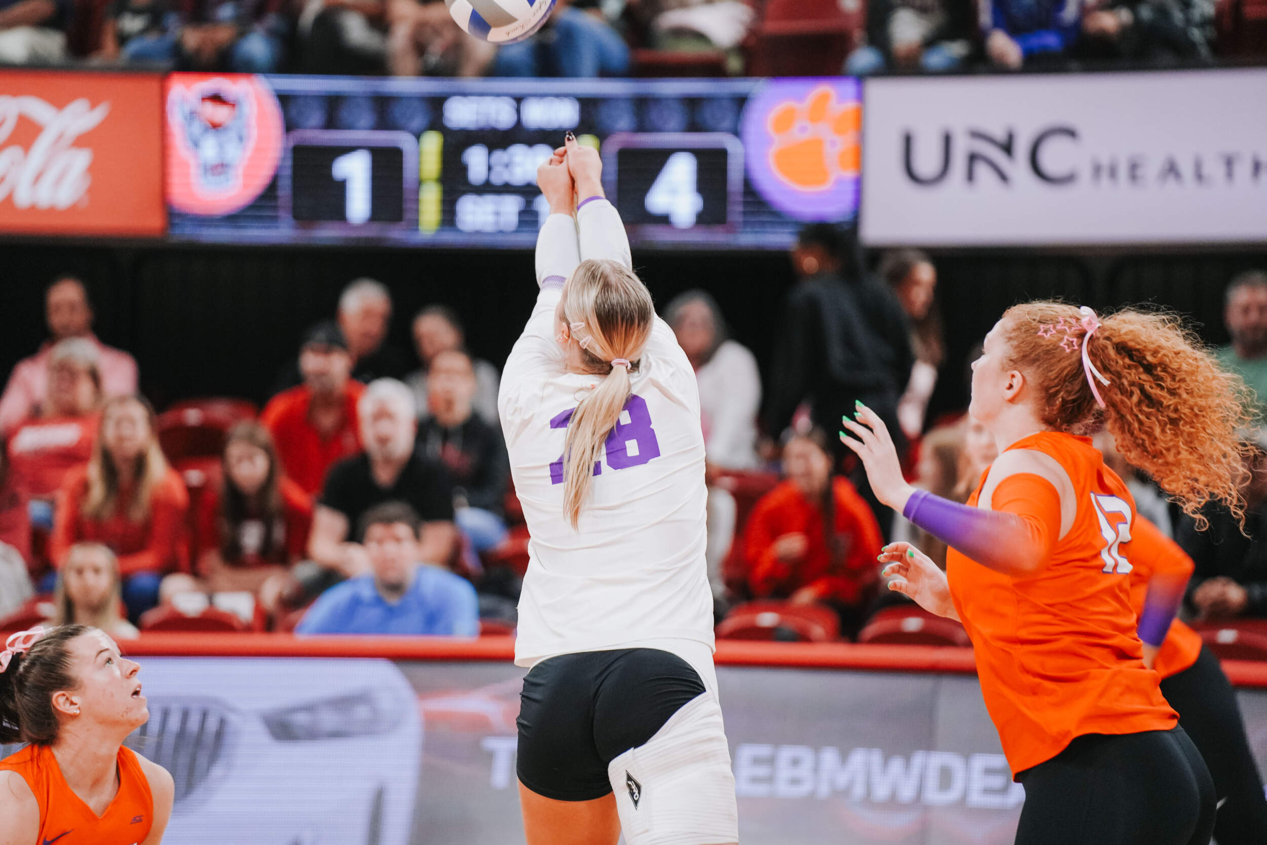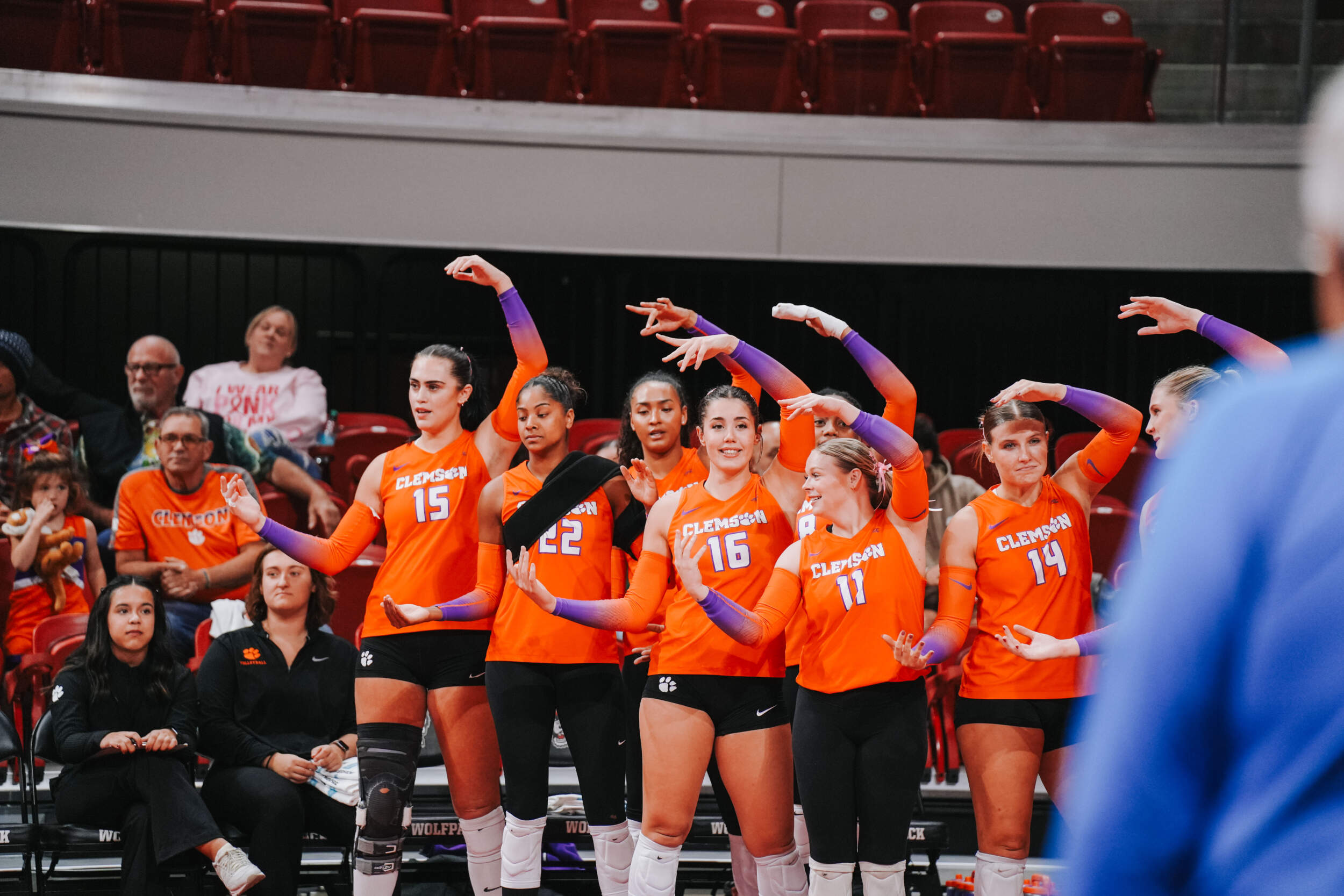 The Tigers jumped out to a strong start behind two different aces at the hands of Claire Luoma and Kate Simington. Nil Okur and Mia McGrath added kills that helped Clemson hold a 15-14 lead heading into the media timeout. Clemson continued on a four-point stretch coming out of the timeout followed by Simington, Okur and Katie Hurta recording kills that had NC State using both of its timeouts. The Tigers sealed the set victory, 25-21, with a kill by McGrath, who clocked five kills in the opening frame.
