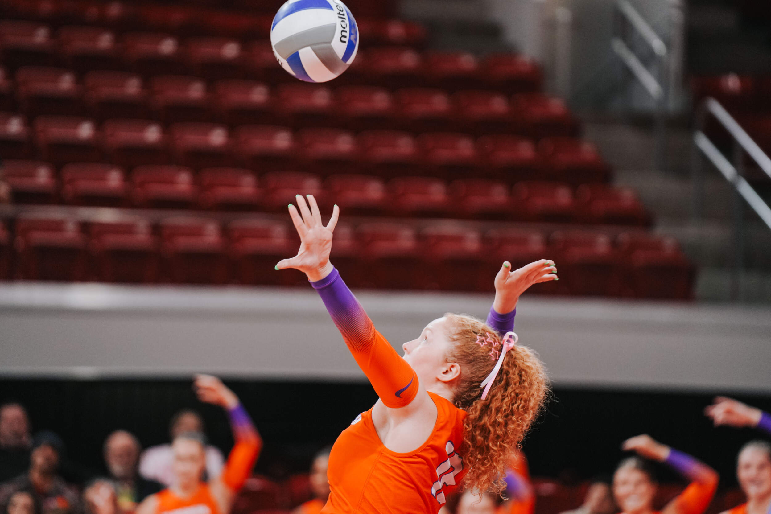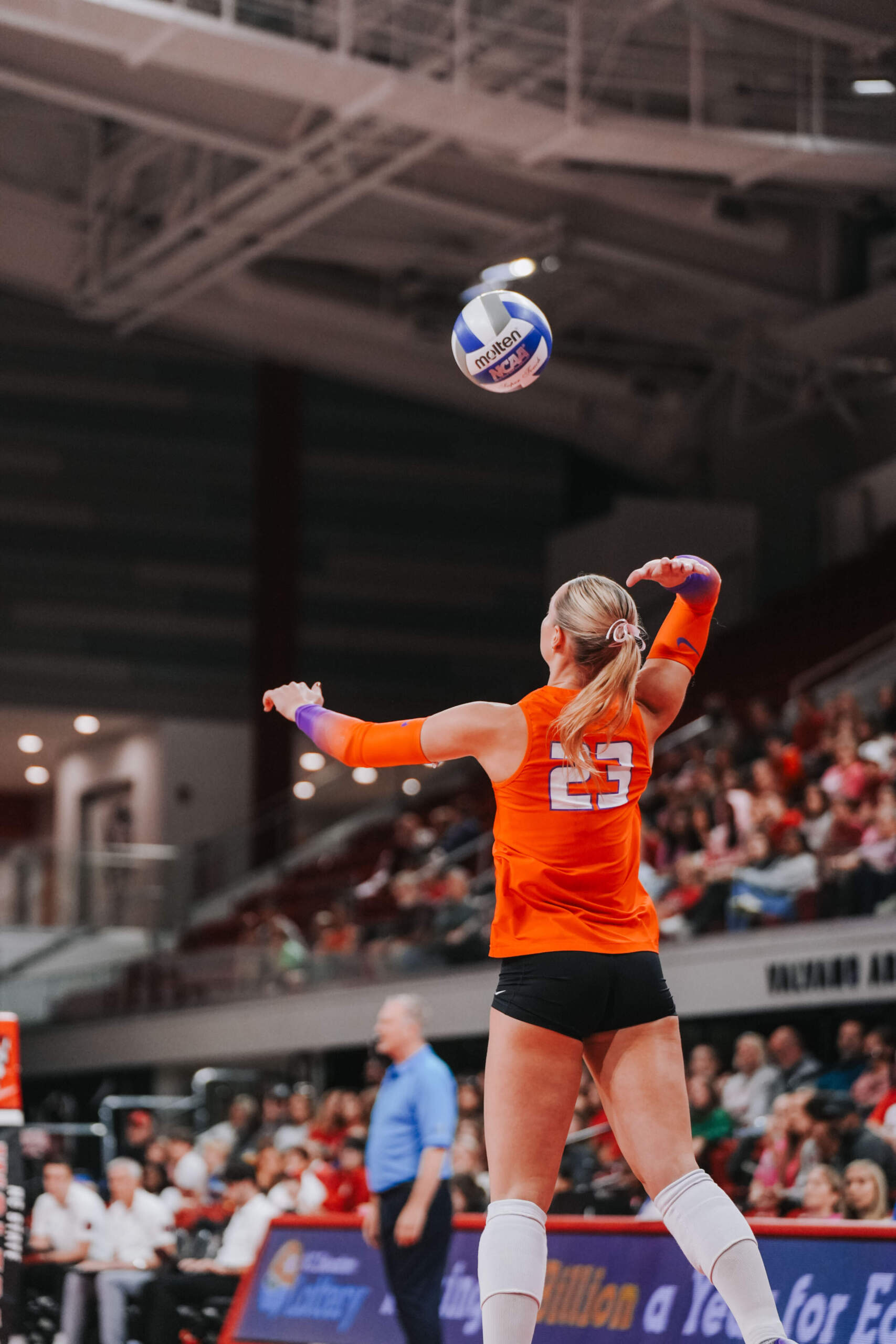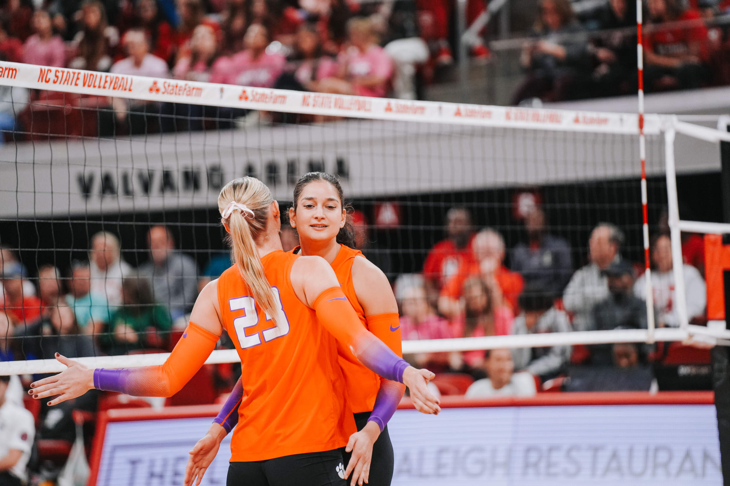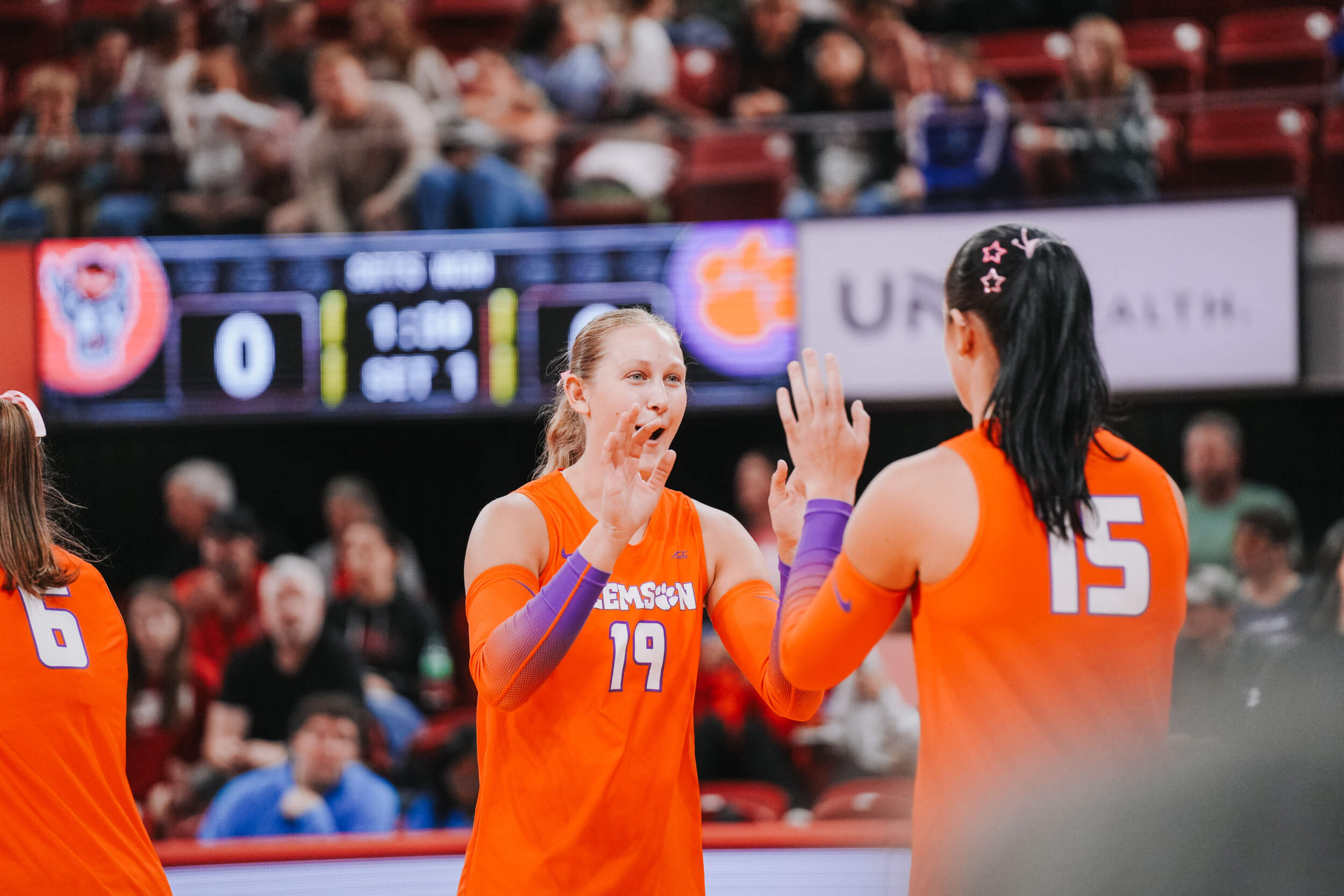 The Tigers jumped out to a strong start behind two different aces at the hands of Claire Luoma and Kate Simington. Nil Okur and Mia McGrath added kills that helped Clemson hold a 15-14 lead heading into the media timeout. Clemson continued on a four-point stretch coming out of the timeout followed by Simington, Okur and Katie Hurta recording kills that had NC State using both of its timeouts. The Tigers sealed the set victory, 25-21, with a kill by McGrath, who clocked five kills in the opening frame.