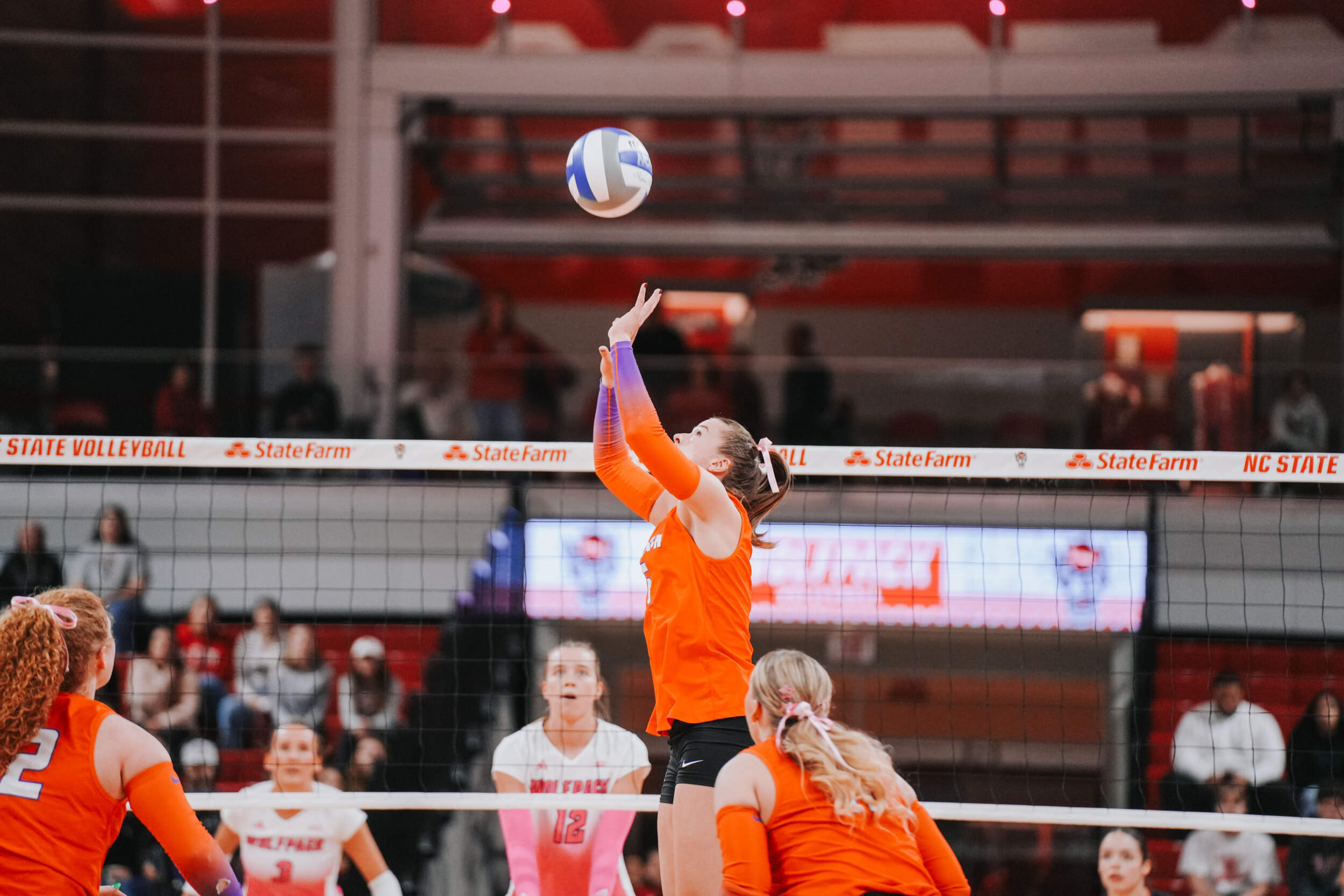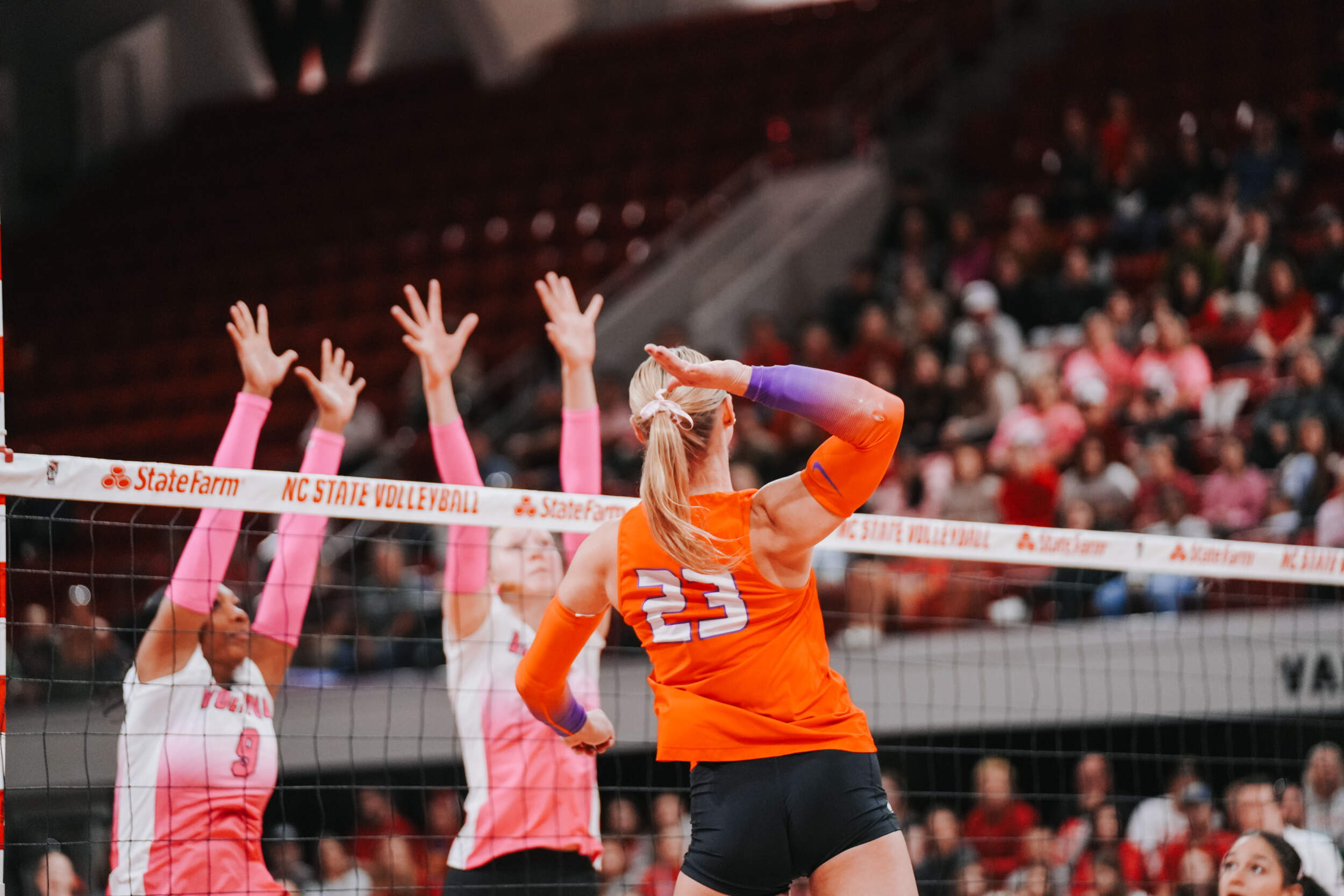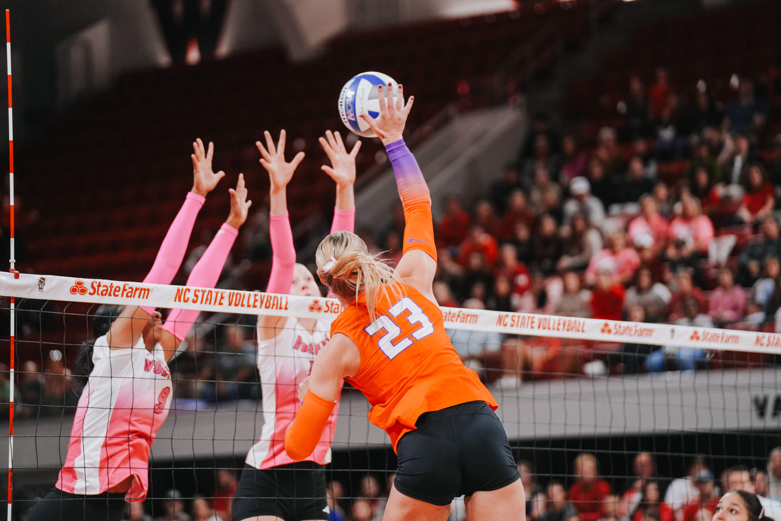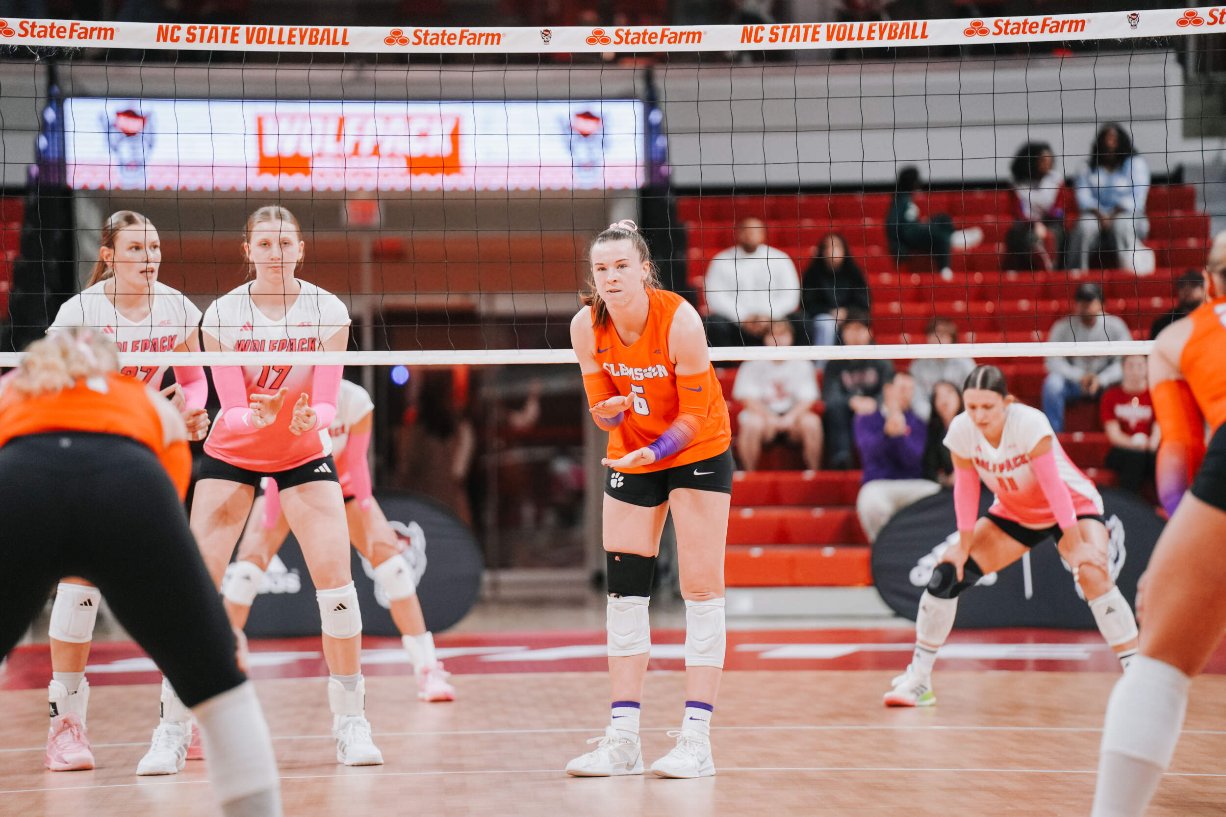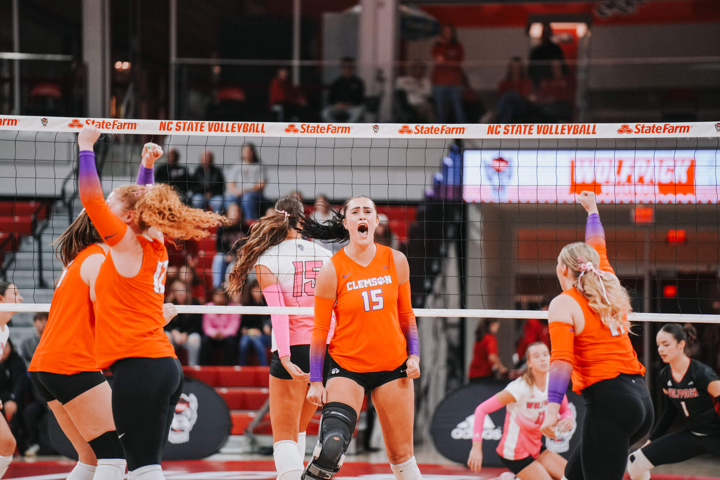 The Wolfpack responded by taking sets two and three to force despite McGrath continuing to lead the Tigers offensively. Addi Rains contributed an ace in the second set, while McGrath added one of her own in the third that ultimately helped the Tigers finish with a 4-2 advantage in the ace category on the night.