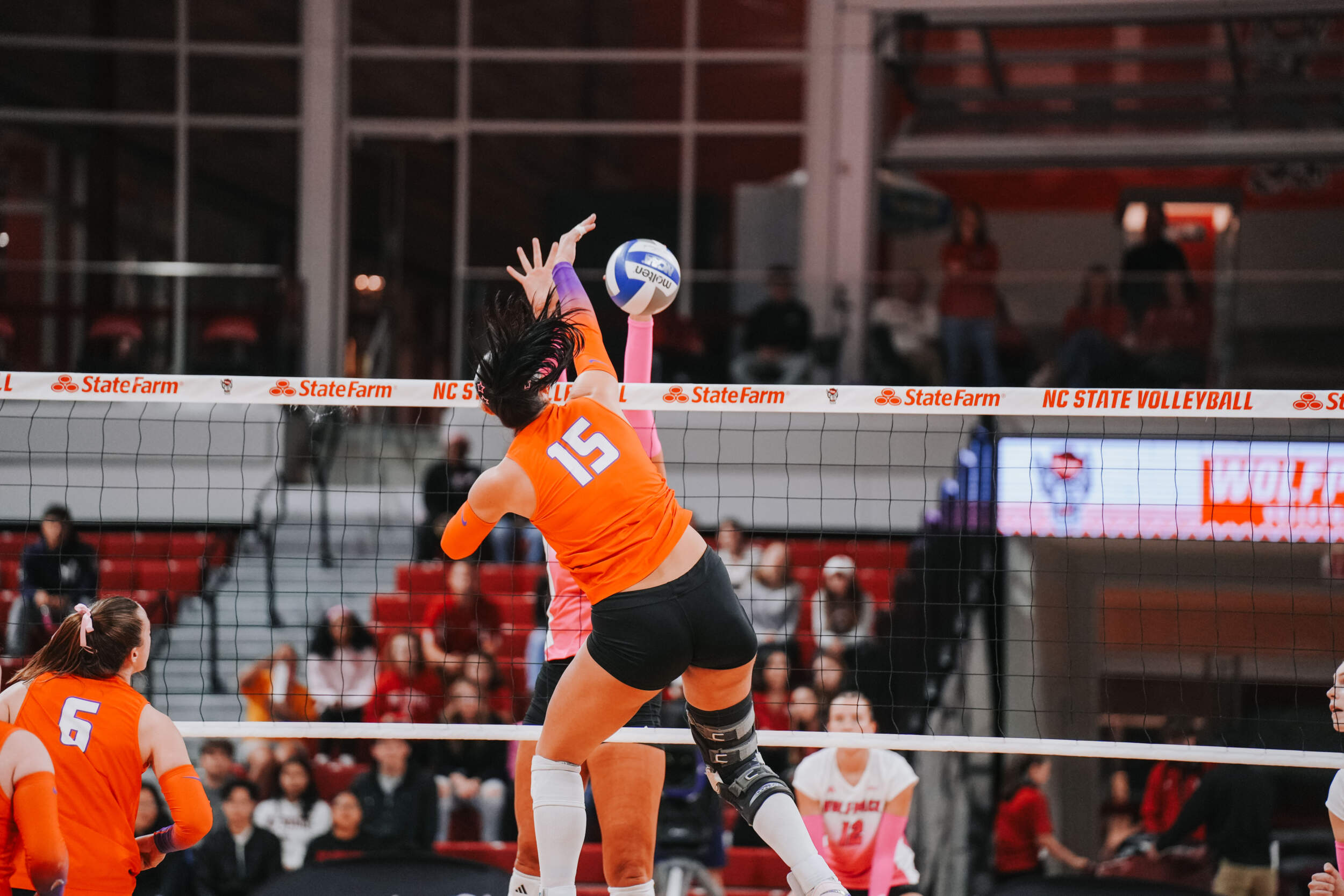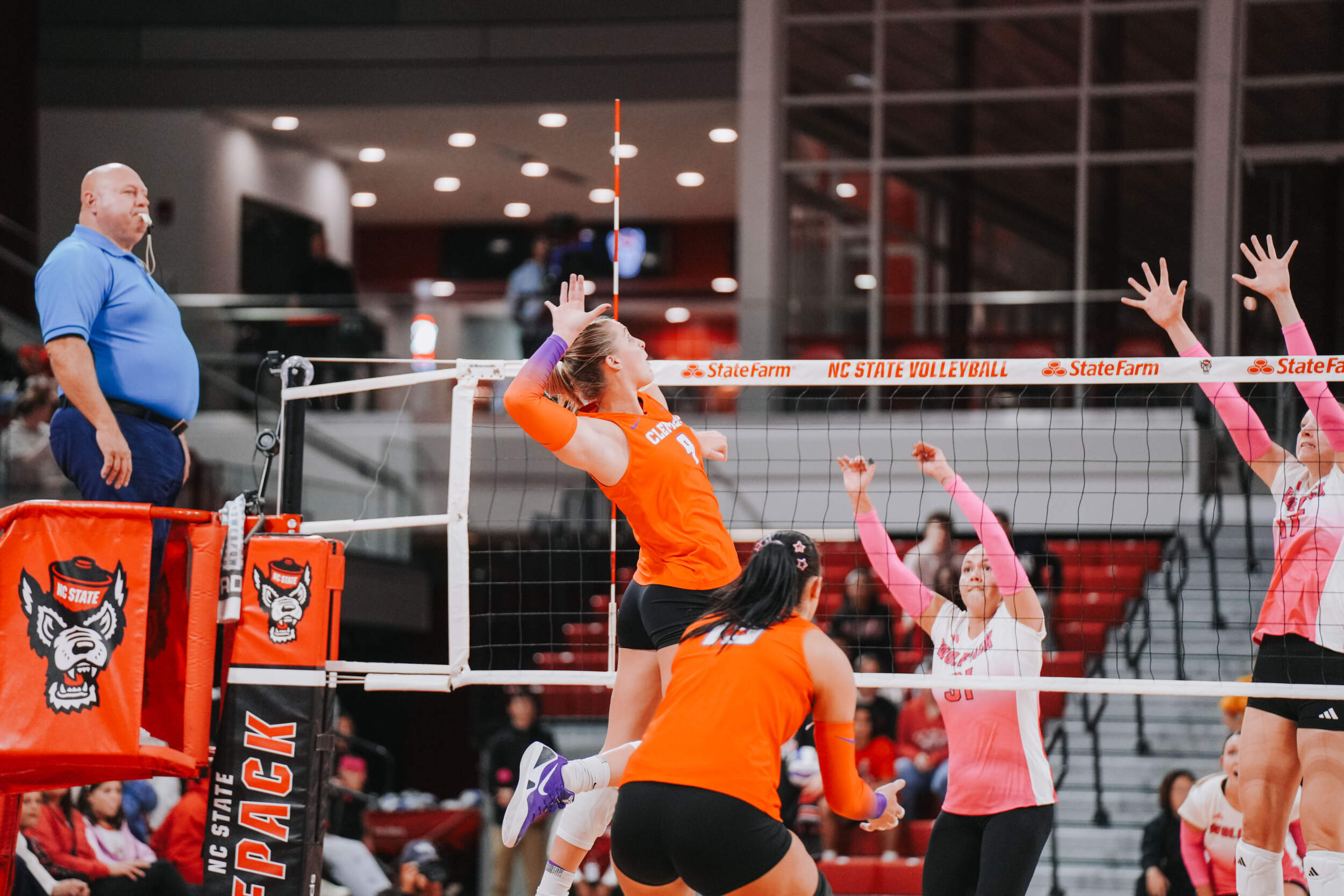 Okur, Hurta, McGrath and Mia Moore looked to provide a spark for the team offensively in the fourth, while Bianca Martinez and McGrath combined for a block to help Clemson take a 10-7 advantage. NC State responded with a couple of runs, but a block by Martinez and Katherine Sandt sent Clemson into the media timeout with a one-point advantage. Coming out of the timeout, the Wolfpack controlled the pace of play to take both the set and the match in four.