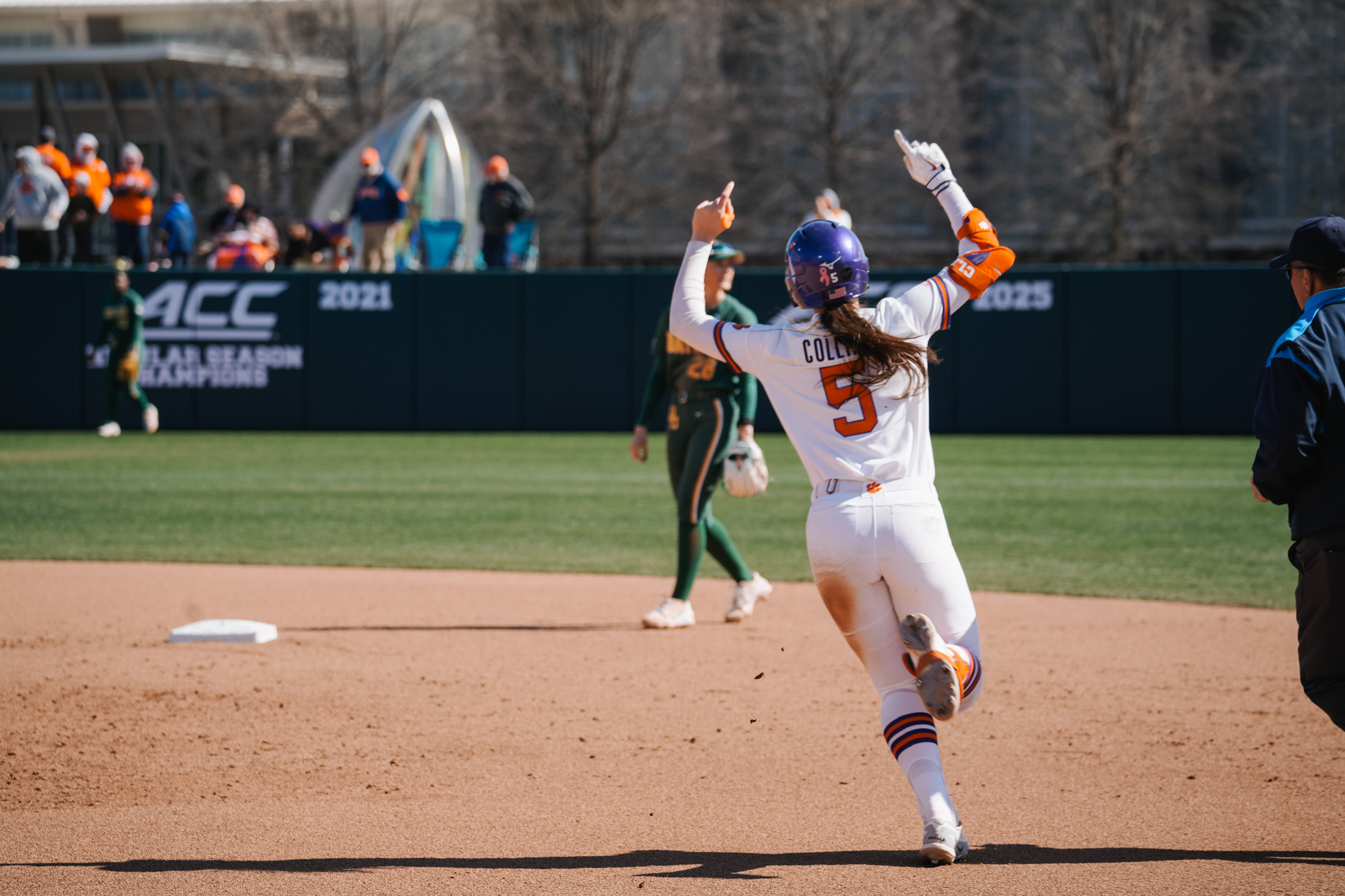 Collins recorded her second RBI with a solo home run in the bottom of the fifth inning. With two outs and no one on, the sophomore drove the ball 213 feet over the left field wall at a velocity of 67 miles per hour. After her home run, Clemson would maintain the 3-0 lead for two innings to earn the 10th win of the year.