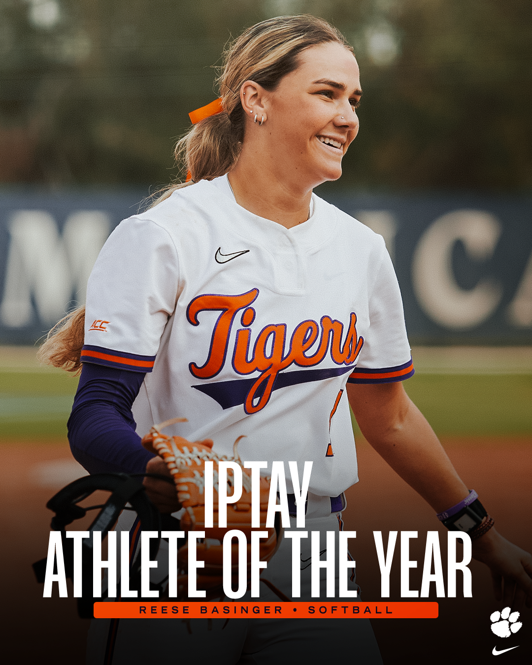 The IPTAY Athlete of the Year is presented each year to the Clemson student-athlete who excels on the field and in the classroom. Basinger was named the ACC Pitcher of the Year for 2025, the first Clemson pitcher to win that award. She won 18 games and posted a 2.94 ERA over her 44 appearances in earning first-team All-ACC and first-team All-Region honors.