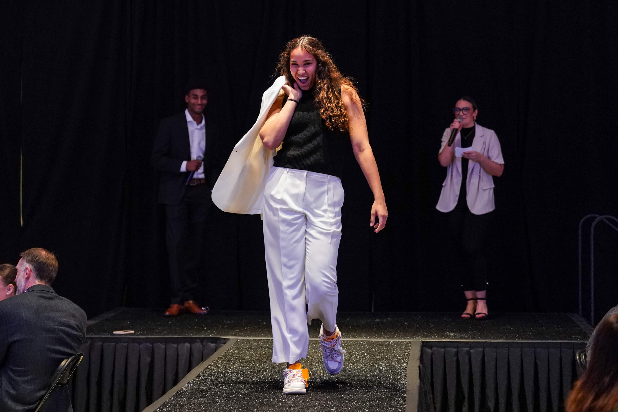 Second-year student-athletes participate in an etiquette dinner to learn about the basics of formal etiquette in a professional setting. Towards the end of the event, UPIC interns model different professional wear to demonstrate the variety of workplace attire ranging from “Casual Friday” to business professional.