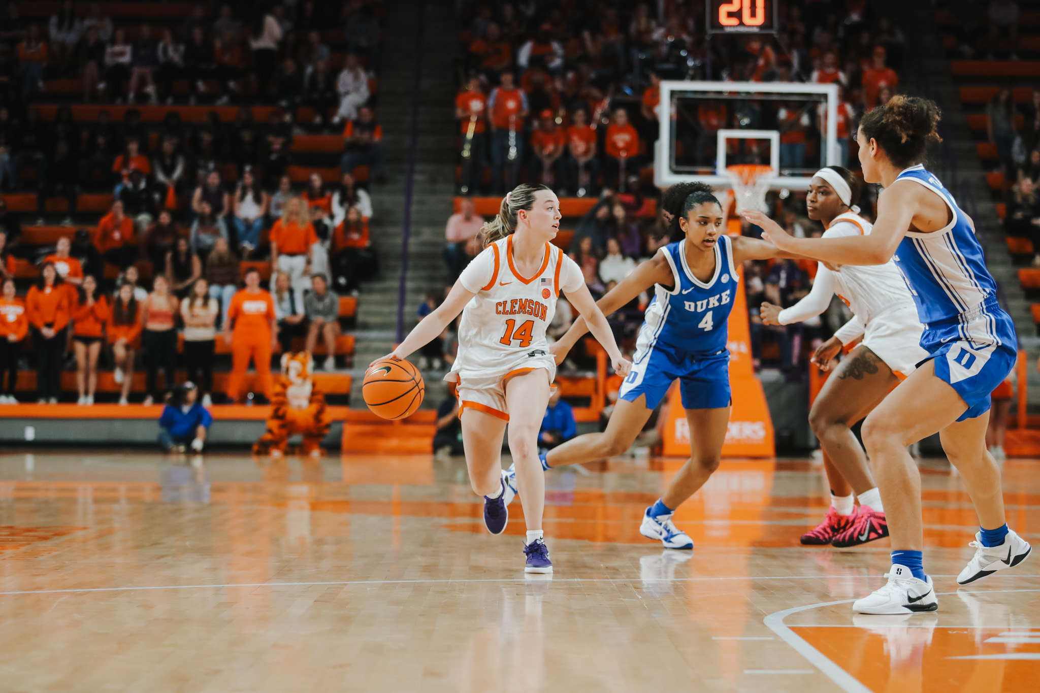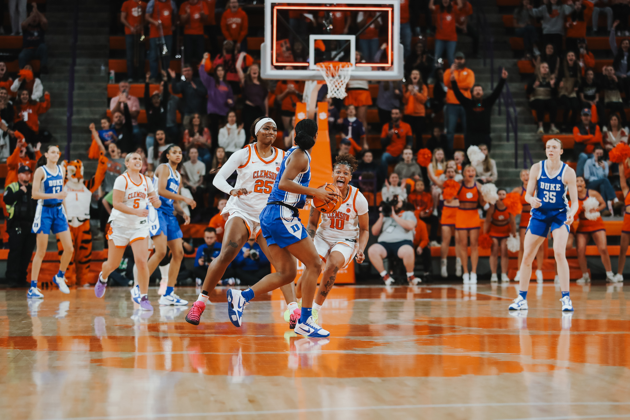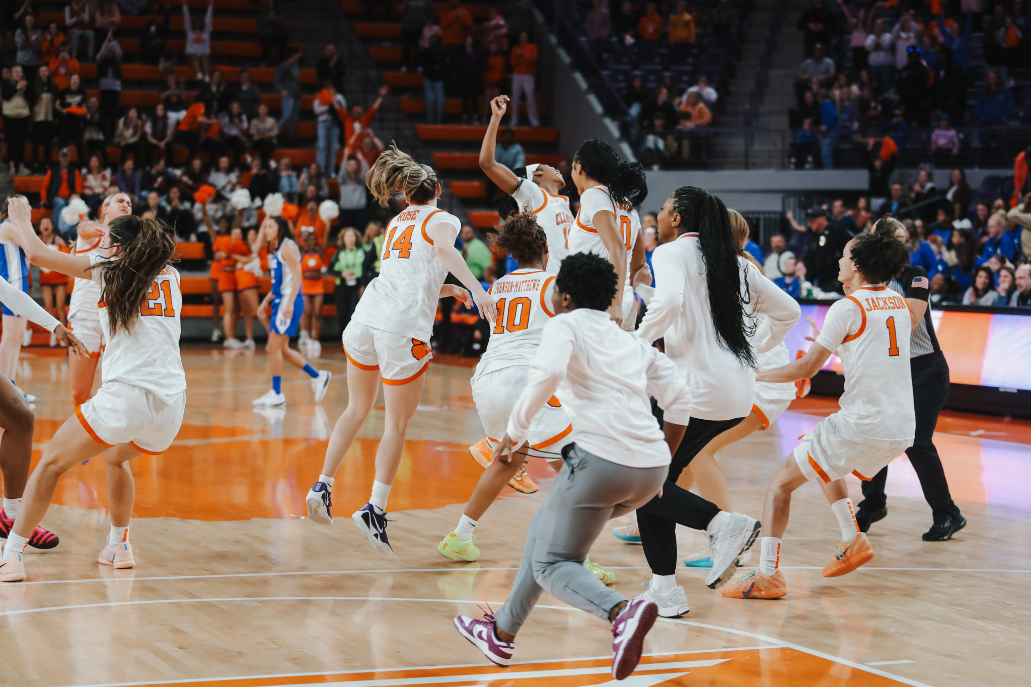 Clemson, S.C. – Clemson women’s basketball (19-9, 10-6 ACC) pulled off the upset over No. 9/13 Duke (20-7, 15-1 ACC), 53-51. A Hannah Kohn three-pointer gave the Tigers a 53-51 lead with 3.1 seconds remaining. On the ensuing inbound play, Taylor Johnson-Matthews tipped the pass to run out the clock and give Duke its first ACC loss of the season.