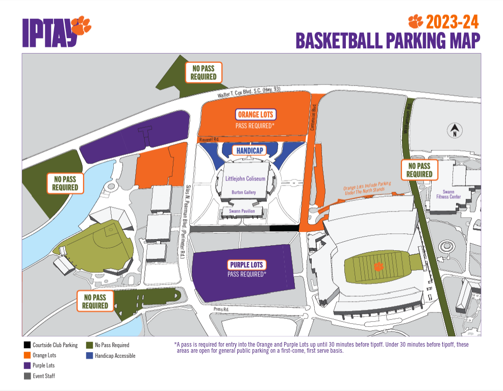 Clemson University, working with law enforcement officials, has implemented a Clear Bag Policy at Littlejohn Coliseum. Fans are encouraged to not bring bags. Clear bags that do not exceed 12” x 6” x 12” are permissible. Read more about the Clear Bag Policy here.