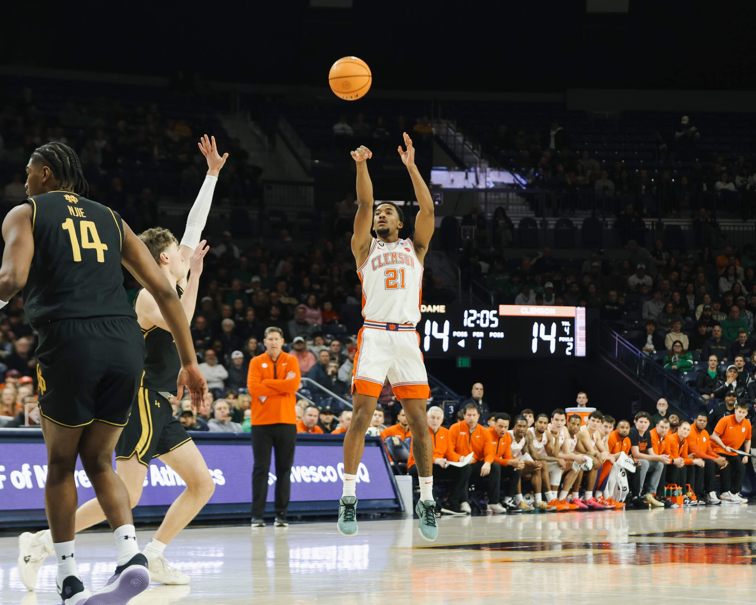 Clemson built as much as an eight-point lead in the opening stanza, but Notre Dame’s Cole Certa cut the halftime deficit to just five with a buzzer-beating heave at the halftime horn.