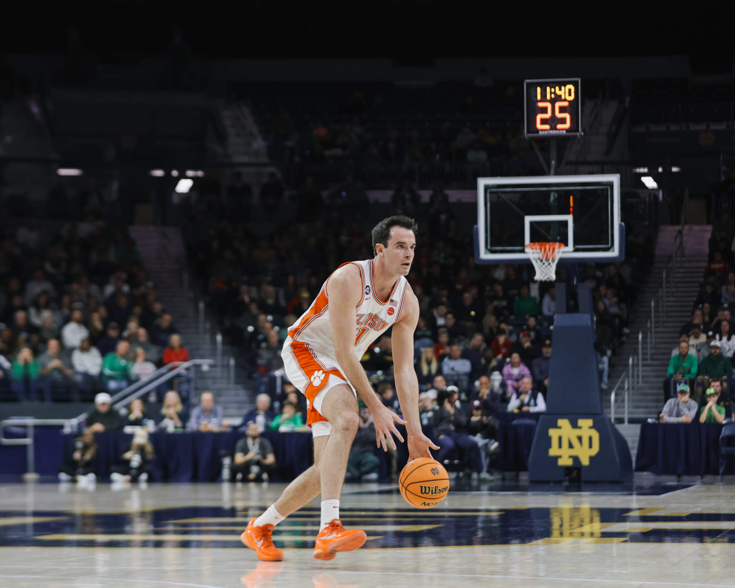 Notes: Clemson improved to 14-3 with the win and 5-9 against Notre Dame all time … it was the Tigers’ second win in its series history on the road at Notre Dame – the previous win came on March 6, 2019, in a 64-62 victory … over the last two years, Clemson is now 8-0 against the top 12 winningest programs in college basketball history … Clemson won its 11th consecutive ACC road game – the second longest active streak in the country (Houston, 15) … it’s the fifth-longest in ACC history and the second-longest in the last 25 years in the ACC … Head Coach Brad Brownell won his 306th game at Clemson and the 473rd of his career … it was Coach Brownell’s 150th ACC win in regular season play … Clemson committed just six turnovers against Notre Dame – the fourth time this season Clemson has committed six or less … Jestin Porter totaled a season-high 26 points (also a Clemson team-high) on 9-for-14 shooting … Porter has totaled both of Clemson’s 20-point games this season … his nine made field goals are a season-best … Porter added a career-high five steals – he previously recorded four steals in five different games in his career, including four against SMU on Jan. 7 … the last time a Tiger guard had at least 26 points in a regulation victory was Joseph Girard III (26 vs. Boston College on Jan. 13, 2024) … RJ Godfrey recorded his 13th double-digit scoring game with 16 points … Dillon Hunter tied his career-high with seven rebounds.