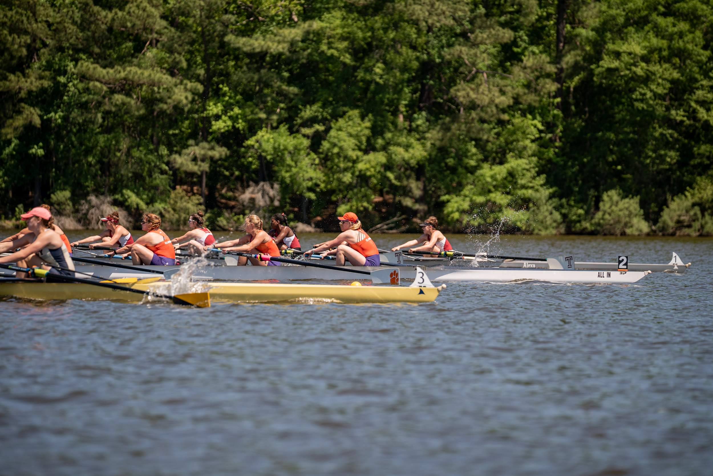 RALEIGH, N.C. — The Clemson women’s rowing team had a strong day of racing at the inaugural Lake Wheeler Invitational co-hosted by Duke and UNC. After Friday racing was cancelled due to storms in the area, the regatta moved to a heats to finals format. Clemson ultimately finished in sixth place out of nine teams in the final standings.