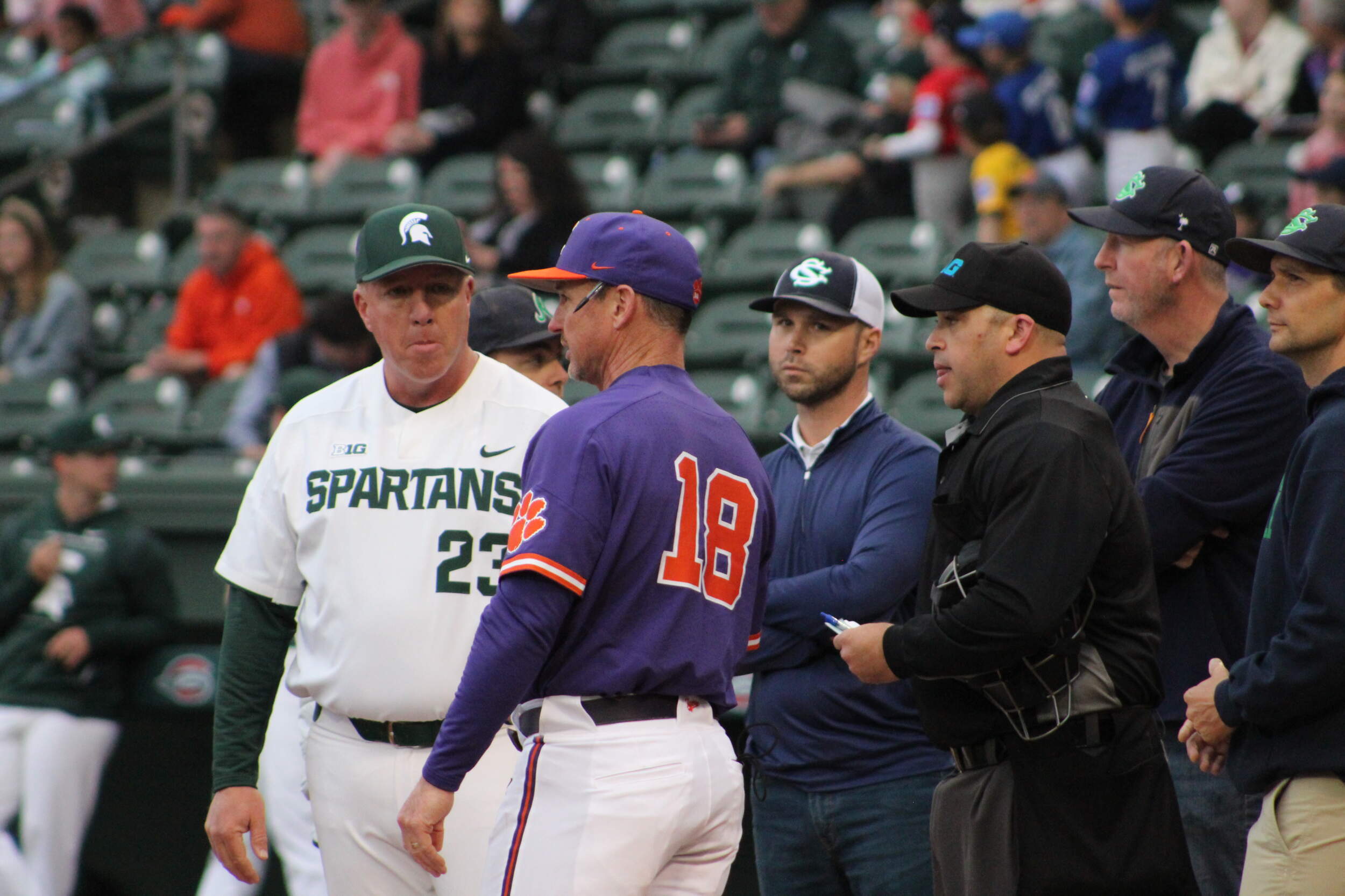 GREENVILLE, S.C. – Behind two costly errors in the eighth inning, No. 18 Clemson broke a 1-1 tie with two runs to defeat Michigan State 4-2 at Fluor Field on Wednesday night. The Tigers improved to 12-0, while the Spartans fell to 5-6. Clemson also upped its winning streak to 13 games dating to 2021. That streak is tied for 10th longest in school history and is Clemson’s longest since 2006.