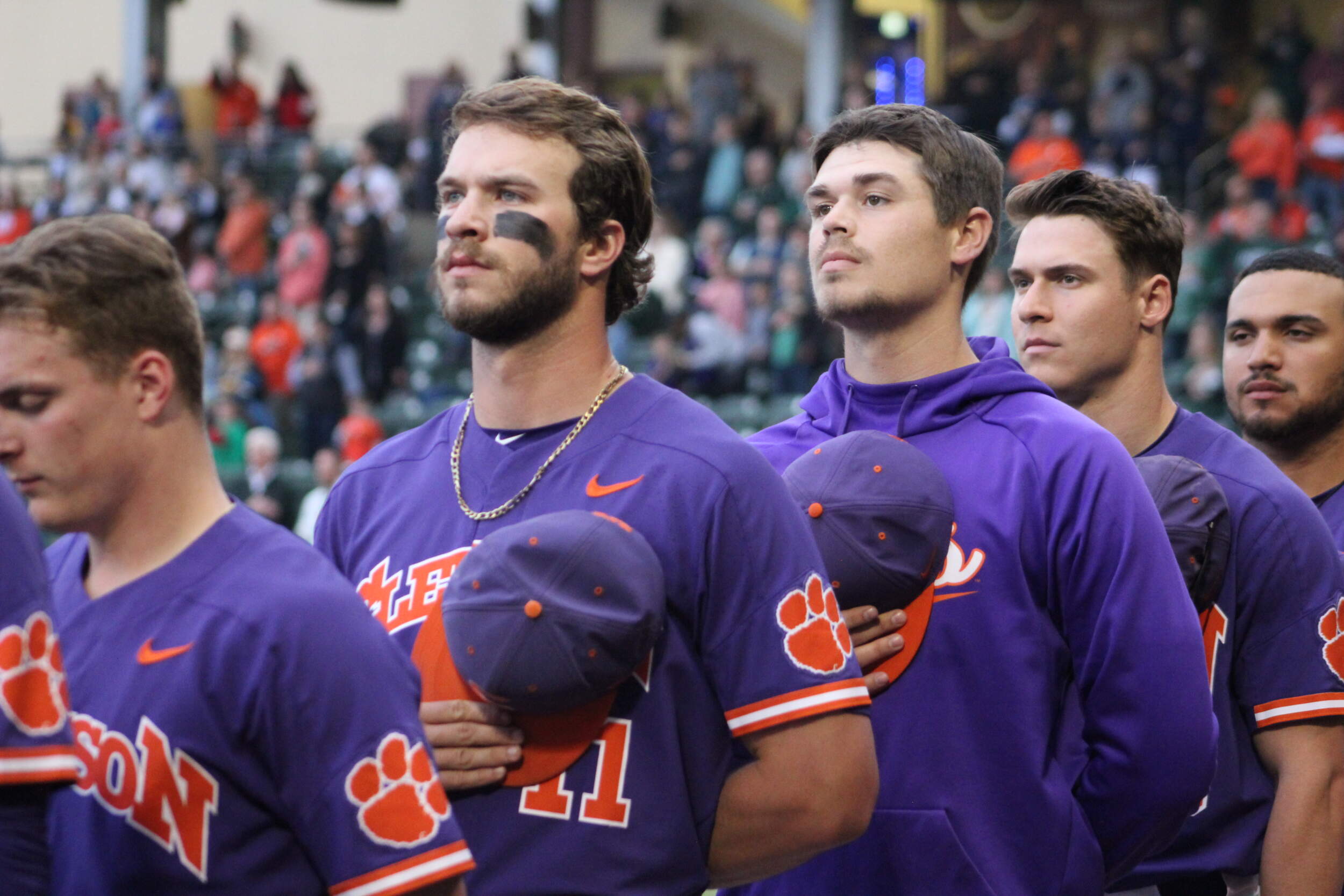 After the Tigers loaded the bases with no outs in the eighth inning, Max Wagner was hit by an 0-2 pitch with one out to give Clemson a 2-1 lead. Two batters later with two outs, the Tigers scored on the second error of the inning, this time off the bat of Jonathan French, to double their lead. Another error in the ninth inning led to a Tiger run.