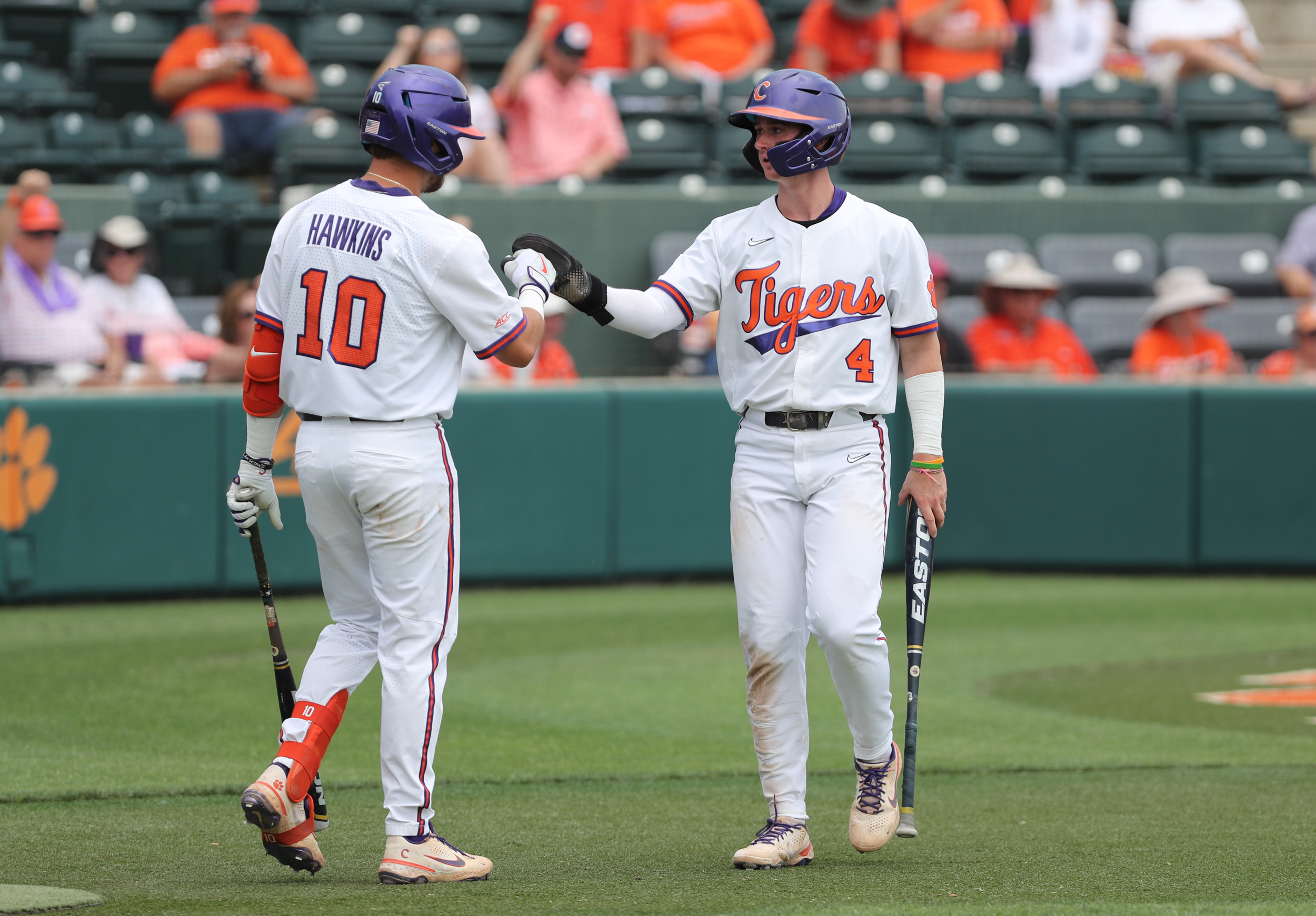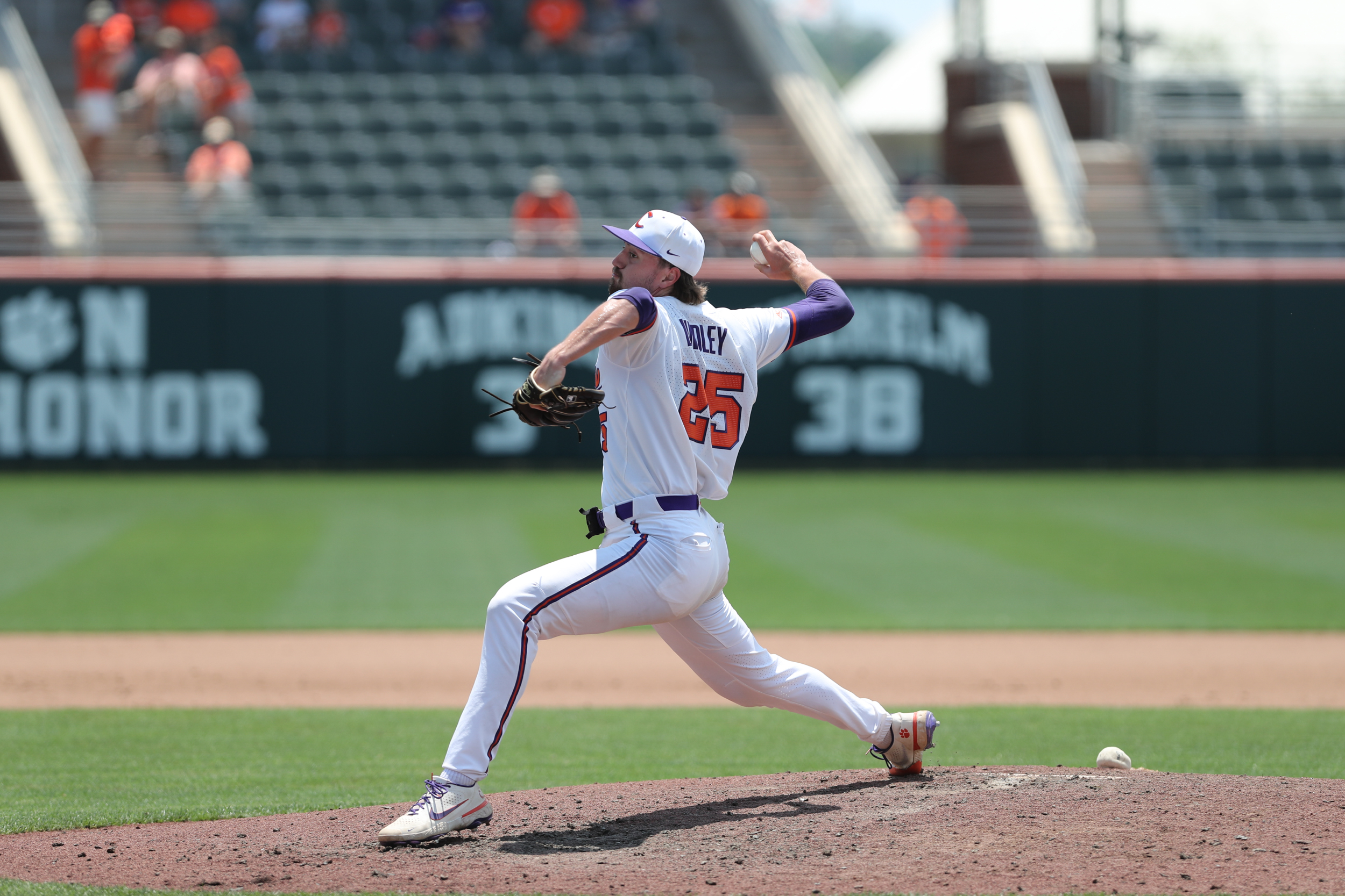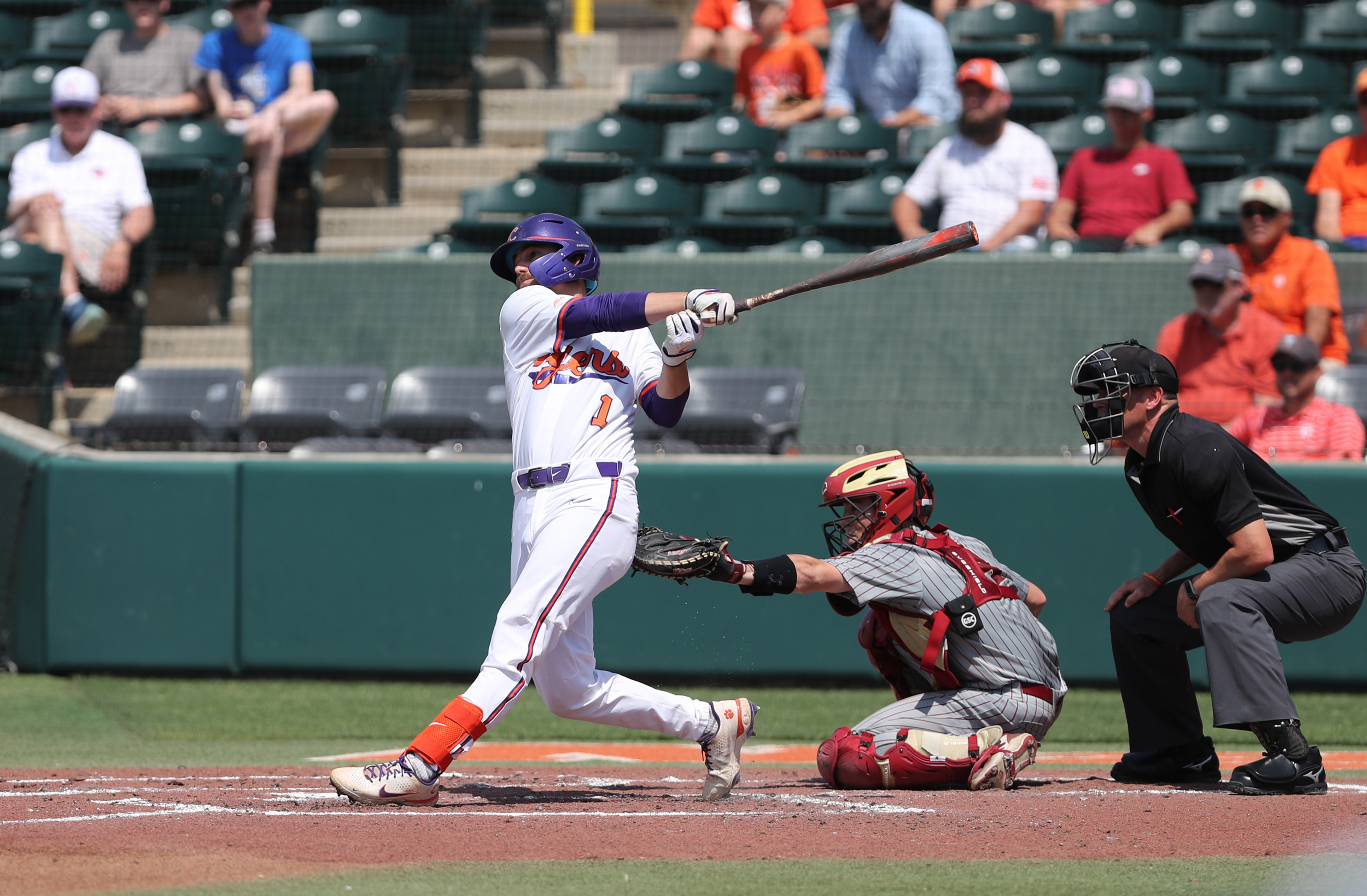 Will Taylor lofted a sacrifice fly in the third inning to score the game’s first run. In the seventh inning, Cooper Ingle walked with the bases loaded to double Clemson’s lead, then Blake Wright followed with a run-scoring infield single. Reed Garris, who reached base in all four plate appearances and scored three runs, added a two-run homer, the first of his career, in the eighth inning.