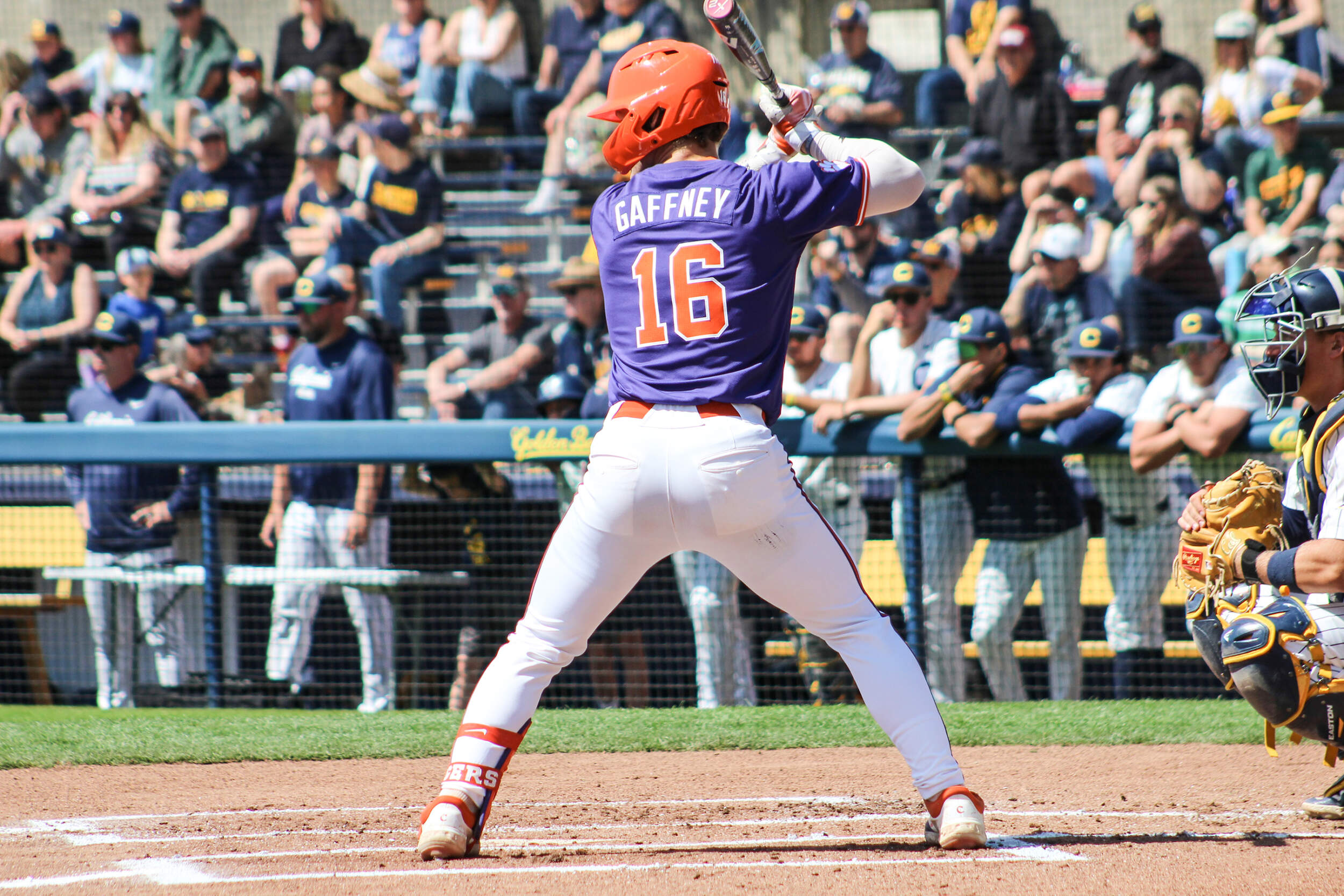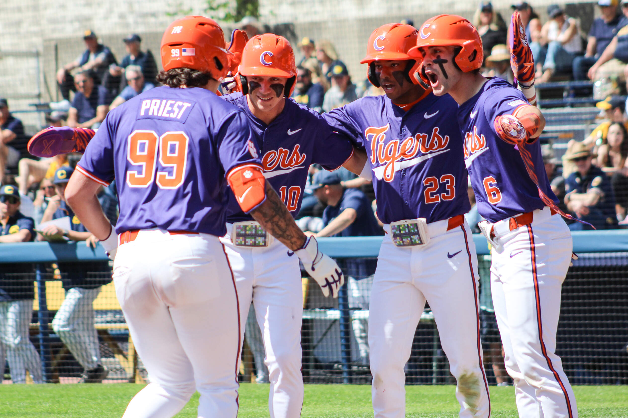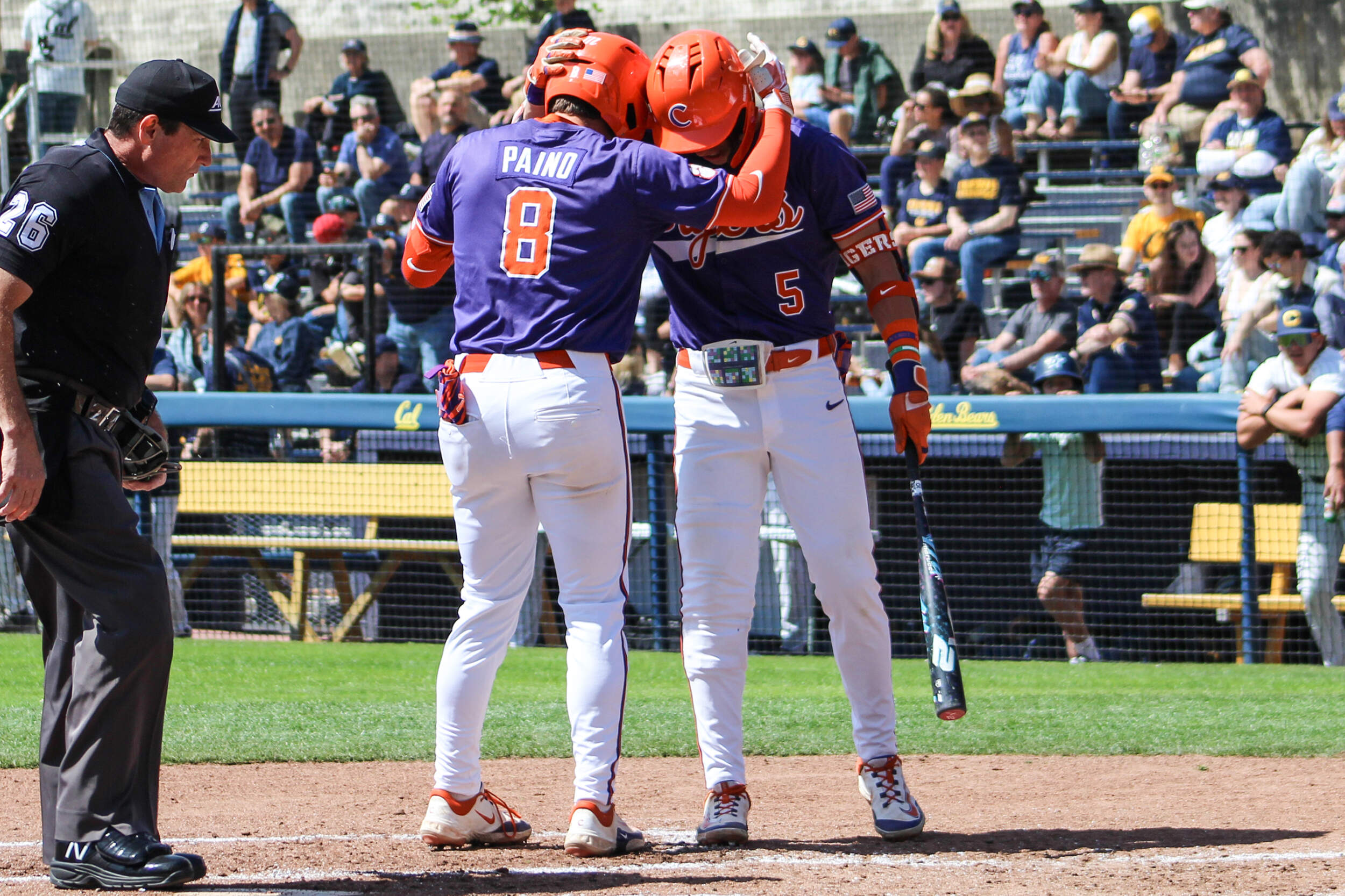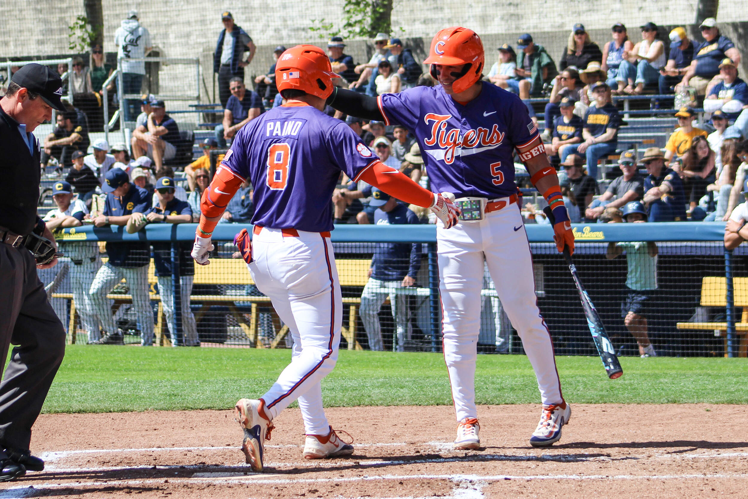 BERKELEY, CALIF. – No. 4 Clemson scored six runs in the first inning and seven runs in the second inning en route to a 13-3 victory over California at Stu Gordon Stadium on Saturday afternoon. The Tigers, who took a 2-0 lead in the series, improved to 29-5 overall and 8-3 in the ACC. The Golden Bears dropped to 16-14 overall and 6-8 in ACC play. The game ended after seven innings due to the 10-run rule.