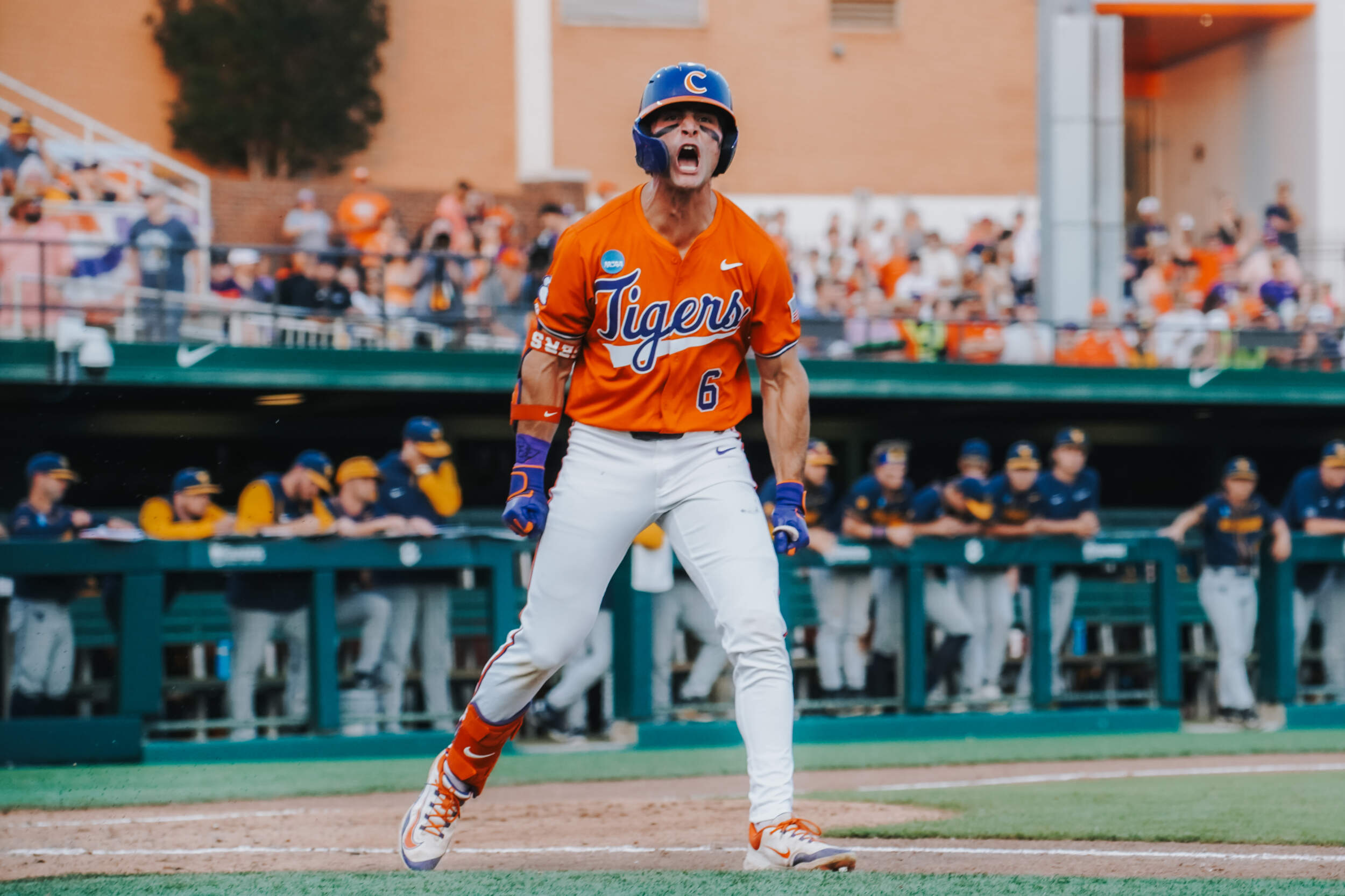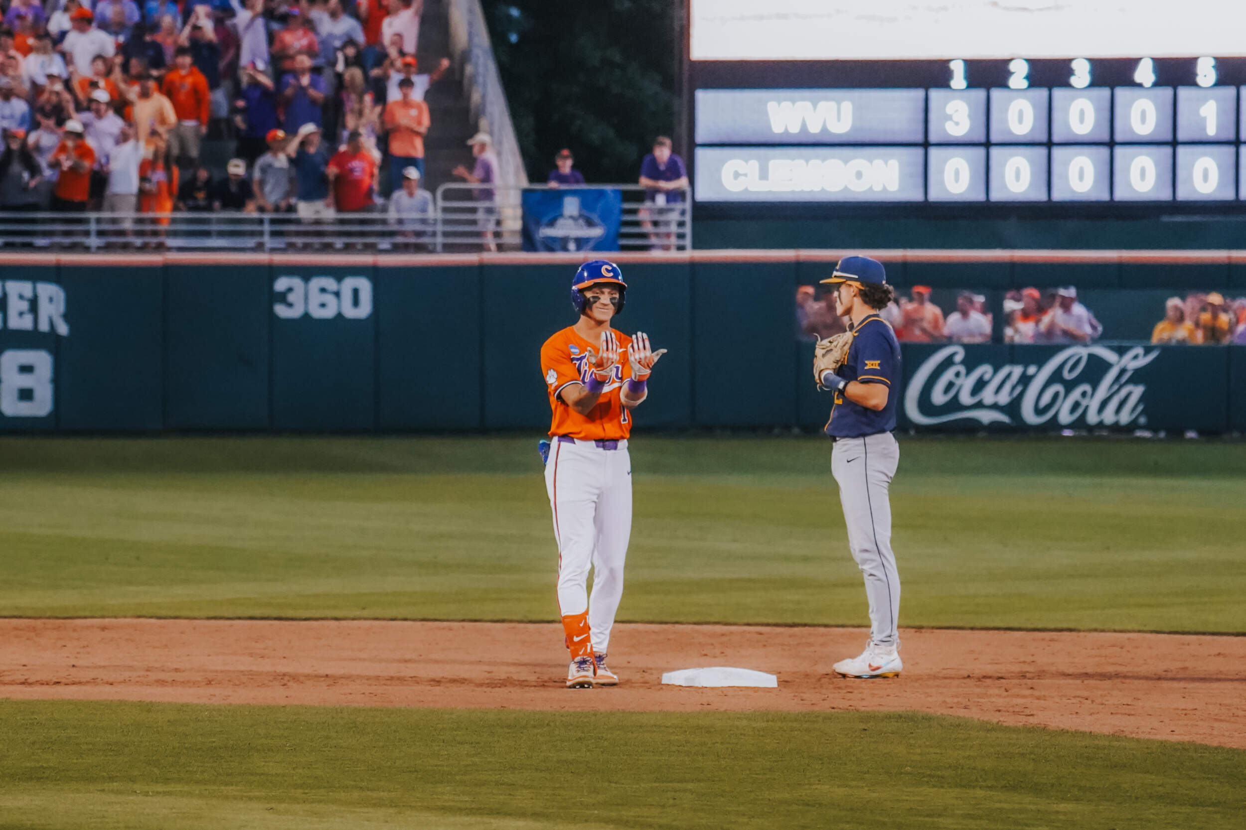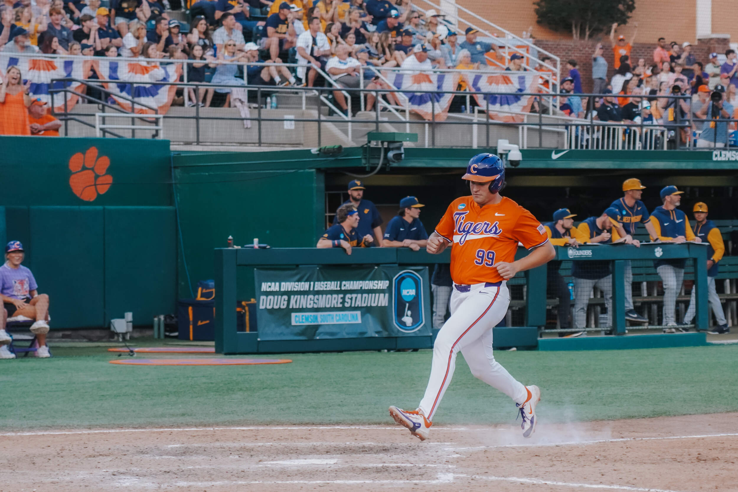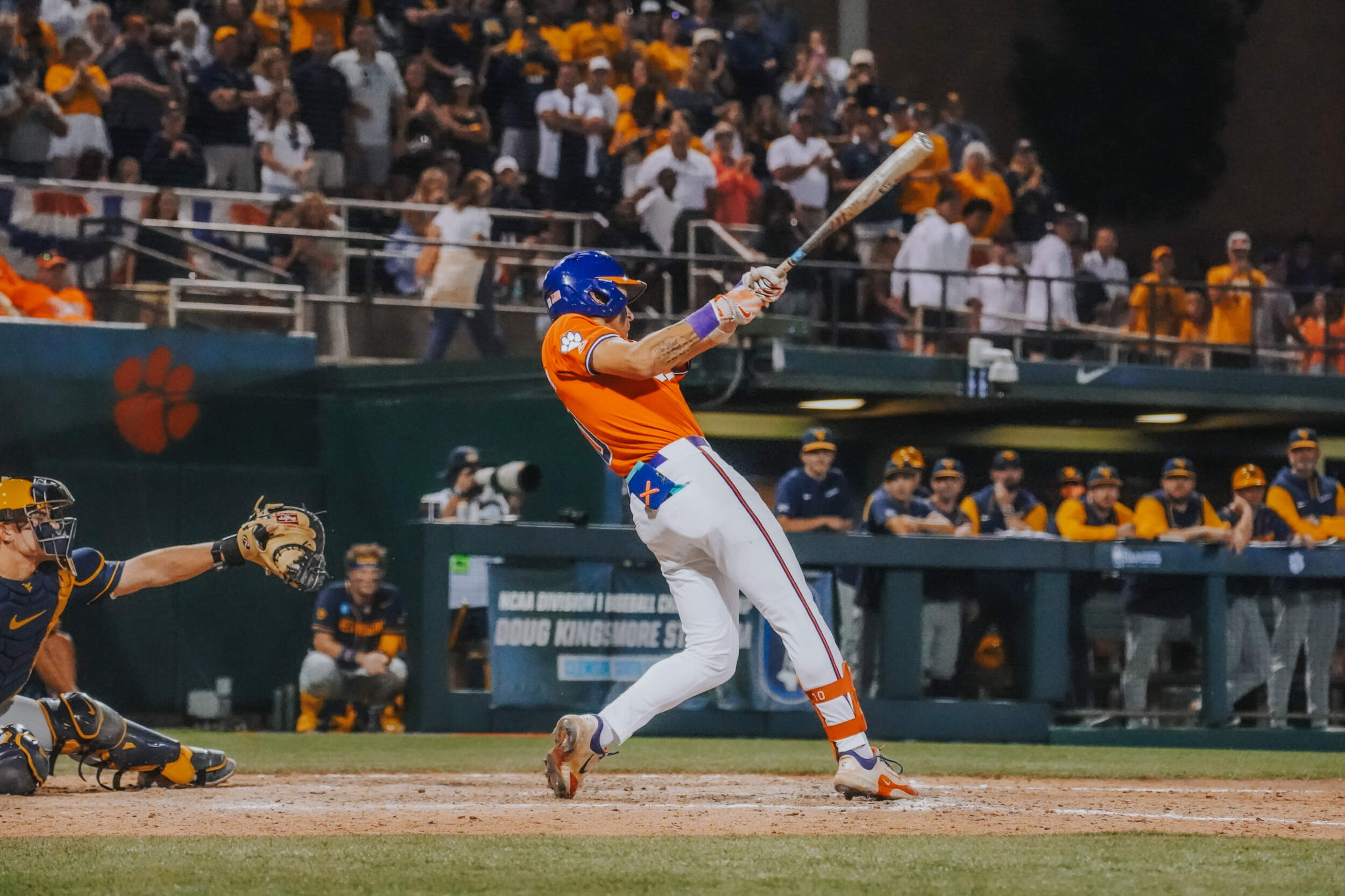CLEMSON, S.C. – Sam White’s double with two outs in the ninth inning scored the go-ahead run and propelled No. 23 West Virginia to a 9-6 victory over No. 11 Clemson in the Clemson Regional at Doug Kingsmore Stadium on Saturday night. The Mountaineers improved to 43-14, while the Tigers dropped to 45-17.