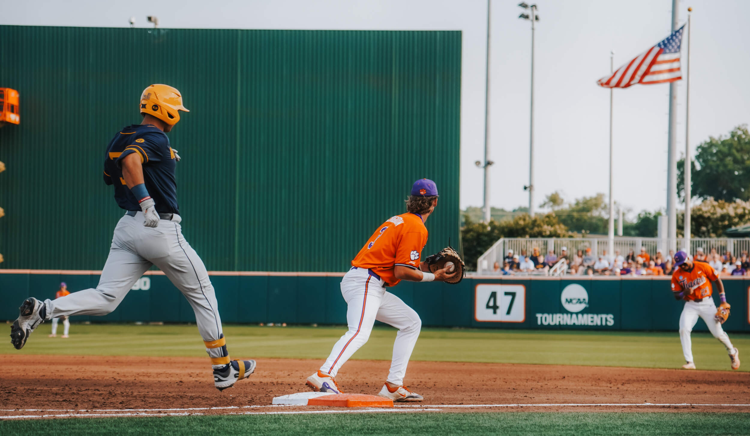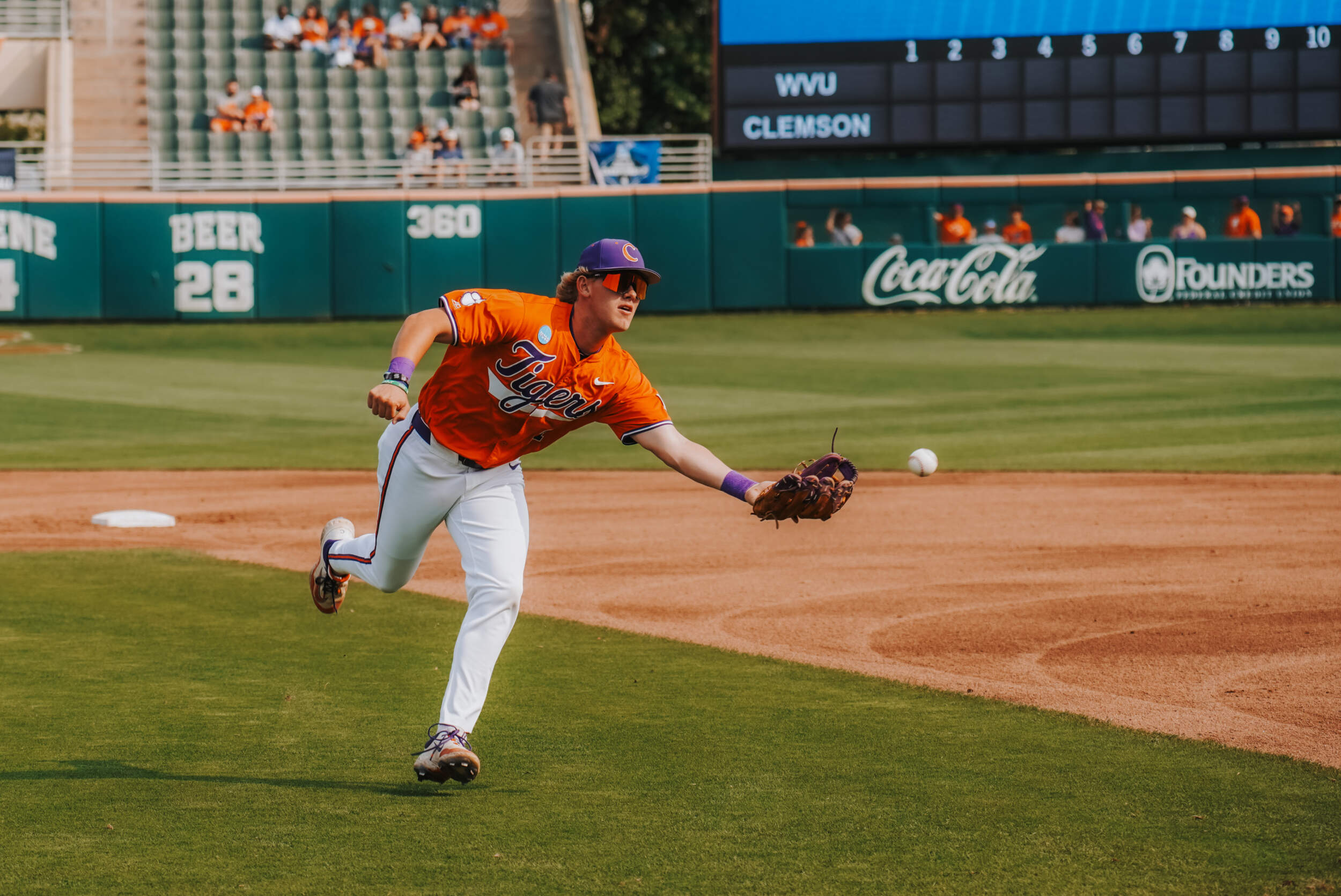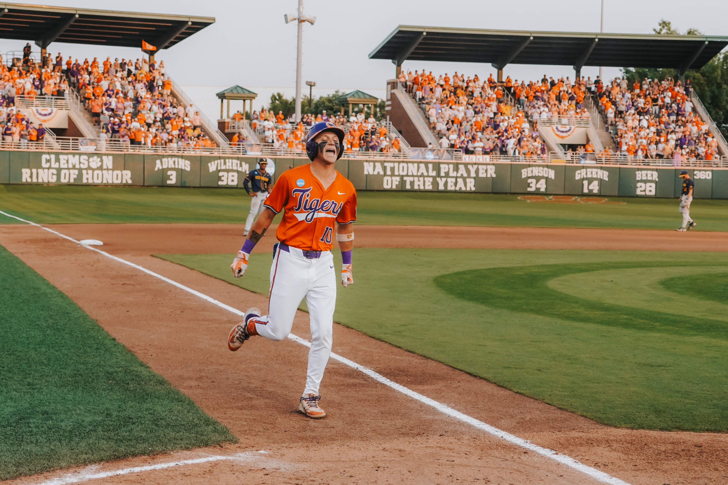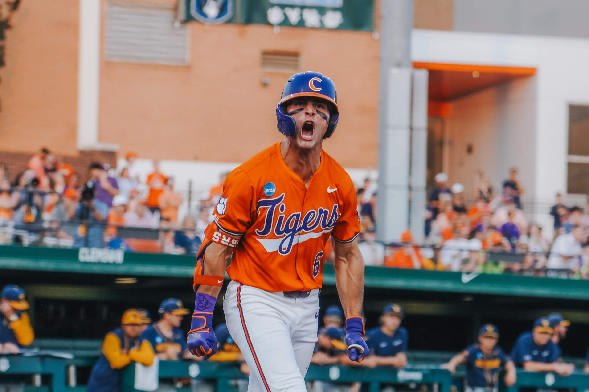 CLEMSON, S.C. – Sam White’s double with two outs in the ninth inning scored the go-ahead run and propelled No. 23 West Virginia to a 9-6 victory over No. 11 Clemson in the Clemson Regional at Doug Kingsmore Stadium on Saturday night. The Mountaineers improved to 43-14, while the Tigers dropped to 45-17.