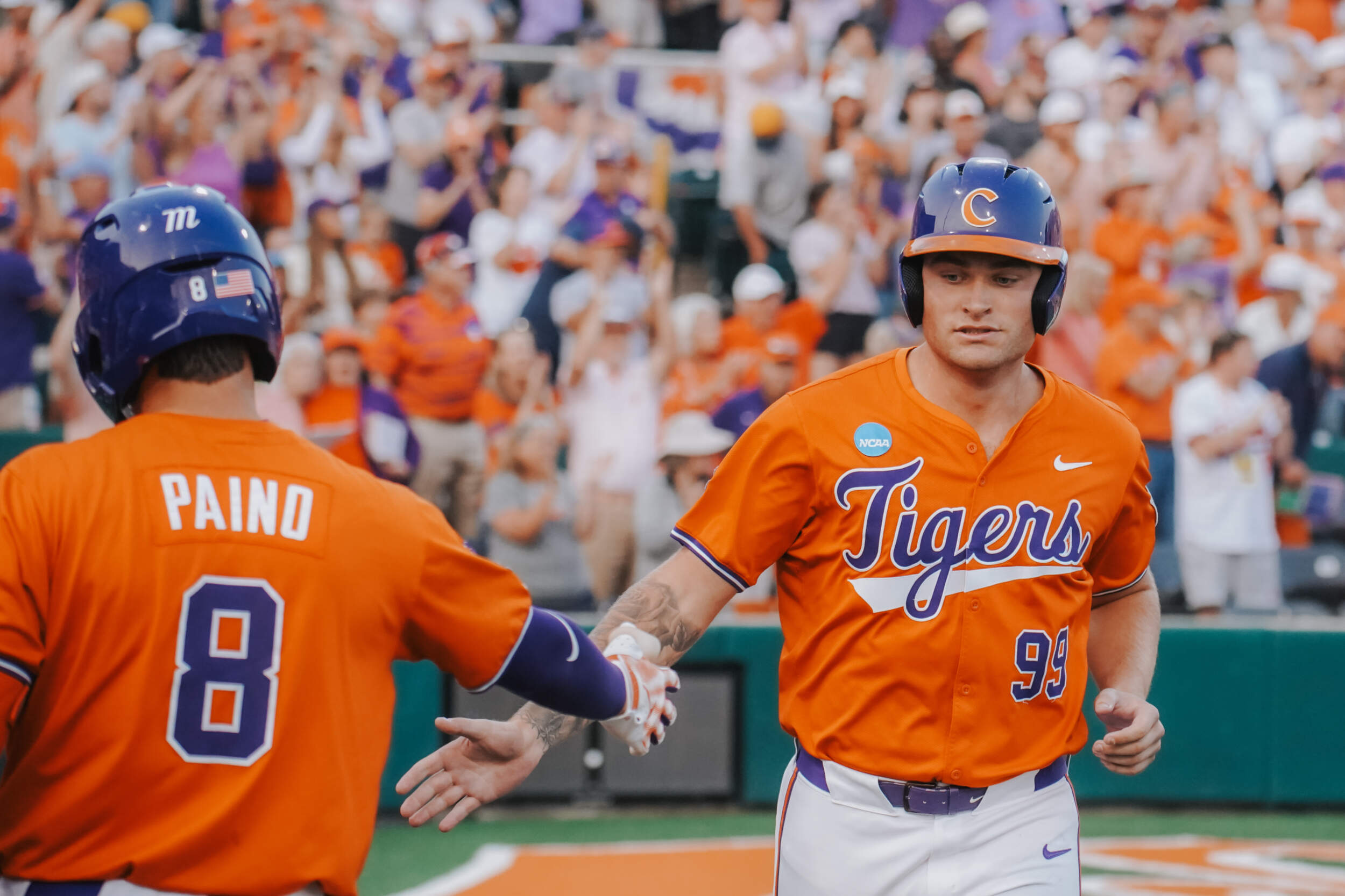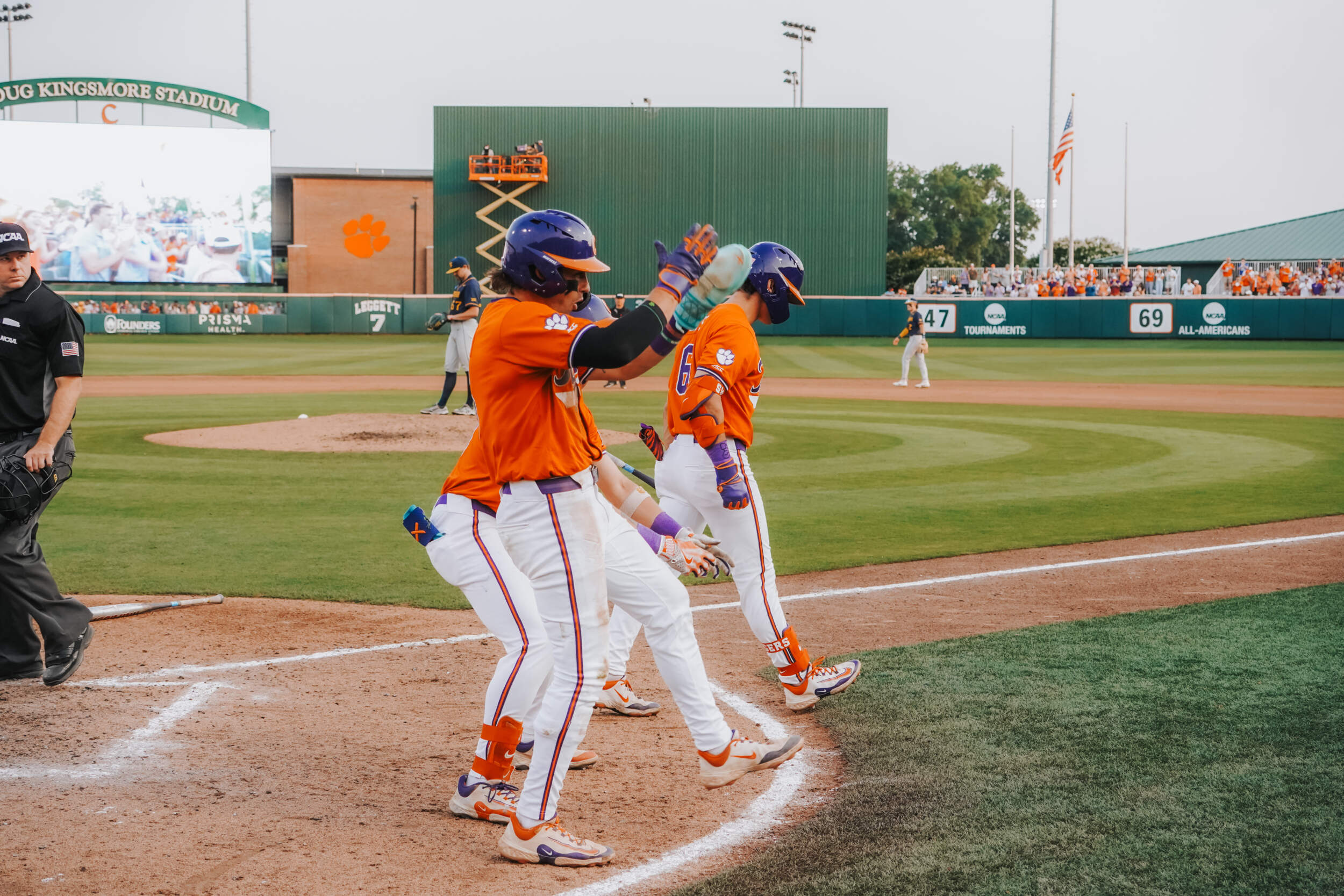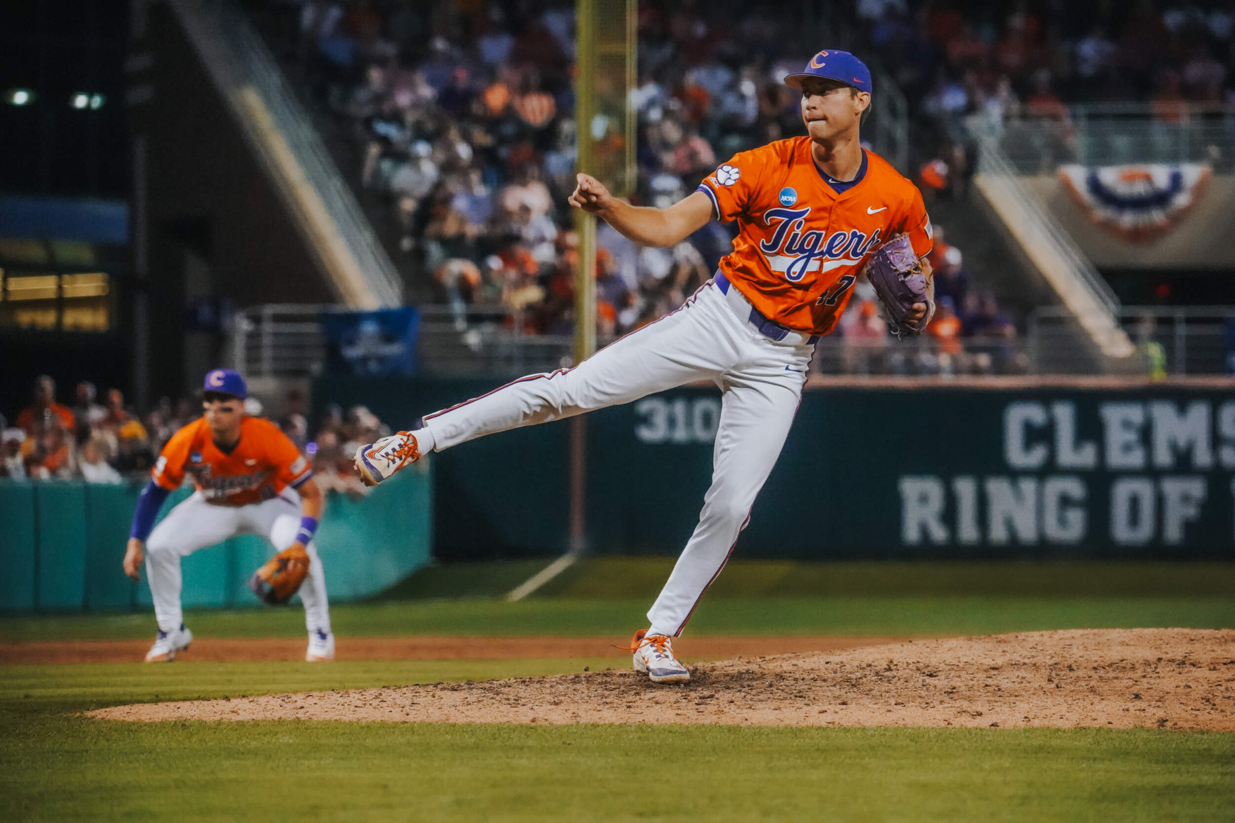 In the sixth inning, Cam Cannarella, who earlier extended his hitting streak to 21 games, laced a two-run homer, his fifth of the year, then Jack Crighton belted a run-scoring double. Jacob Jarrell followed with a sacrifice fly to tie the score 4-4. Cannarella gave Clemson the lead in the seventh inning with a run-scoring double. Dominic Listi extended his hitting streak to 11 games with a single later in the frame.