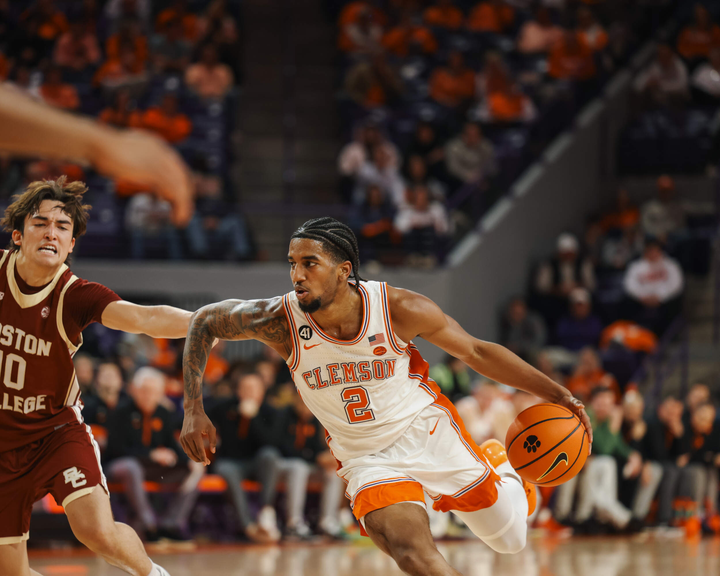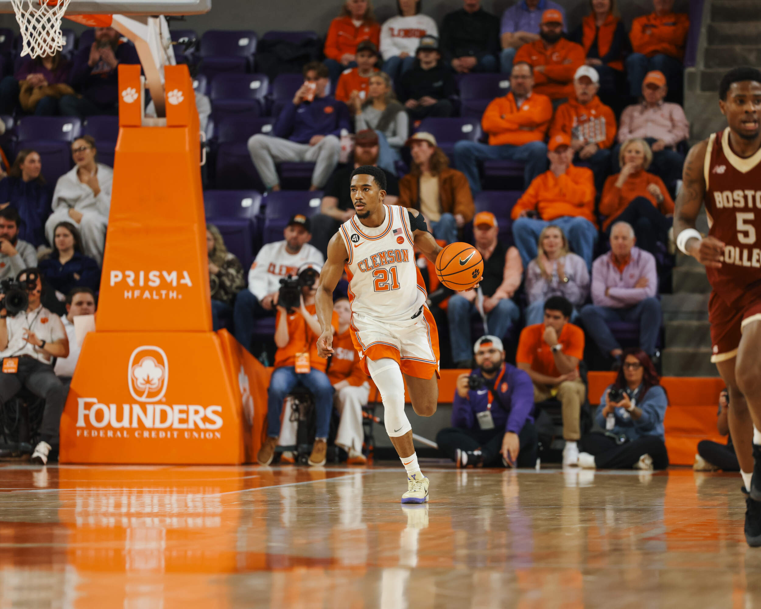 Clemson forced double-digit turnovers for the third consecutive game, this time with a season-high of 19, turning the Eagles’ mishaps into 24 points. Additionally, the Tigers converted eight 3-pointers and made 16 free throws while leading for 30:43 minutes. The Tigers outscored the Eagles’ bench 40-4.
