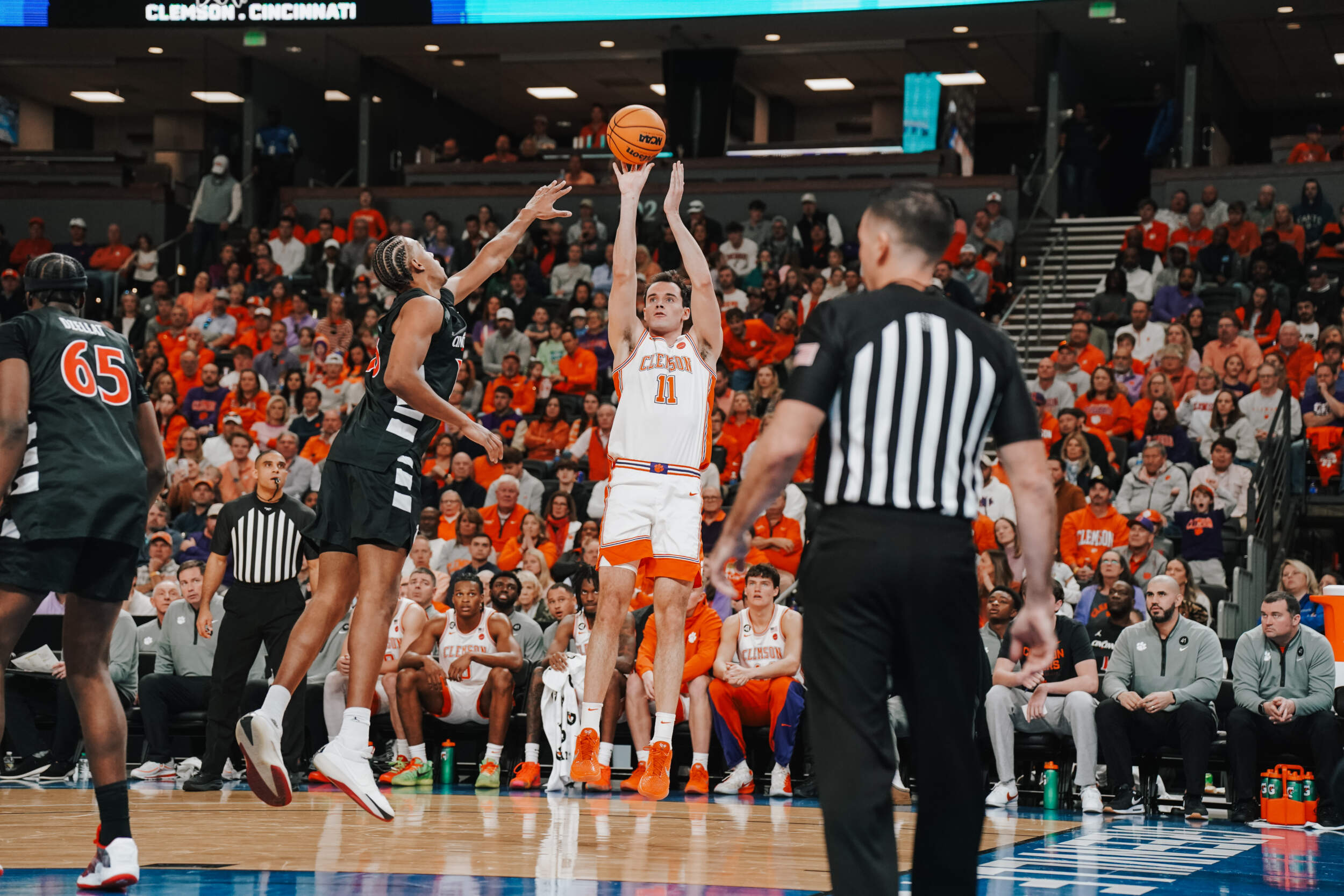 Notes: Clemson improved to 10-3 with the win and 2-4 all-time against Cincinnati … Head Coach Brad Brownell won his 302nd game at Clemson and the 469th of his career … Ace Buckner produced his second consecutive double-digit scoring game of the season and fifth overall this year … Dillon Hunter tied his career-high with seven rebounds … Nick Davidson made a season-high two 3-pointers … RJ Godfrey’s 10-point performance was his ninth double-digit scoring game of the season … Clemson finished 10-for-20 from three (50.0 percent) a new season-high percentage from beyond the arc … the Tigers are now 2-0 this season when shooting over 40.0 percent from three and 120-27 under Coach Brownell when shooting over 40.0 percent.