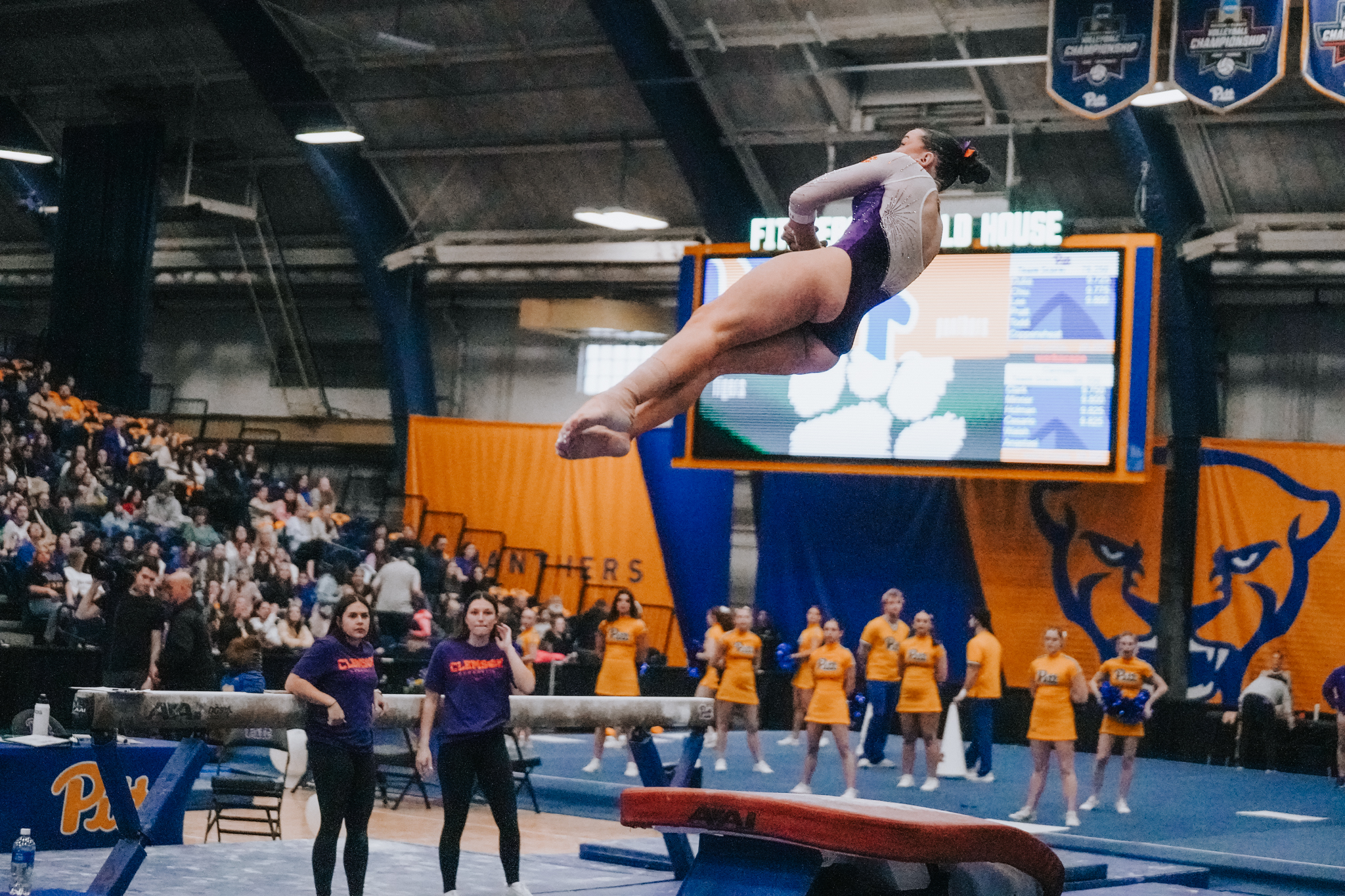 CLEMSON, S.C. – The 14th-ranked Clemson Gymnastics program scored a 196.875, the fifth-highest total overall and highest in a road meet in program history, in a dual meet victory at Pittsburgh at the Fitzgerald Field House. The Tigers’ (3-4, 2-3 ACC) season scoring average rose to 196.532 through seven meets, the best in the program’s three seasons. The No. 34 Panthers (1-8, 0-5 ACC) finished with a 195.225.
