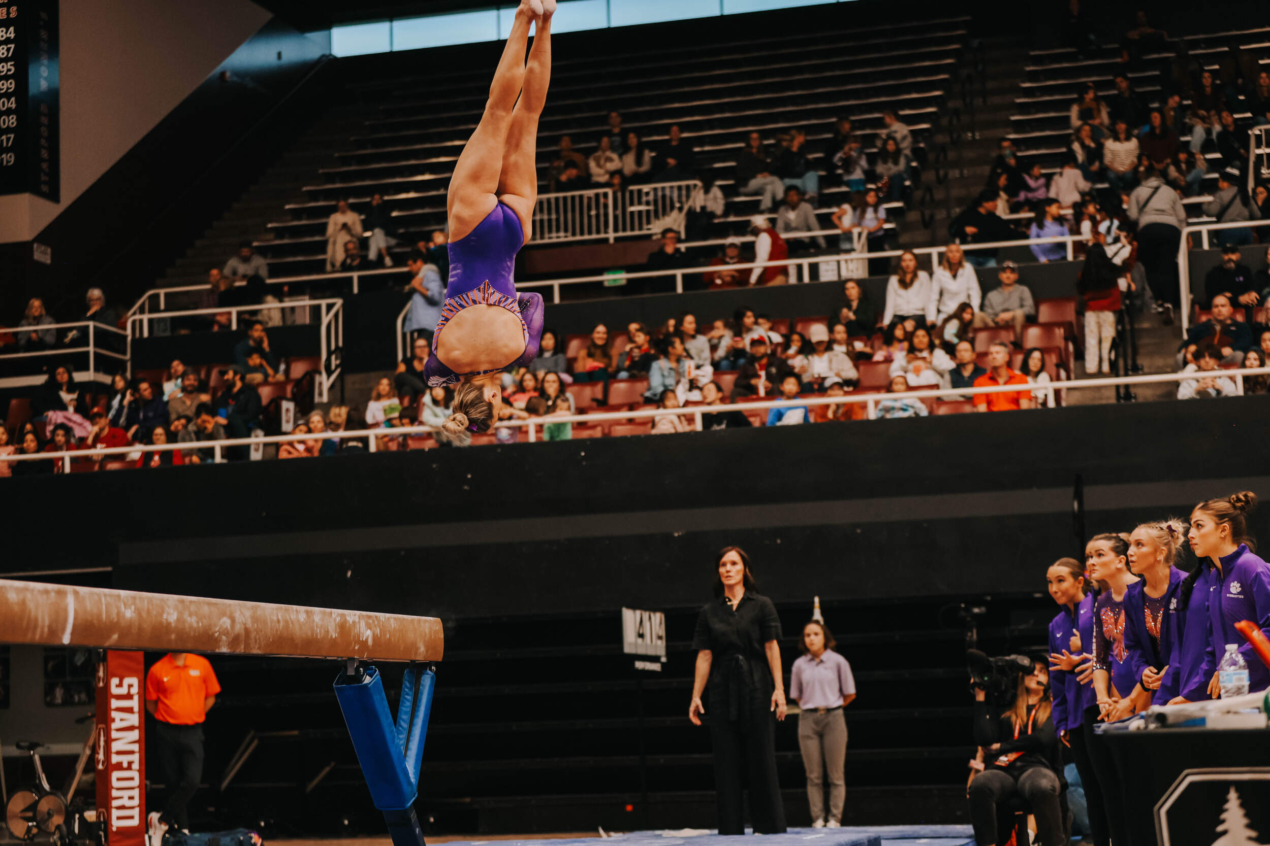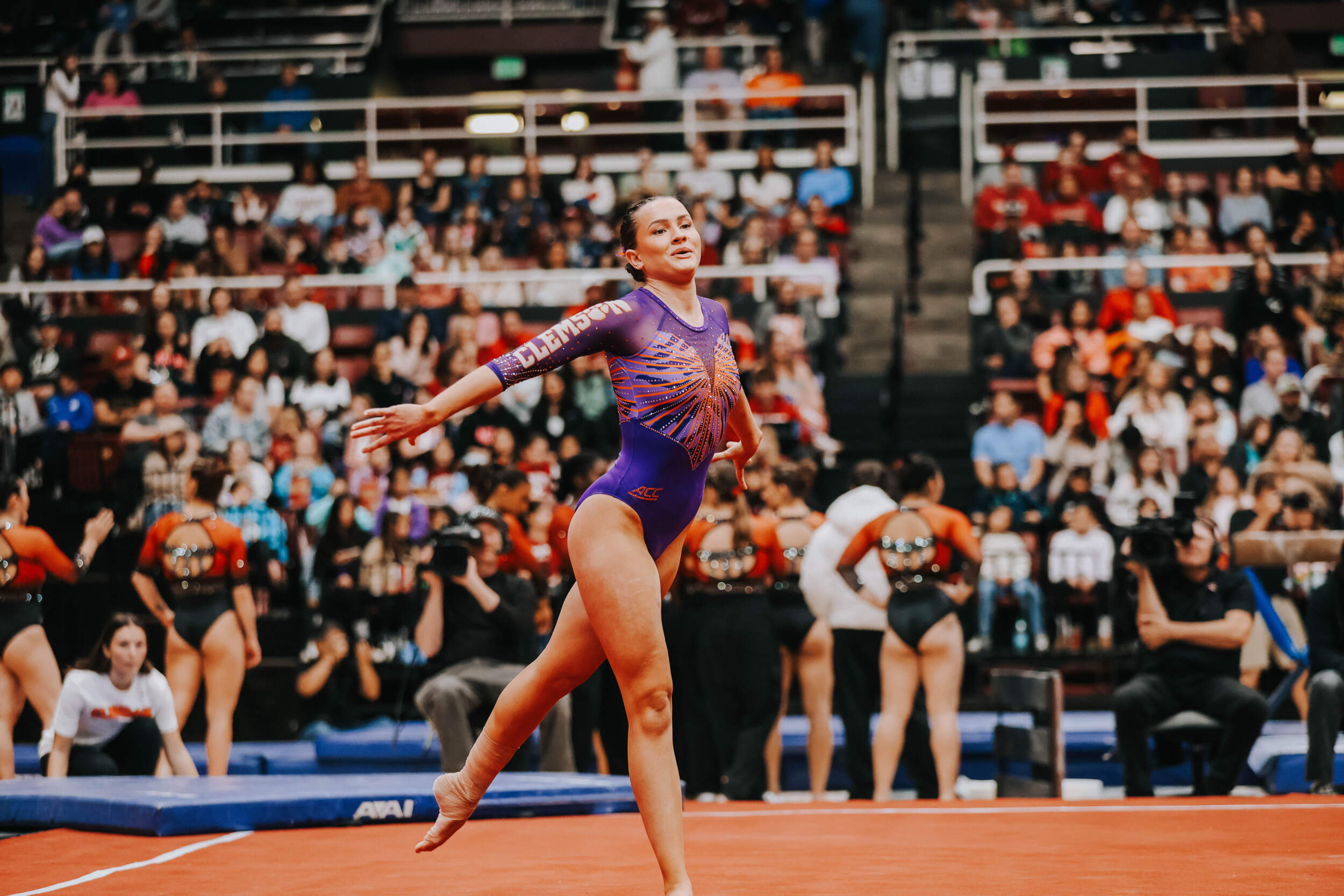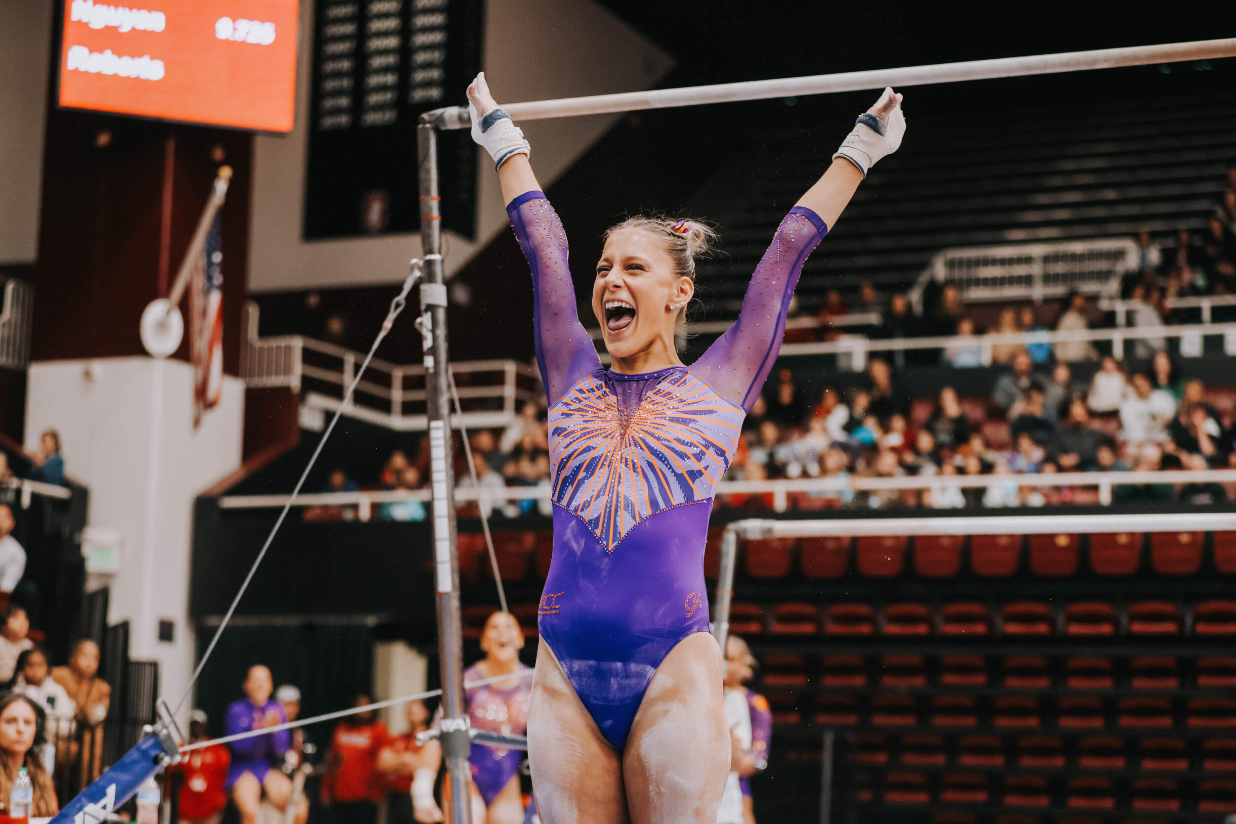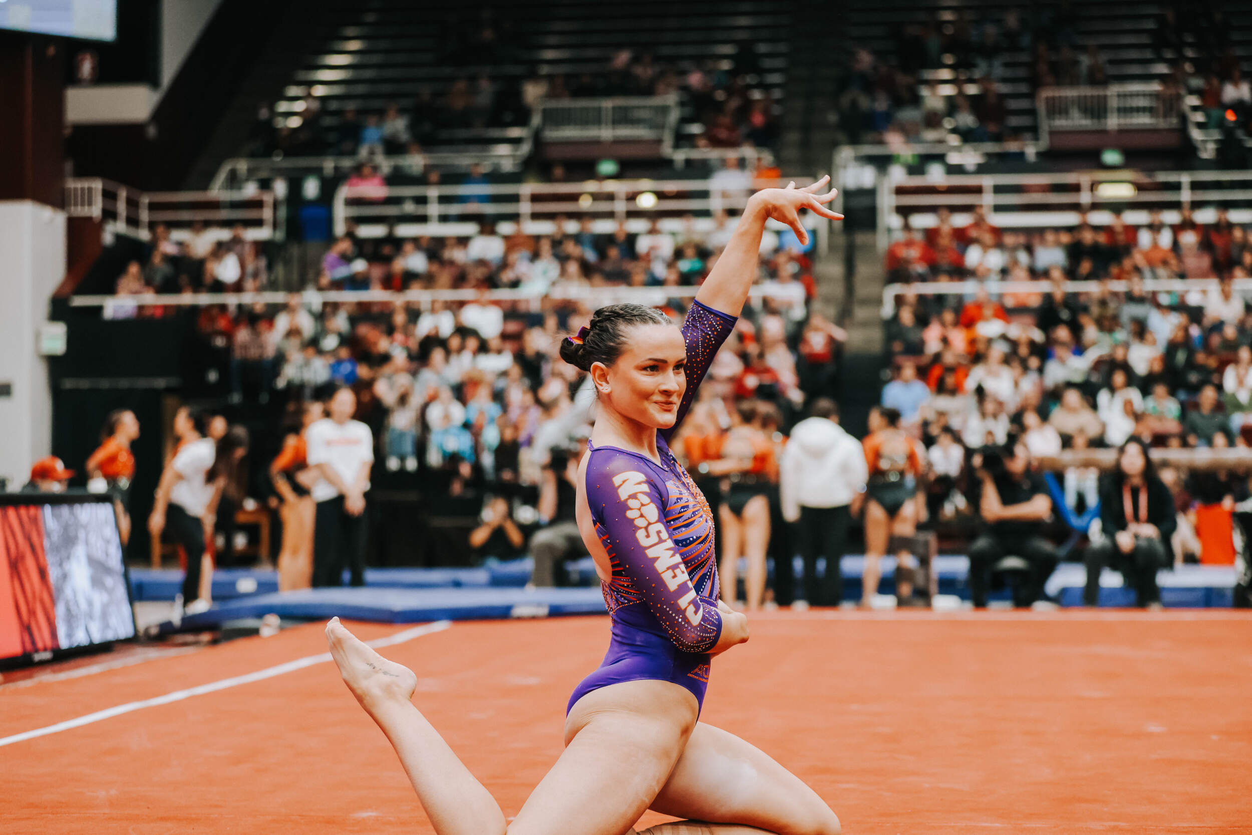 STANFORD, Calif. – Brie Clark tied a pair of career highs and won floor and beam in Clemson’s Sunday performance at No. 9 Stanford, contributing to 16th-ranked Clemson’s 196.300. The Clemson graduate posted a 9.950 on floor to defeat Ana Barbosu, the 2024 Olympic Bronze medalist on floor, and also added a 9.925 against the nation’s No. 6 beam lineup. Clemson (1-3, 0-2 ACC, 196.231 avg.) posted a 196.300, its fourth-highest ever in a true road meet, on Sunday in Maples Pavilion against No. 9 Stanford.