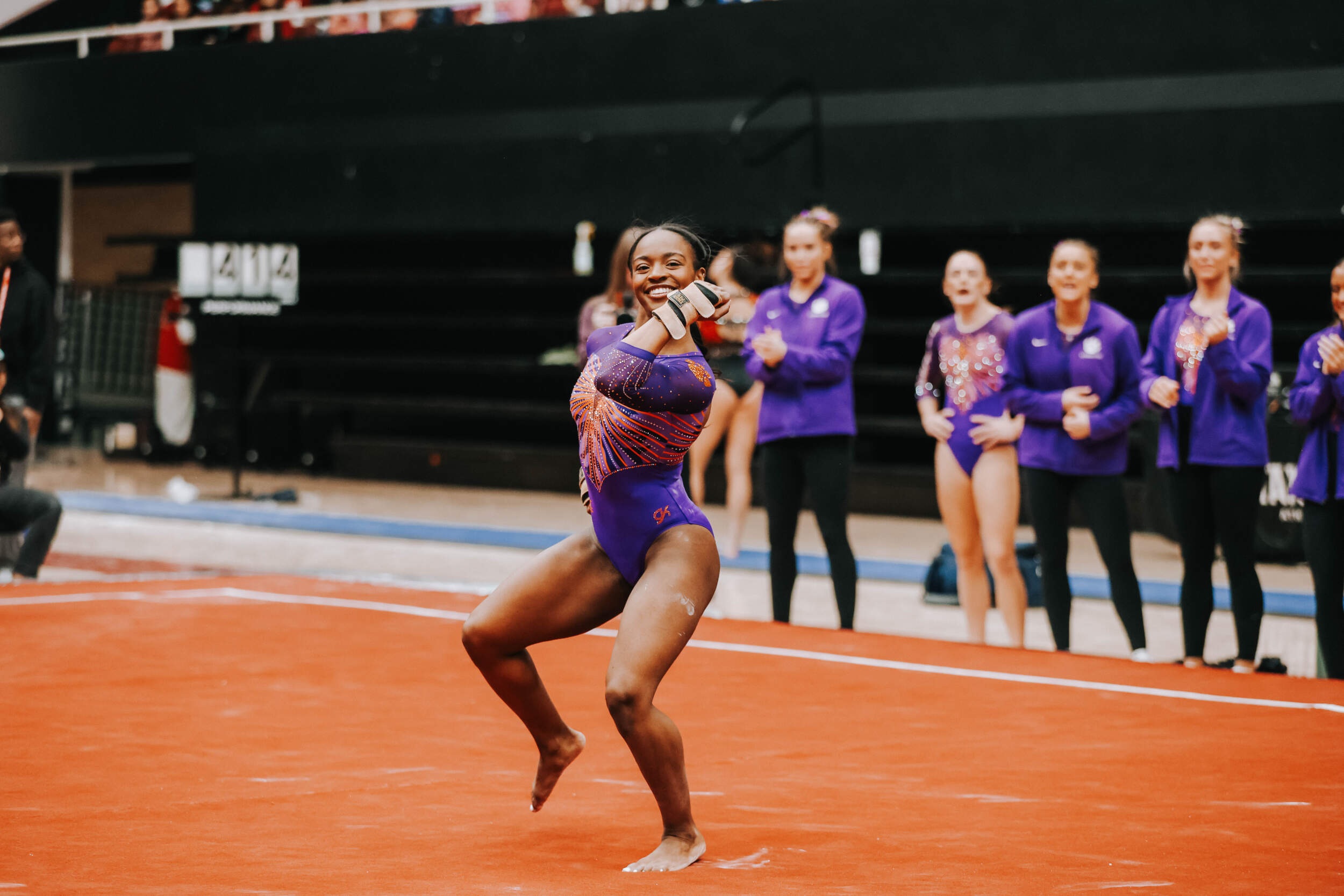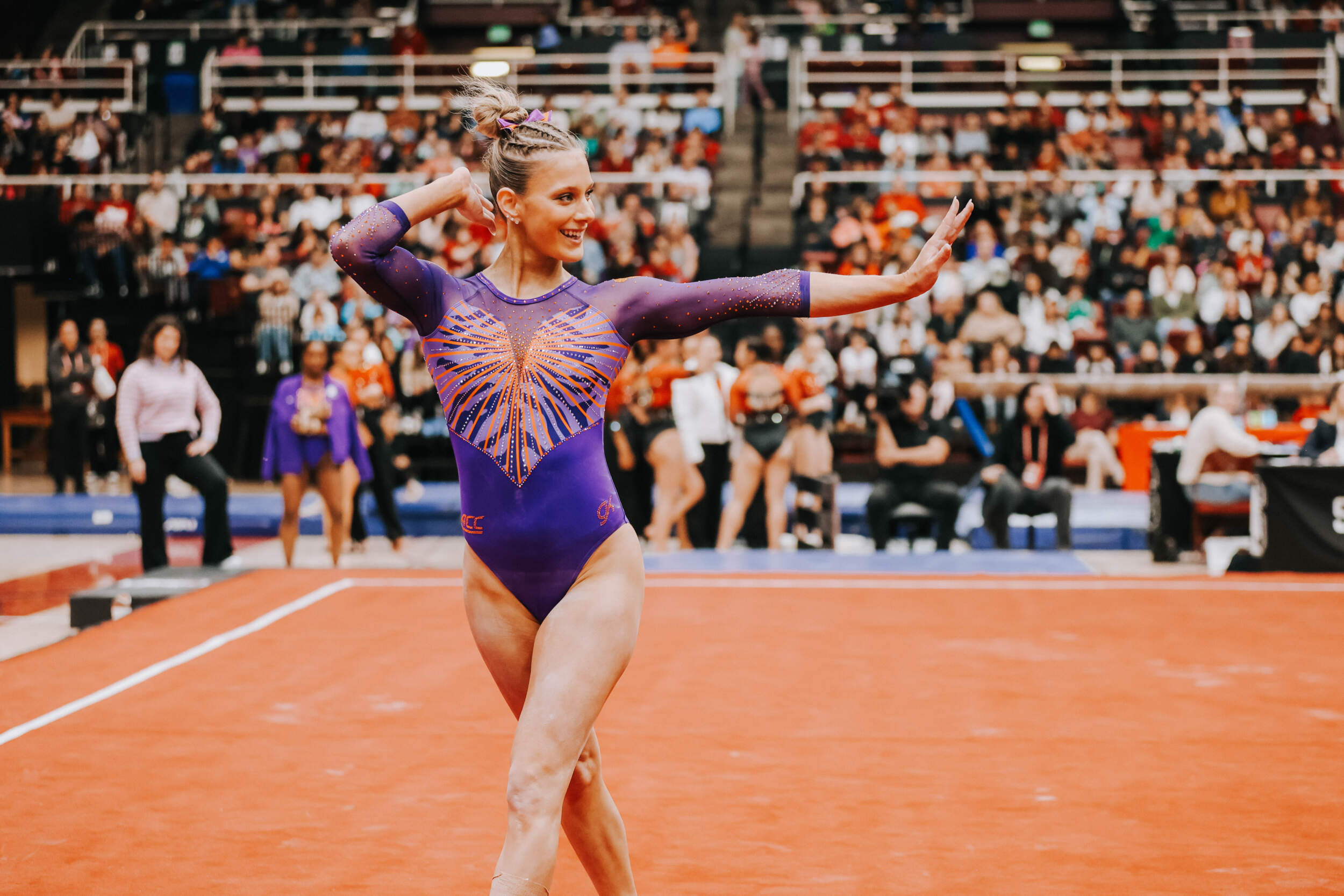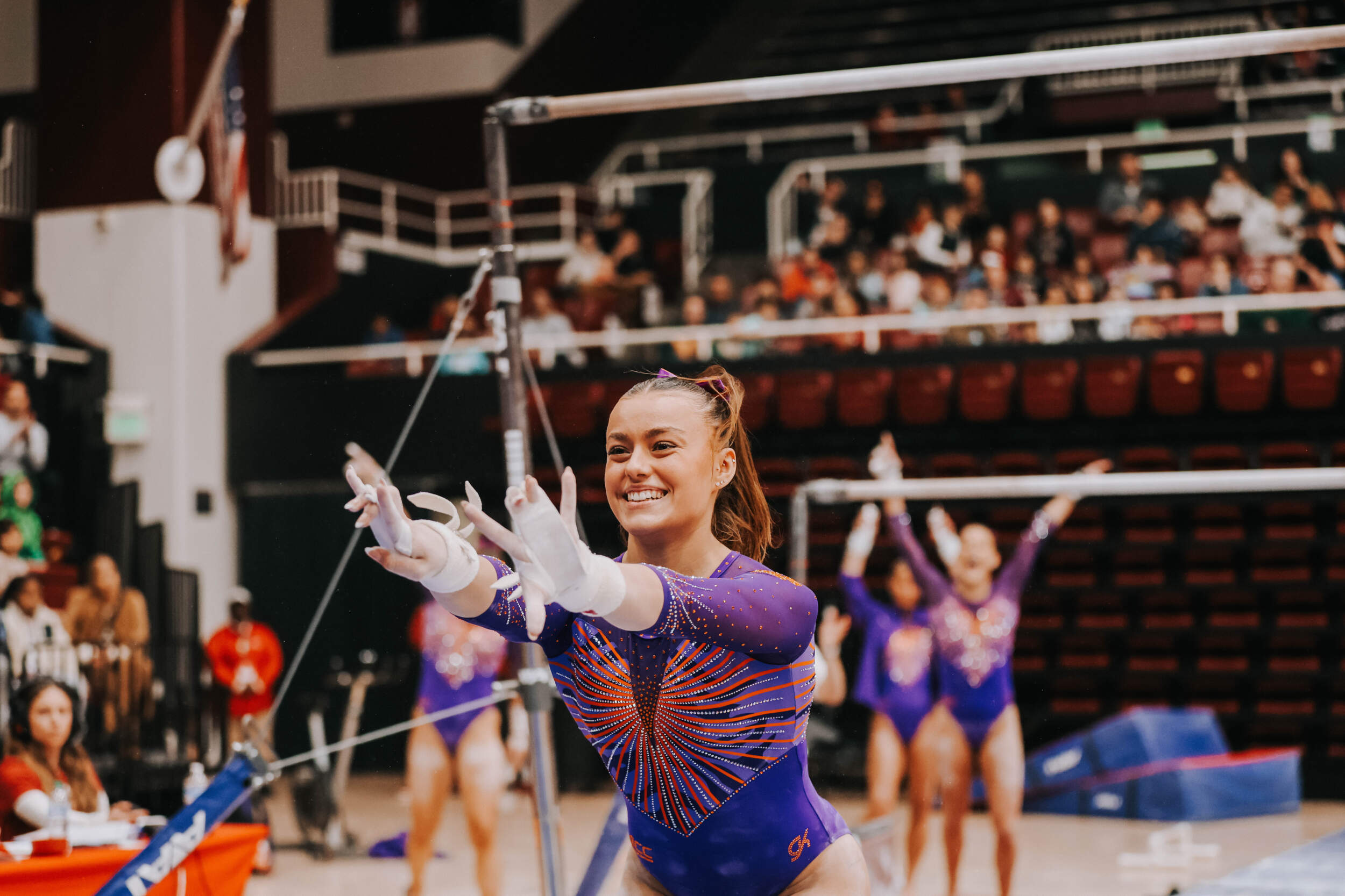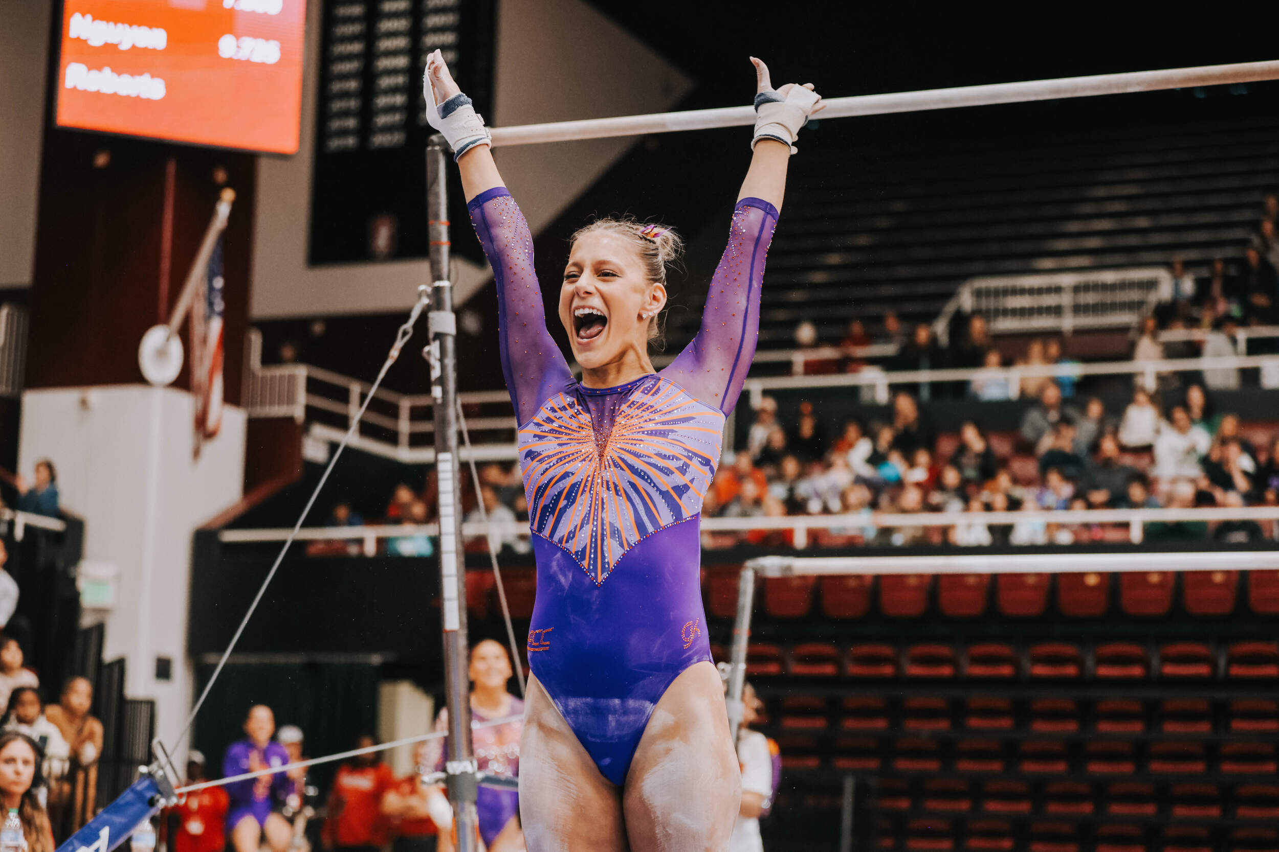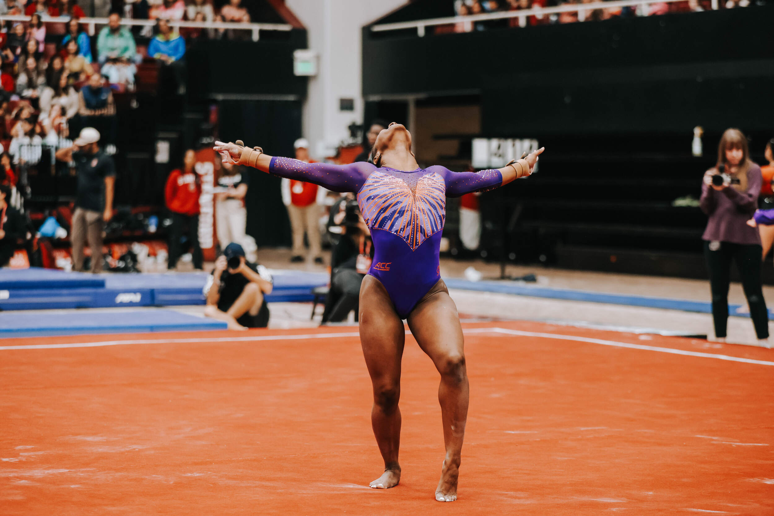 STANFORD, Calif. – Brie Clark tied a pair of career highs and won floor and beam in Clemson’s Sunday performance at No. 9 Stanford, contributing to 16th-ranked Clemson’s 196.300. The Clemson graduate posted a 9.950 on floor to defeat Ana Barbosu, the 2024 Olympic Bronze medalist on floor, and also added a 9.925 against the nation’s No. 6 beam lineup. Clemson (1-3, 0-2 ACC, 196.231 avg.) posted a 196.300, its fourth-highest ever in a true road meet, on Sunday in Maples Pavilion against No. 9 Stanford.