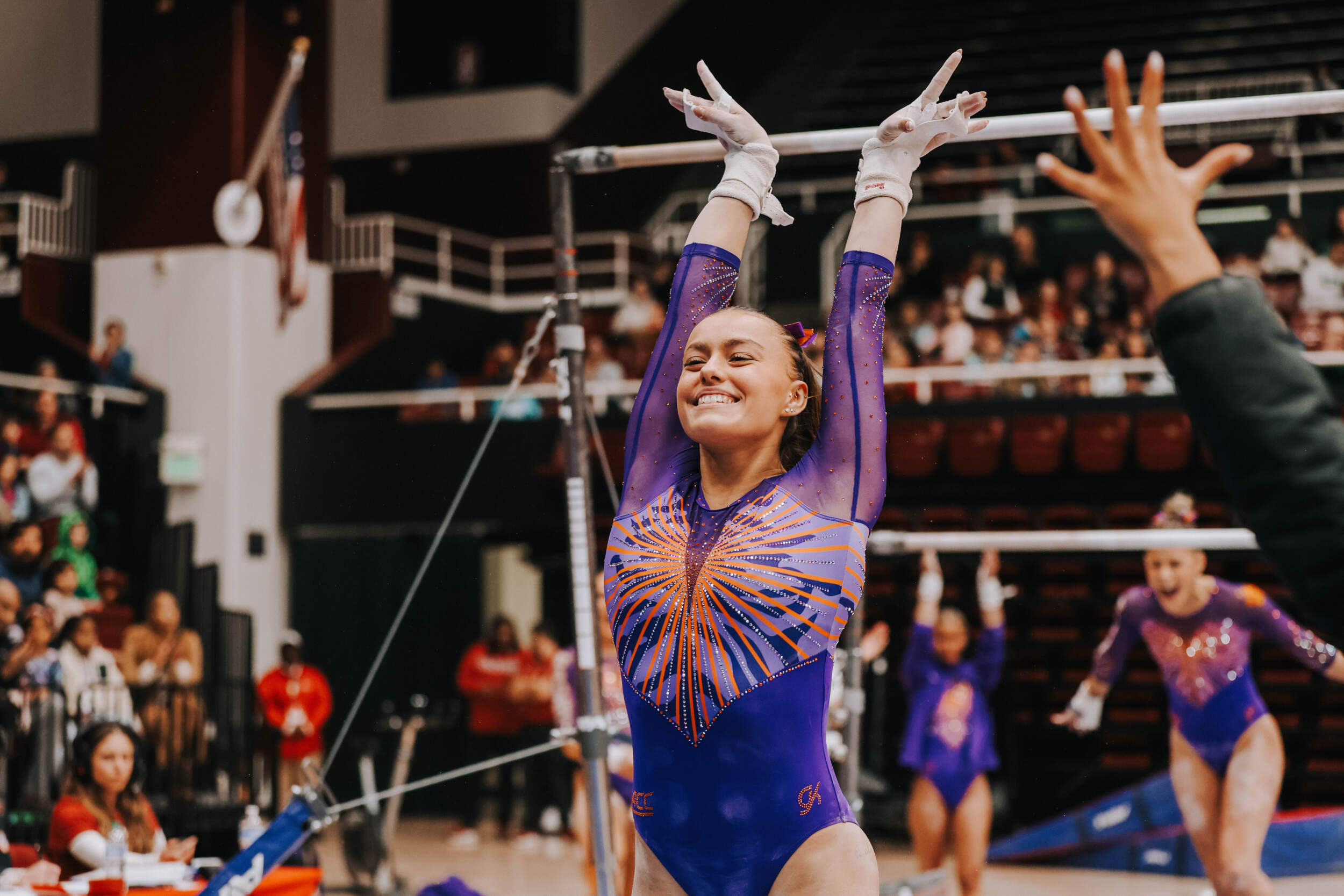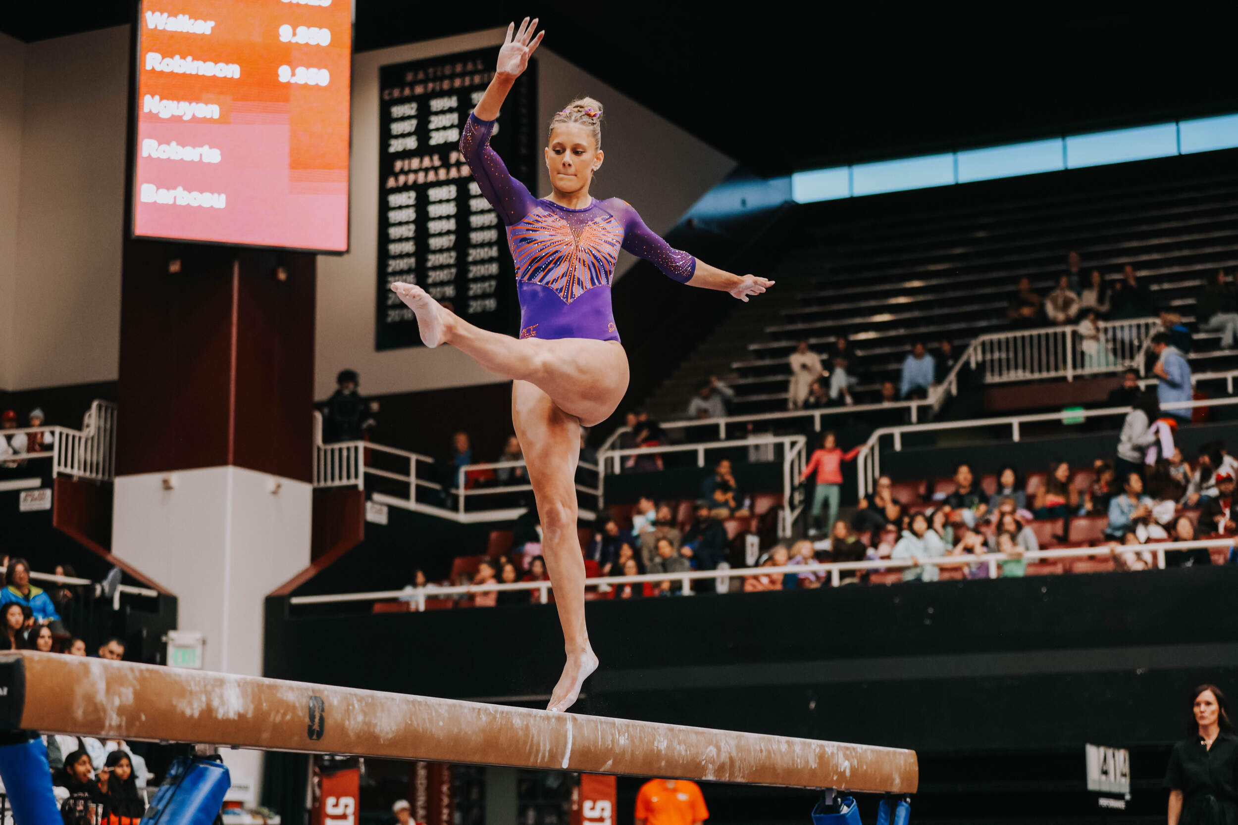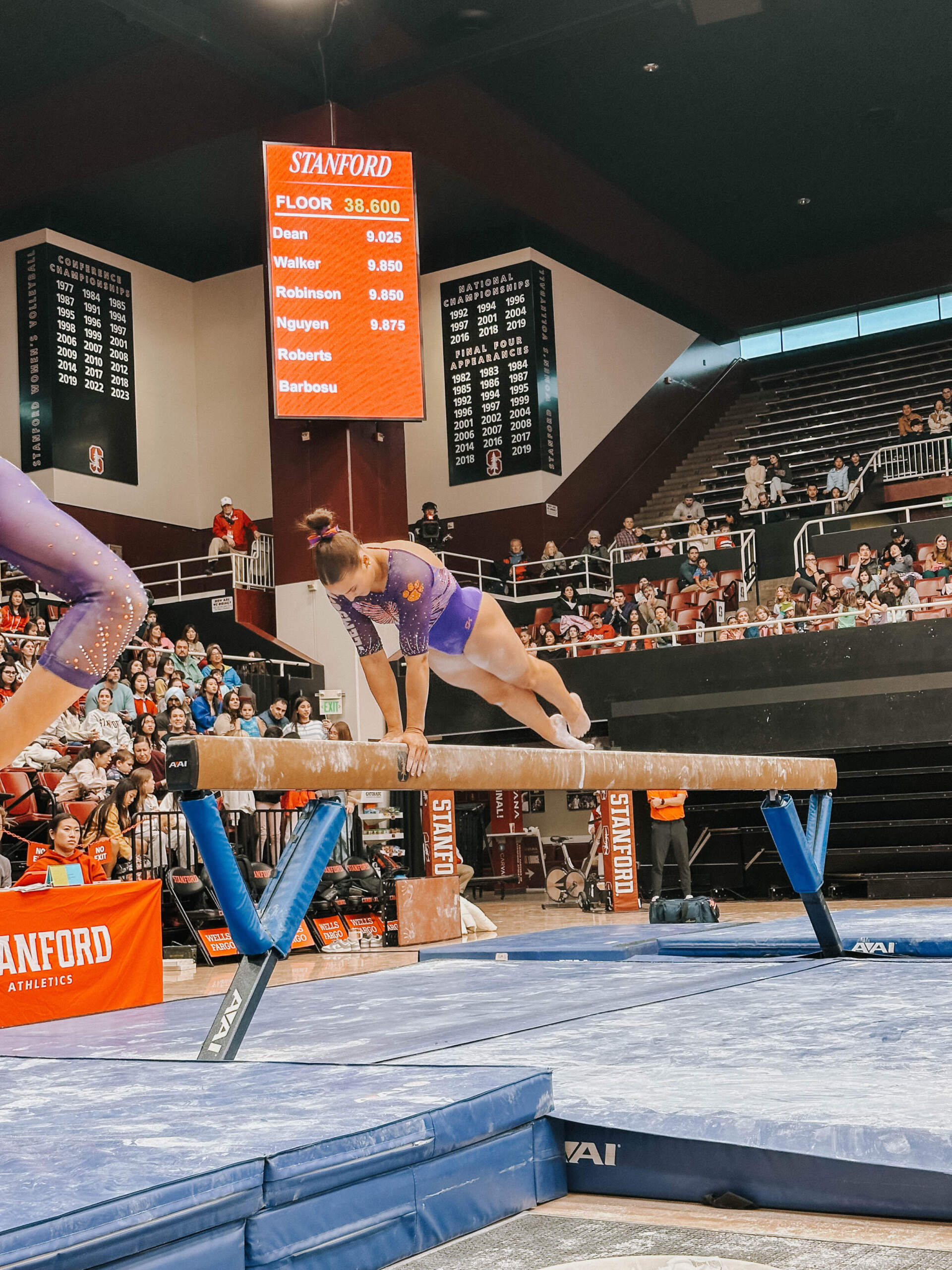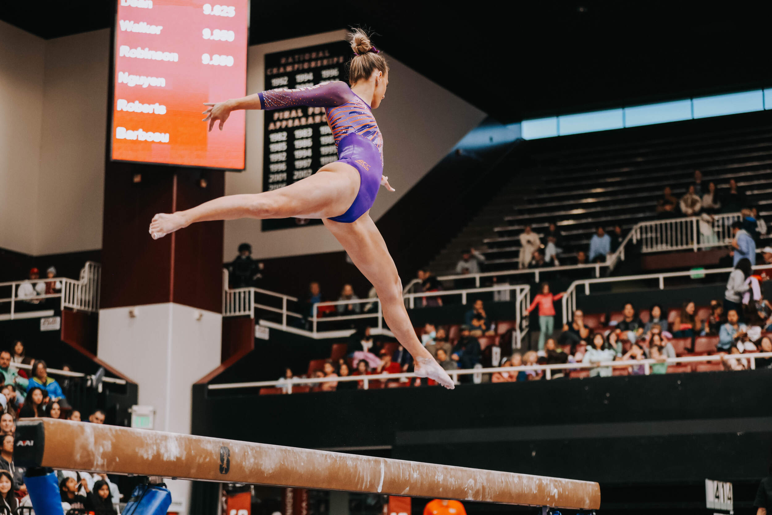 STANFORD, Calif. – Brie Clark tied a pair of career highs and won floor and beam in Clemson’s Sunday performance at No. 9 Stanford, contributing to 16th-ranked Clemson’s 196.300. The Clemson graduate posted a 9.950 on floor to defeat Ana Barbosu, the 2024 Olympic Bronze medalist on floor, and also added a 9.925 against the nation’s No. 6 beam lineup. Clemson (1-3, 0-2 ACC, 196.231 avg.) posted a 196.300, its fourth-highest ever in a true road meet, on Sunday in Maples Pavilion against No. 9 Stanford.
