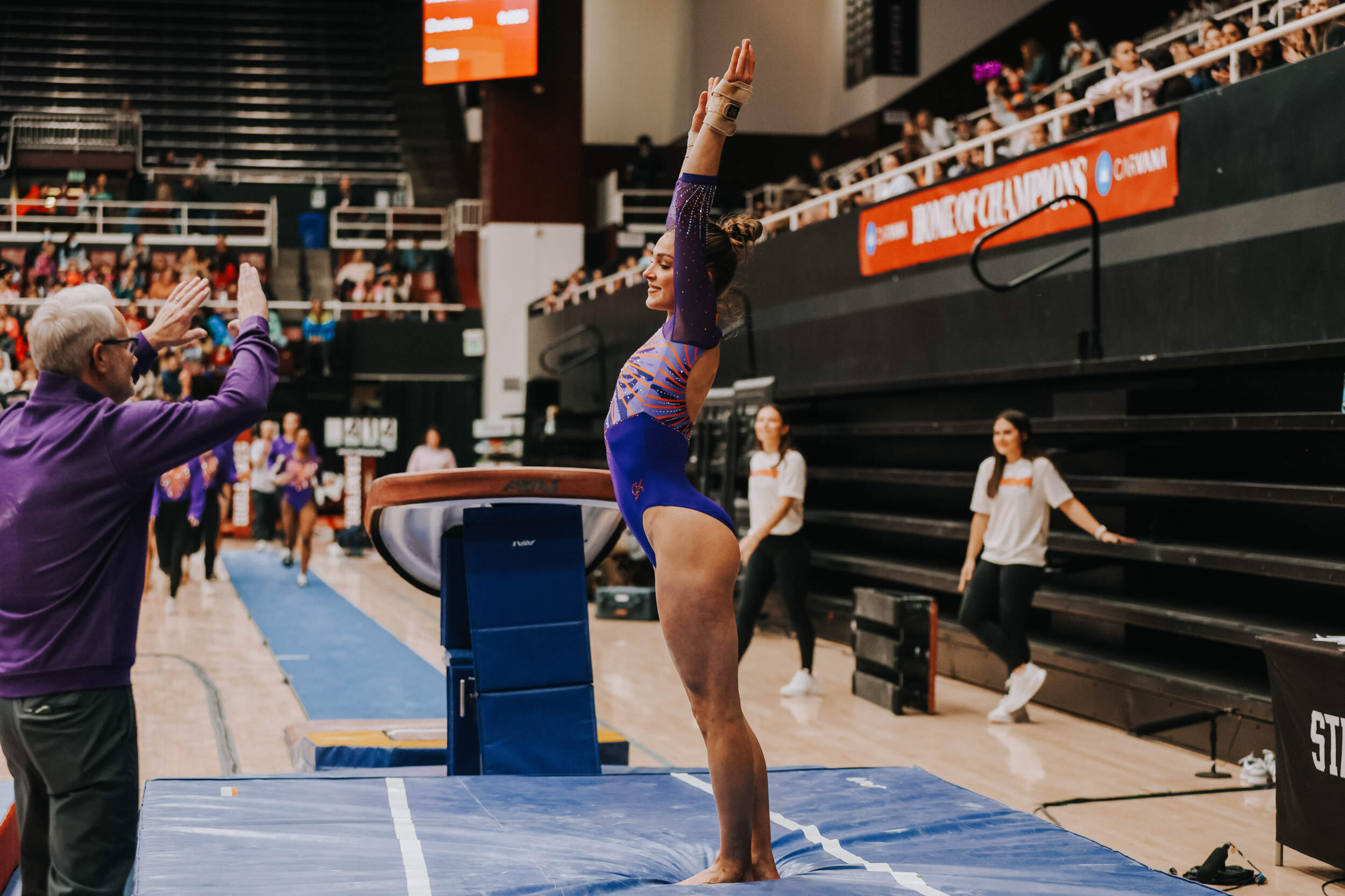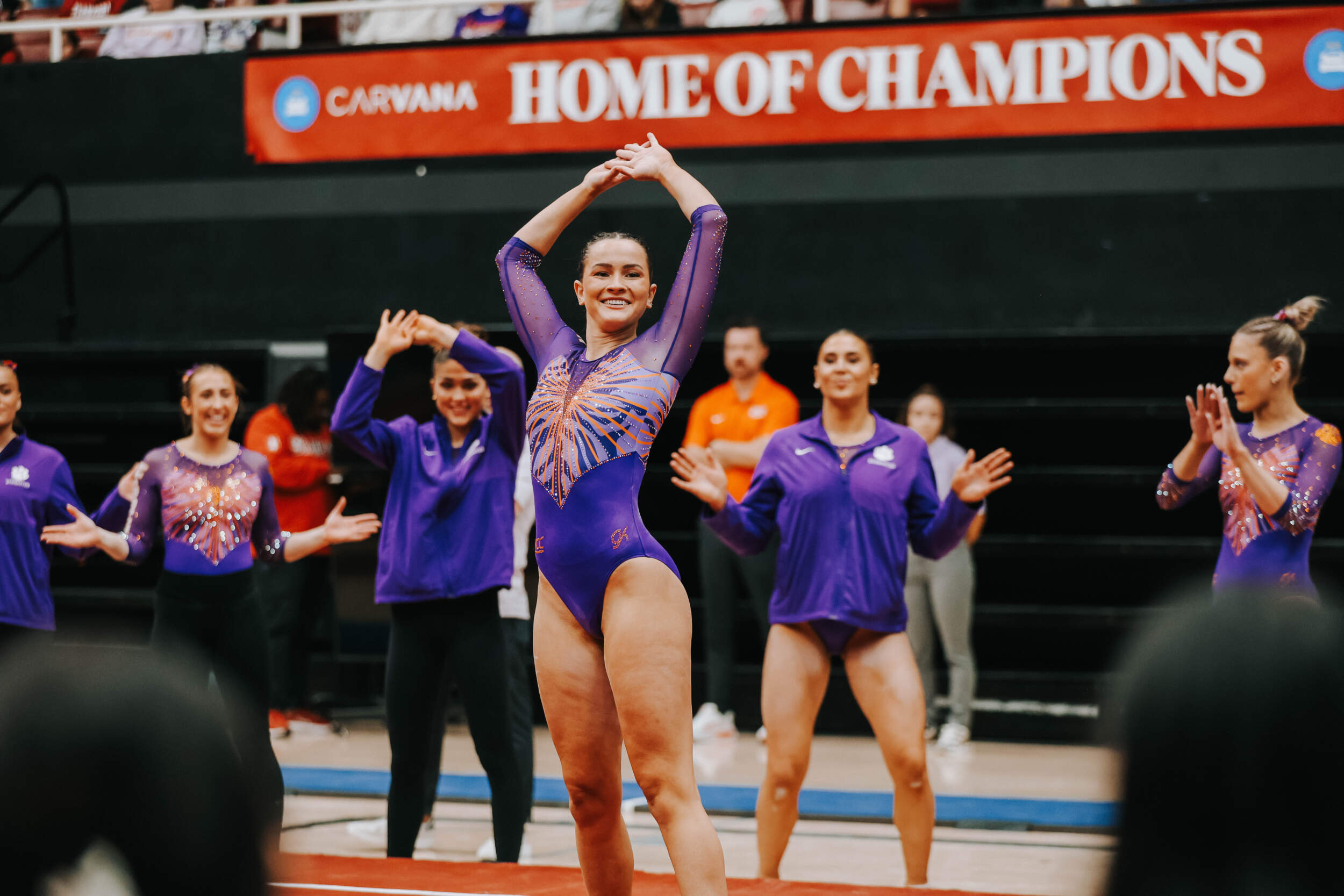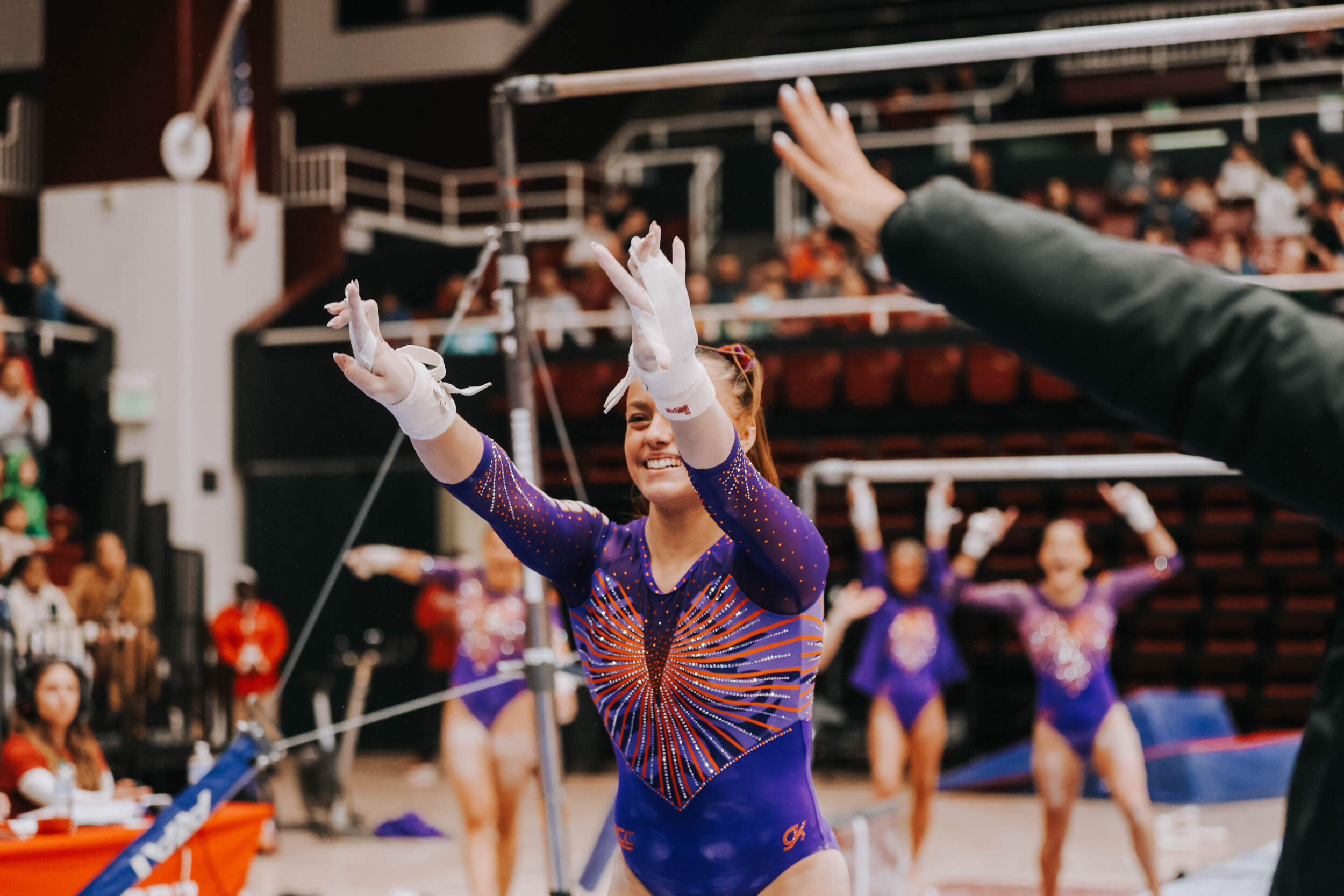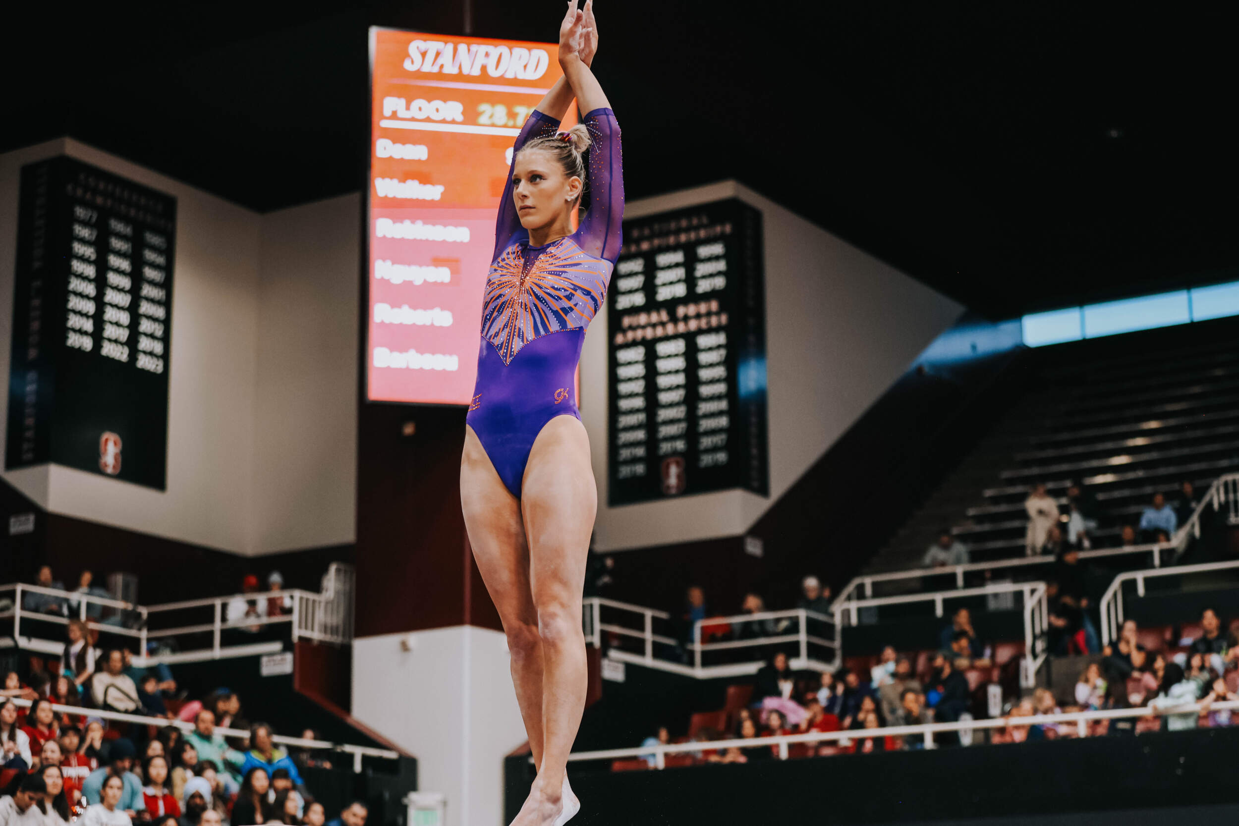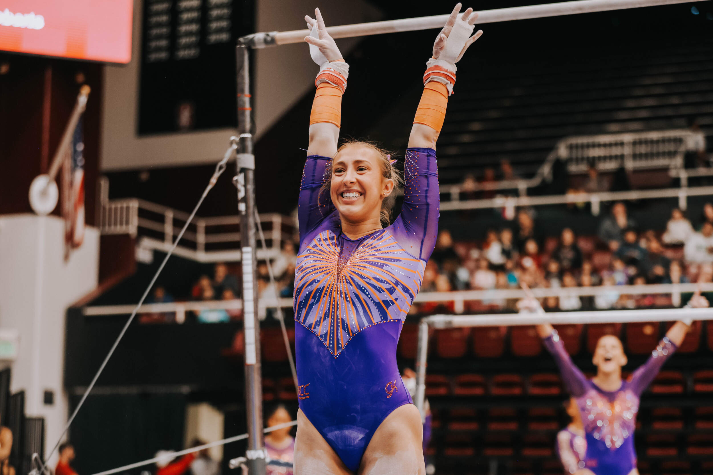 STANFORD, Calif. – Brie Clark tied a pair of career highs and won floor and beam in Clemson’s Sunday performance at No. 9 Stanford, contributing to 16th-ranked Clemson’s 196.300. The Clemson graduate posted a 9.950 on floor to defeat Ana Barbosu, the 2024 Olympic Bronze medalist on floor, and also added a 9.925 against the nation’s No. 6 beam lineup. Clemson (1-3, 0-2 ACC, 196.231 avg.) posted a 196.300, its fourth-highest ever in a true road meet, on Sunday in Maples Pavilion against No. 9 Stanford.