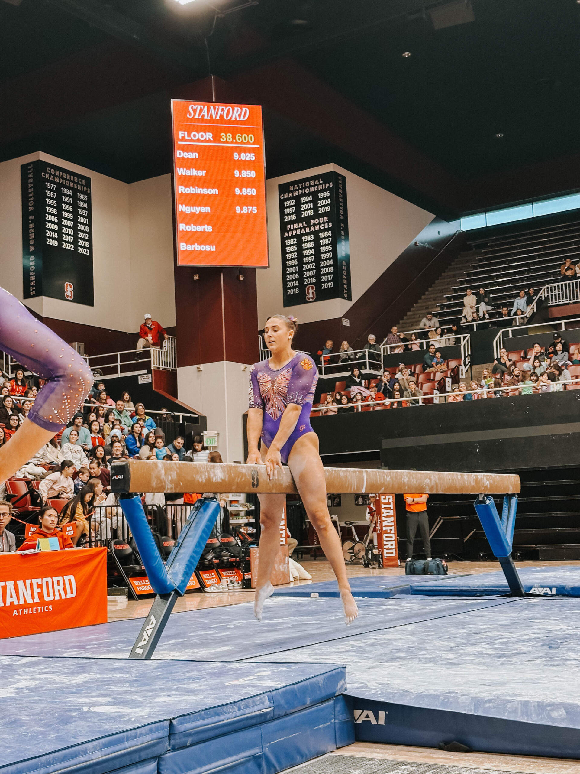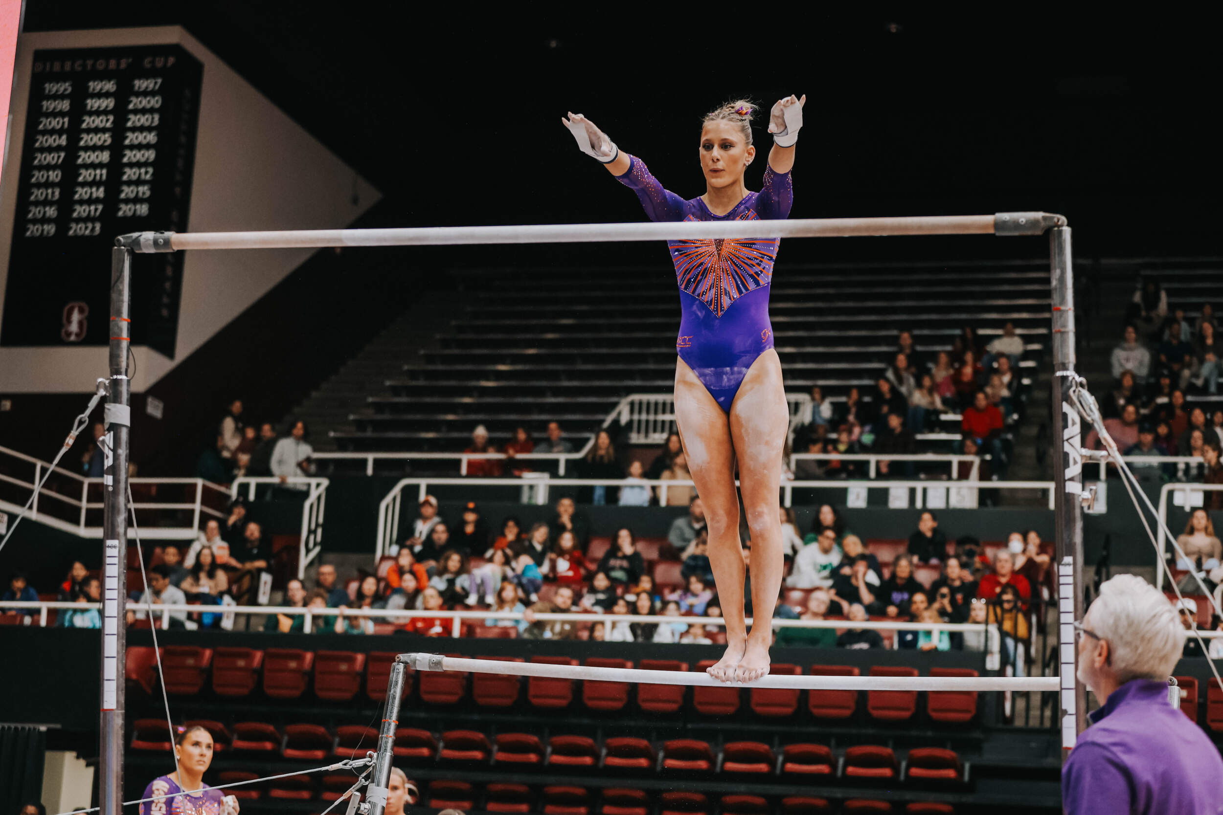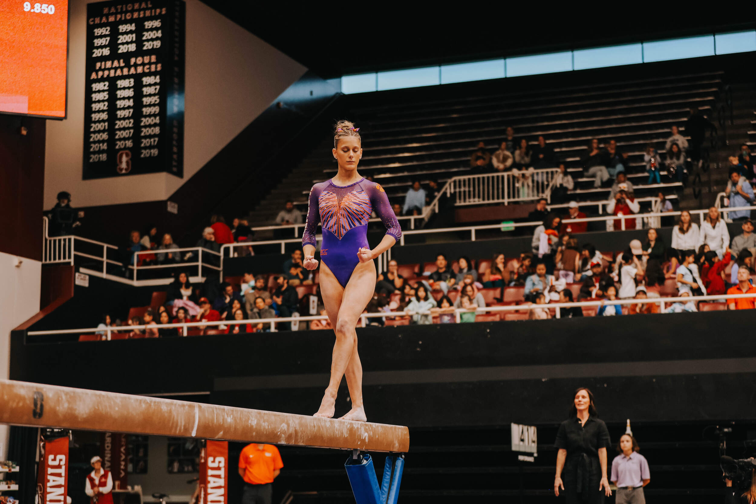 Walsh led off with a career-high-tying 9.875, and her second of the meet (floor). Lippeatt followed with a 9.75, setting the table for Brie Clark, who was nearly perfect en route to a 9.925, tying her career-best and giving her the individual event victory. Stanford entered the meet as the nation’s No. 6 beam lineup and posted a 49.325. Cesario continued her strong beam appearances with a 9.800, and Quinn Kuhl closed with a 9.775.