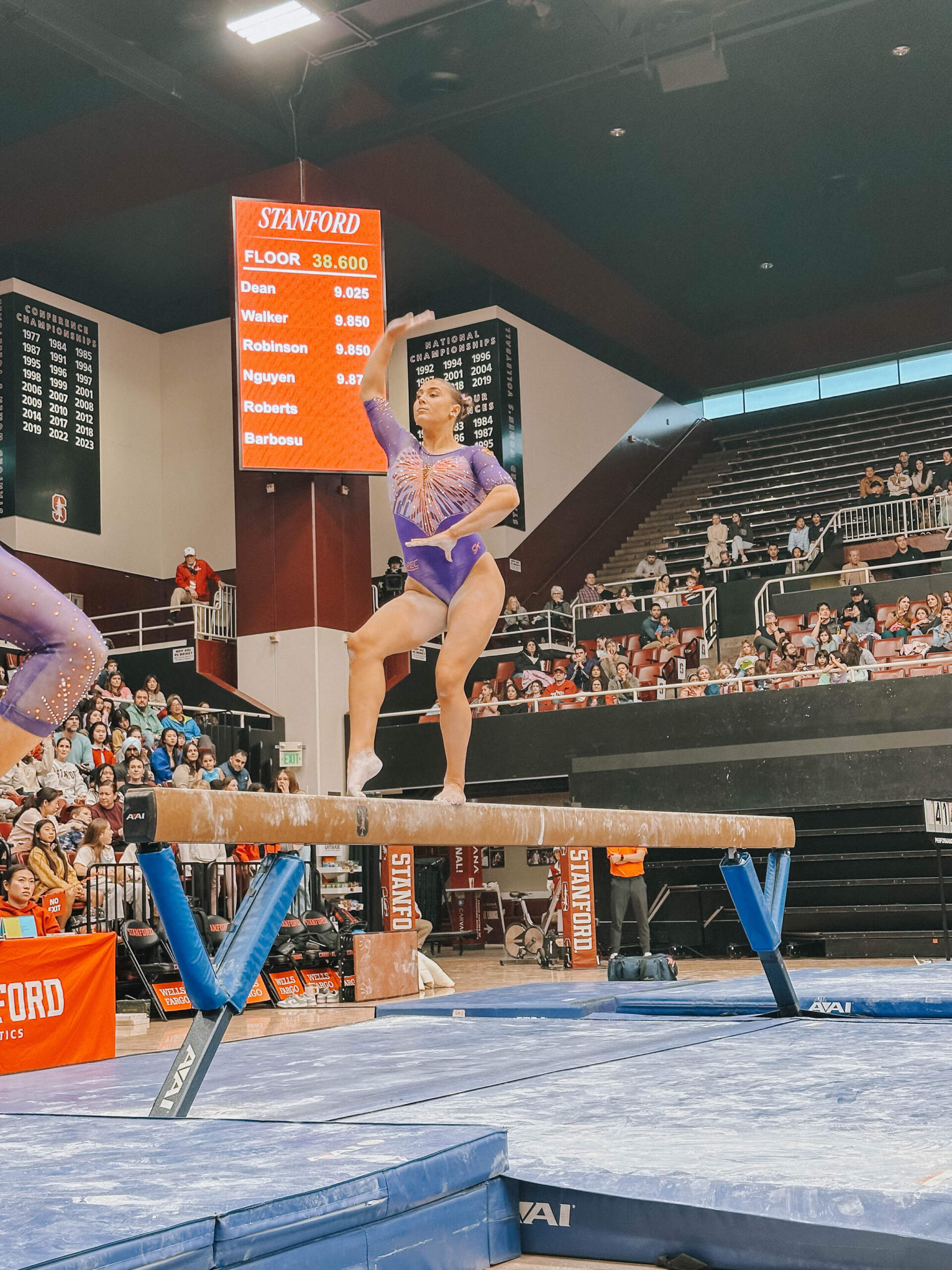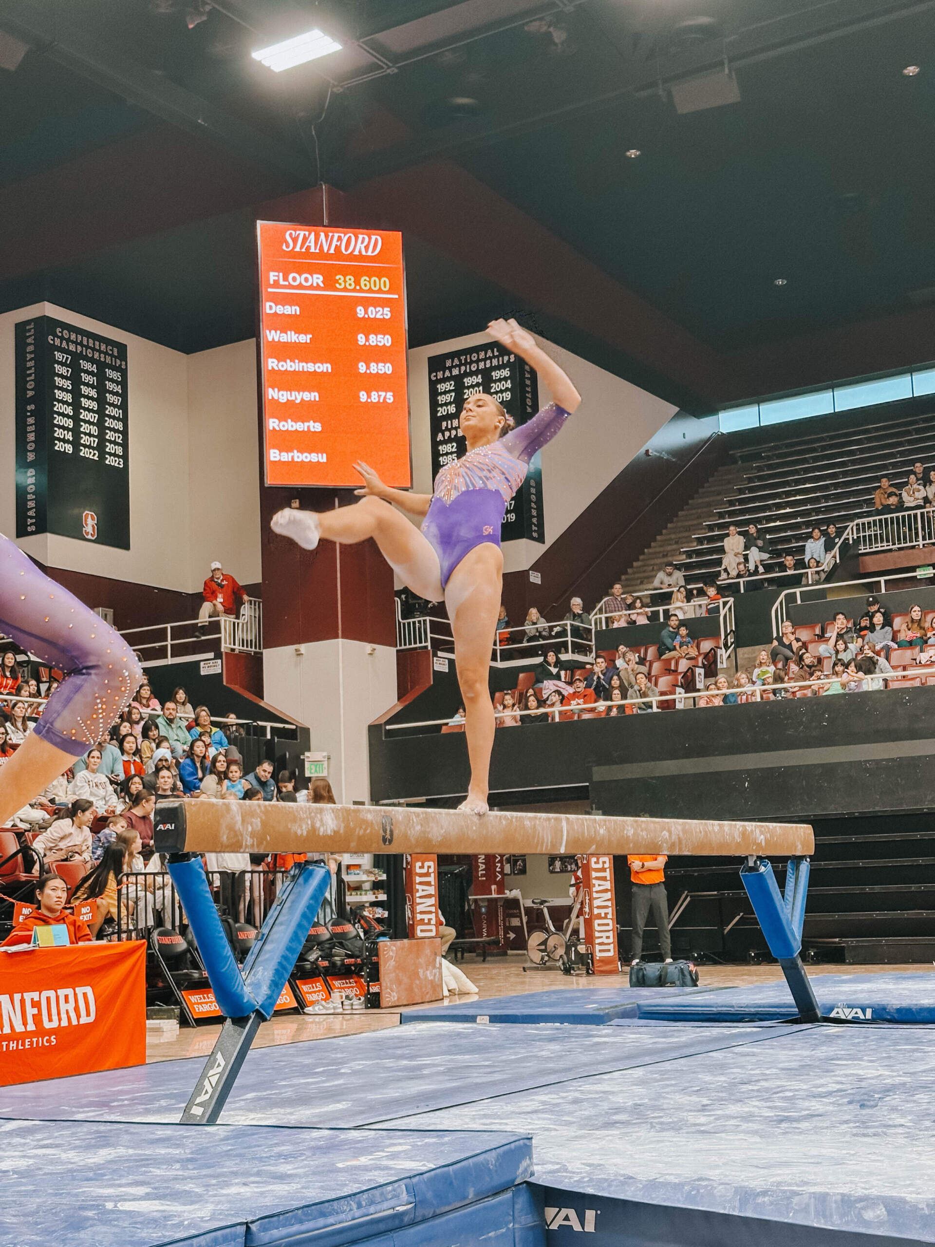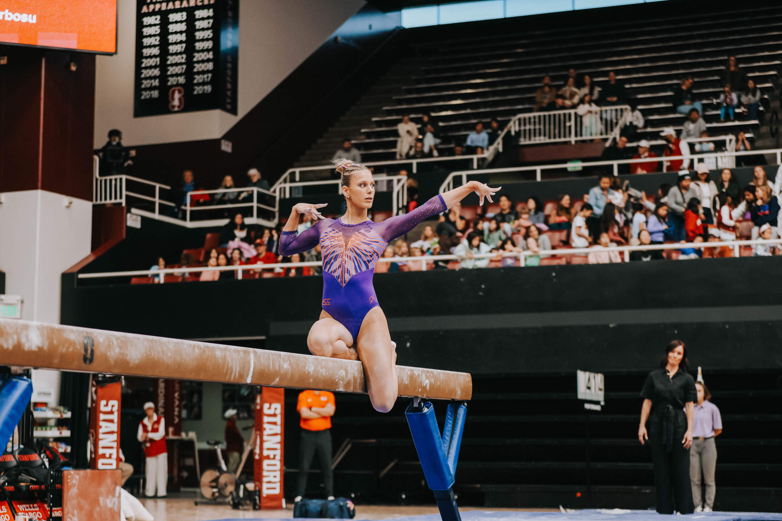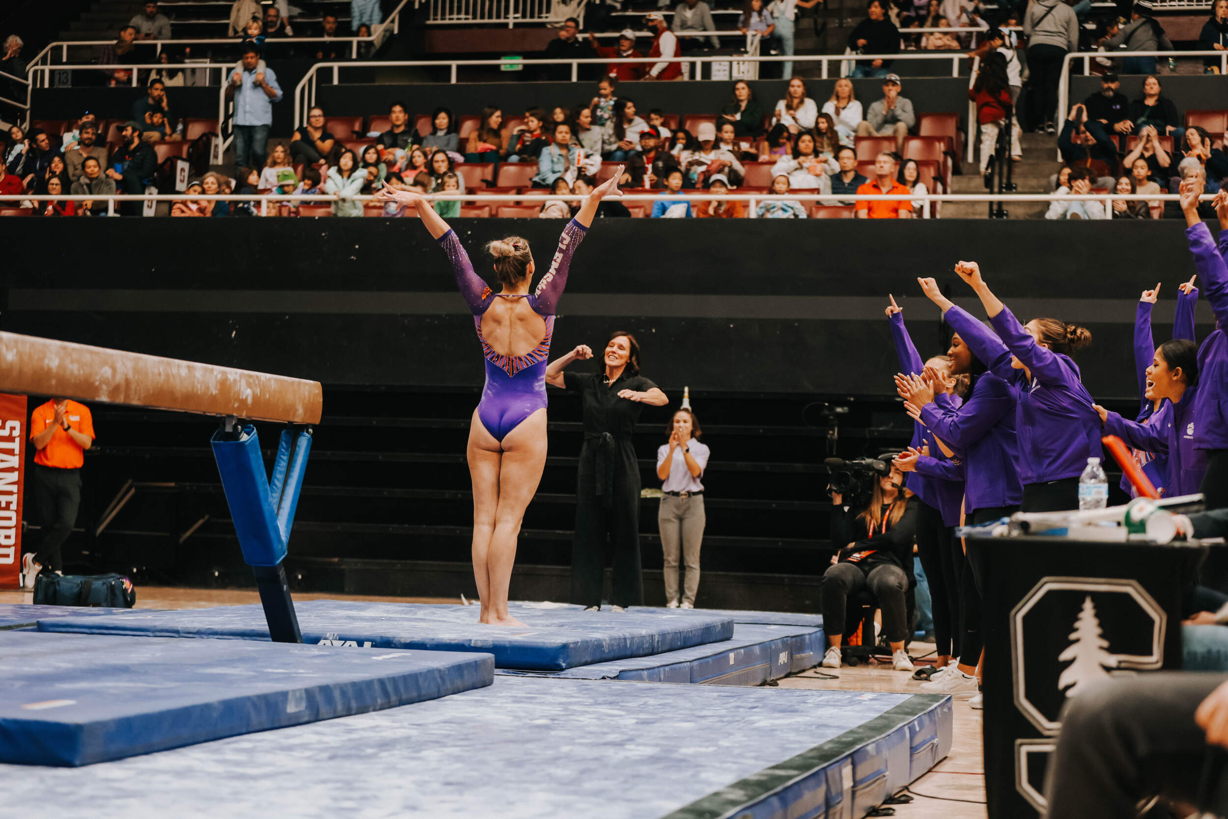 Walsh led off with a career-high-tying 9.875, and her second of the meet (floor). Lippeatt followed with a 9.75, setting the table for Brie Clark, who was nearly perfect en route to a 9.925, tying her career-best and giving her the individual event victory. Stanford entered the meet as the nation’s No. 6 beam lineup and posted a 49.325. Cesario continued her strong beam appearances with a 9.800, and Quinn Kuhl closed with a 9.775.