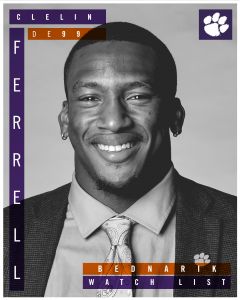 CLEMSON, S.C. – The Maxwell Football Club today announced watch lists for the 82nd annual Maxwell Award and the 24th annual Chuck Bednarik Award, with three members of the Clemson football program appearing on each respective list.