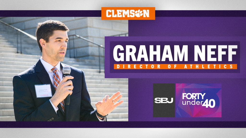 Clemson Athletic Director Graham Neff was named to the Sports Business Journal “Forty under 40” Class of 2022, as announced by the publication in its April 11 issue. This coveted honor is given to 40 individuals under the age of 40 who have incredible leadership potential, and recognized for excellence and innovation in their careers. At 38, Neff is the youngest sitting AD in the Power Five conferences.