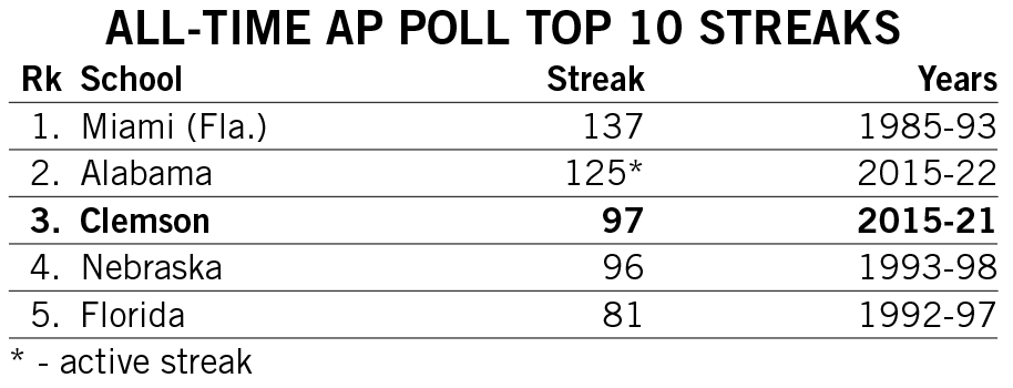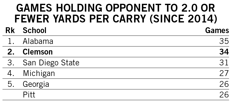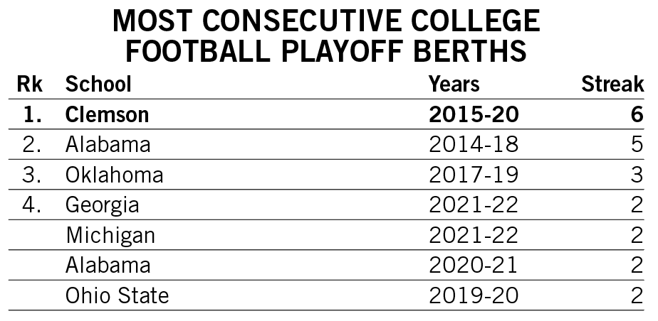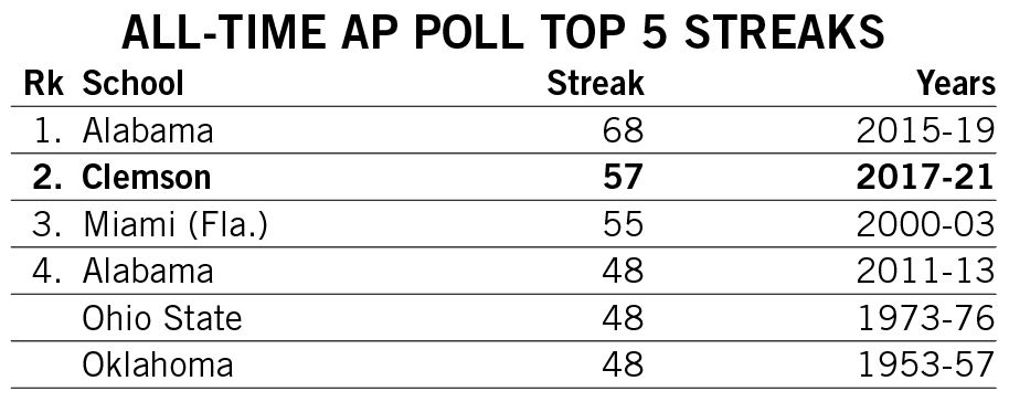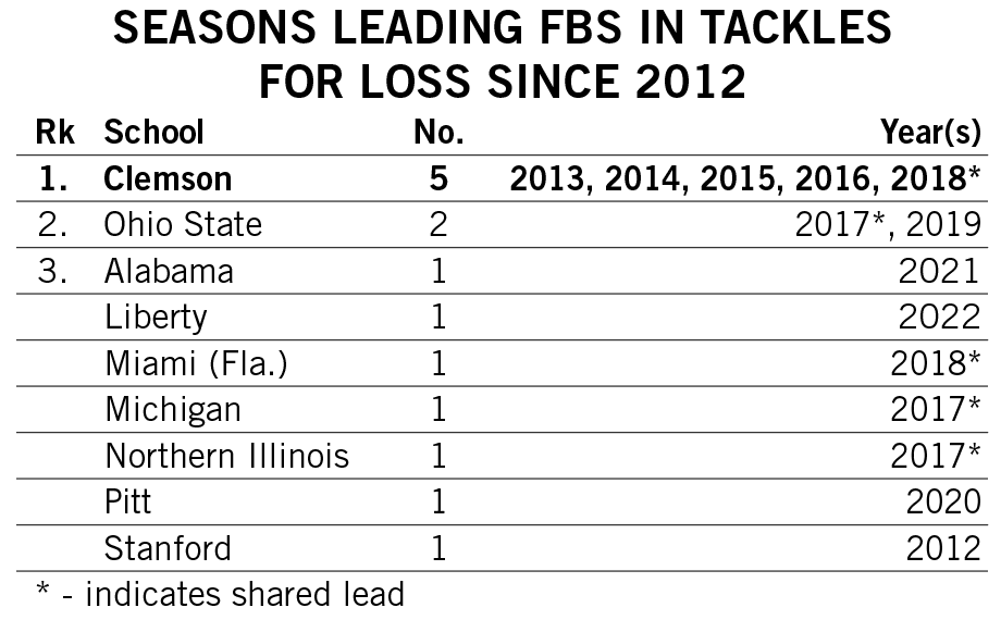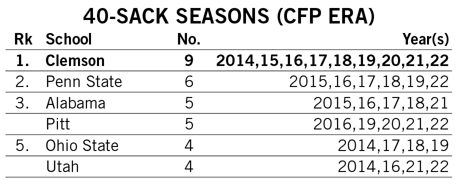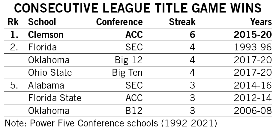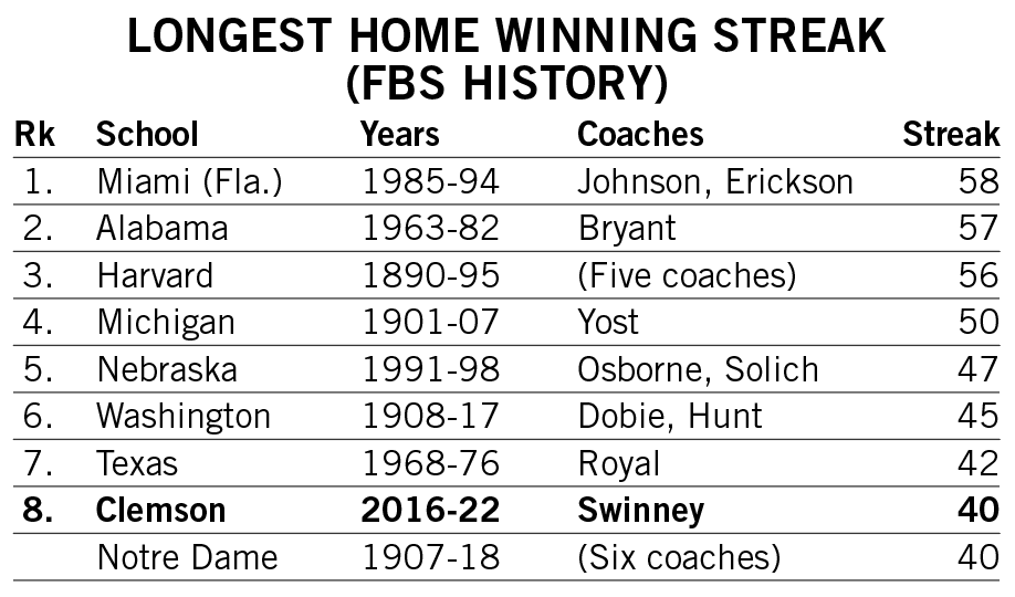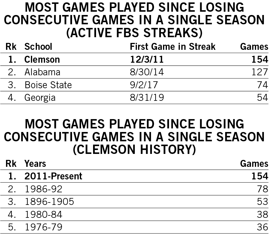 Shipley scored a rushing touchdown in seven straight games across the 2021-22 seasons and then rattled off another six-game streak late in 2022. He is responsible for two of the 12 longest streaks of games with a rushing touchdown in Clemson history.