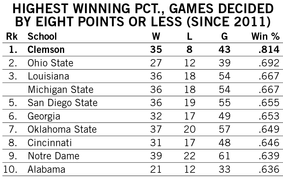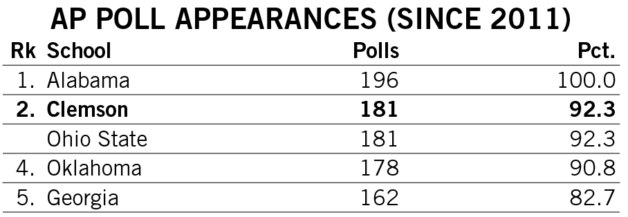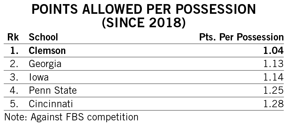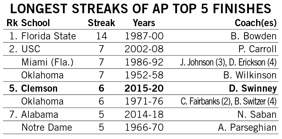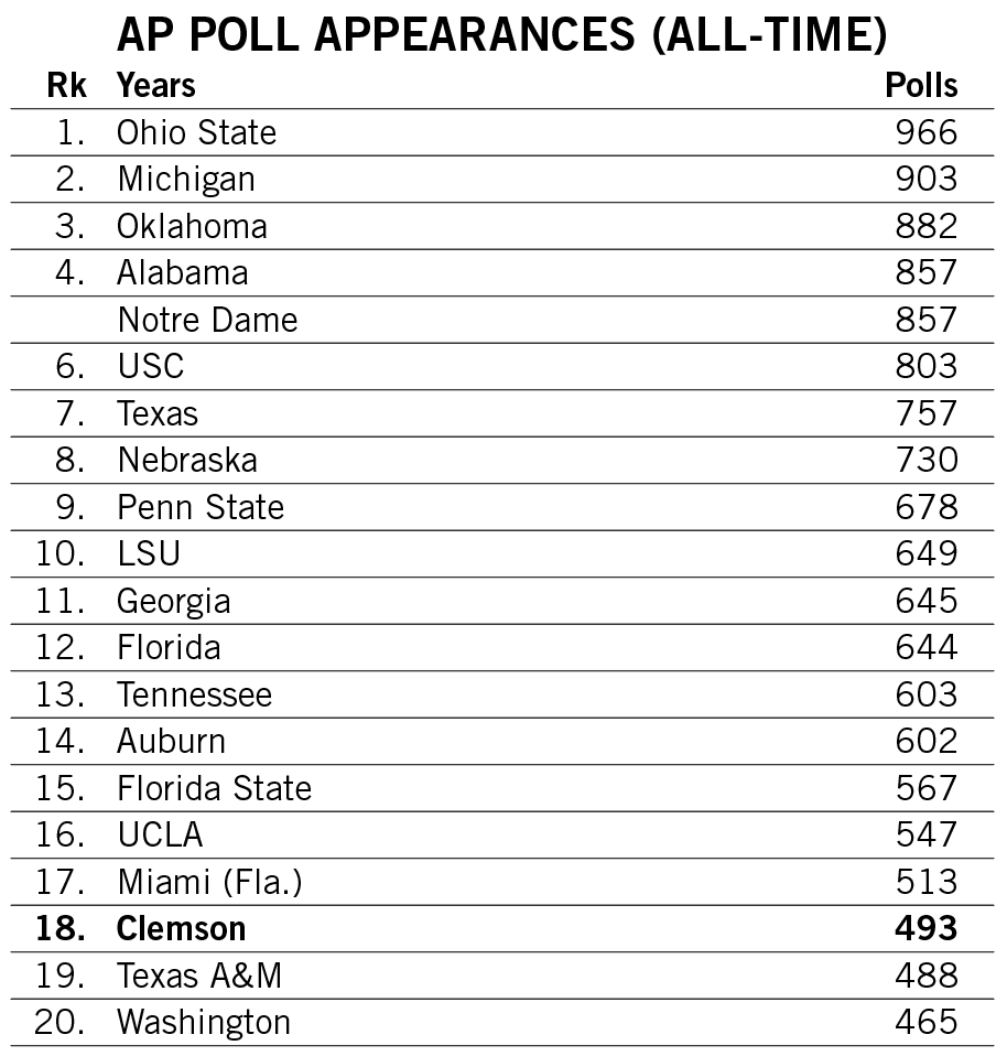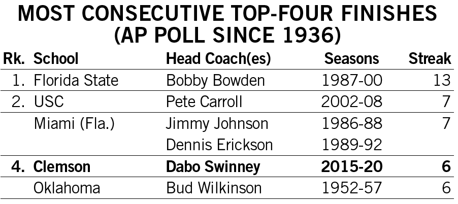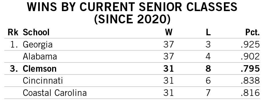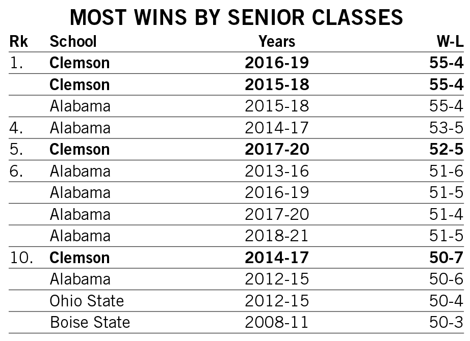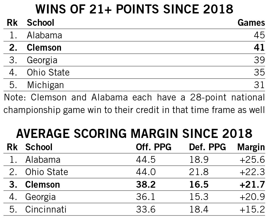 Shipley scored a rushing touchdown in seven straight games across the 2021-22 seasons and then rattled off another six-game streak late in 2022. He is responsible for two of the 12 longest streaks of games with a rushing touchdown in Clemson history.