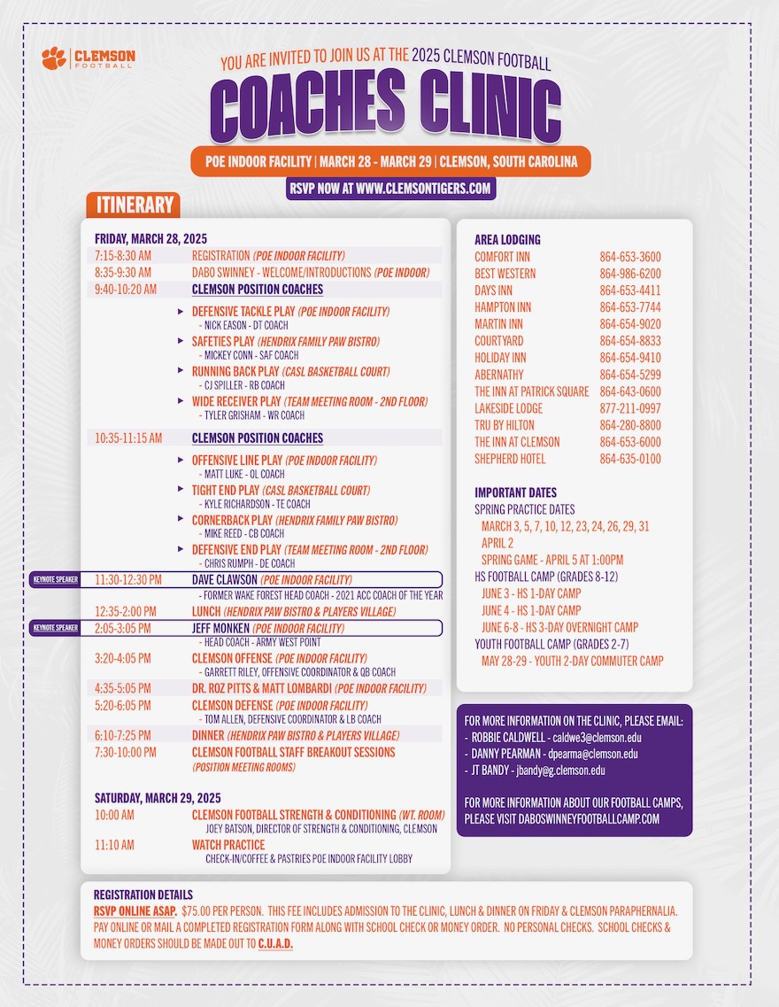 Clinic Dates (Times Subject to Change):
