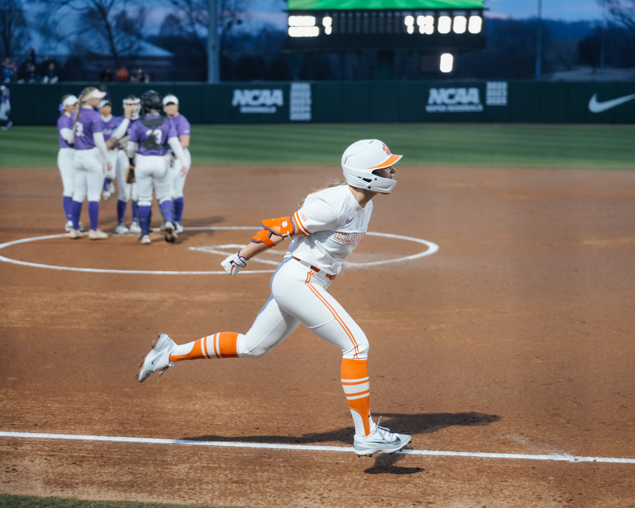 The Tigers struck early in the bottom of the first, as leadoff hitter Jamison Brockenbrough hit her second homer of the season over the wall in right-center. Two hitters later, Marian Collins repeated the feat, this time going 232 feet to left center, plating Kiley Channell from first to give the Tigers a 3-0 lead before recording an out.