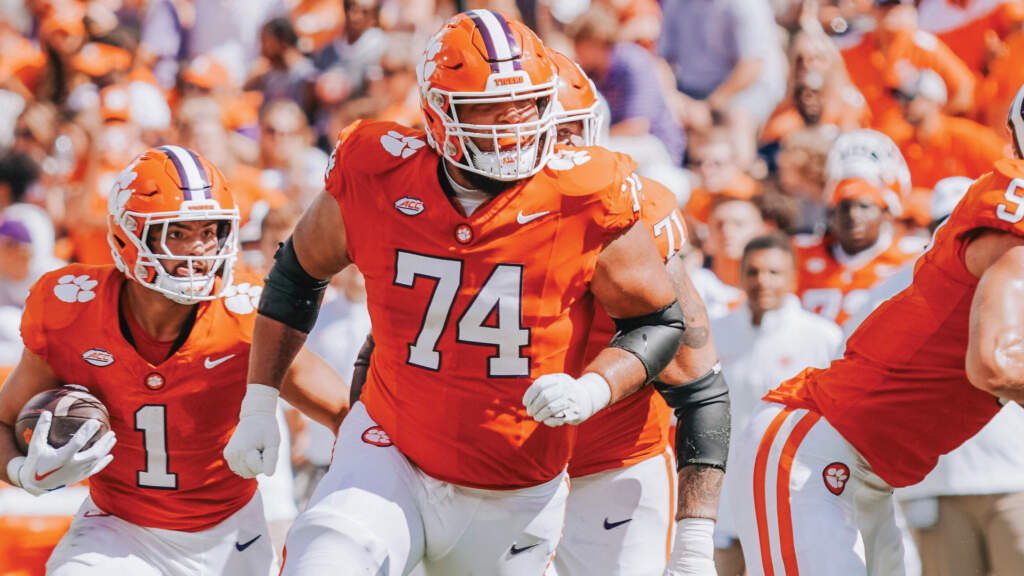 2023: Played 507 offensive snaps over eight games (all starts) before being lost to a season-ending injury … played 68 snaps in season debut at Duke, helping the Tigers exceed both 200 passing yards and 200 rushing yards … played 41 snaps as Clemson amassed 679 yards of offense and 37 first downs vs. Charleston Southern … played 43 snaps in Clemson’s sack-free win vs. Florida Atlantic … played 82 snaps in a 429-yard effort vs. No. 4 Florida State … played 63 snaps in a win at Syracuse … played 70 snaps as Clemson rushed for 207 yards vs. Wake Forest … played 62 snaps in Cade Klubnik’s 314-yard passing performance at Miami (Fla.) … played 78 snaps at NC State … suffered a season-ending injury in practice.