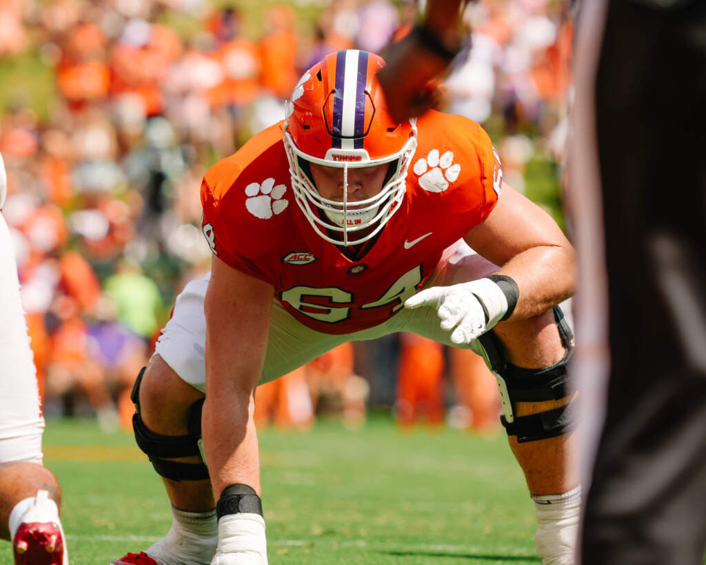 2025: Missed the season opener but returned to action with nine snaps vs. Troy … played all 63 snaps at Georgia Tech as Clemson rushed for 174 yards and allowed no sacks … played 31 snaps as Clemson accrued 503 yards vs. Syracuse … played one snap at North Carolina … played 27 snaps in helping Clemson exceed both 200 passing yards and 200 rushing yards at Boston College … played one snap vs. SMU … returned to the starting lineup and played 65 snaps in Clemson’s 560-yard performance vs. Duke, becoming the eighth Clemson player on record to play 3,000 career snaps from scrimmage … played 37 snaps in Clemson’s turnover-free win vs. Florida State … played 34 snaps in Clemson’s ranked road win at No. 19 Louisville before suffering a season-ending injury.