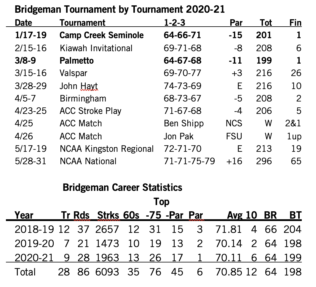 Bridgeman Tournament by Tournament 2020-21