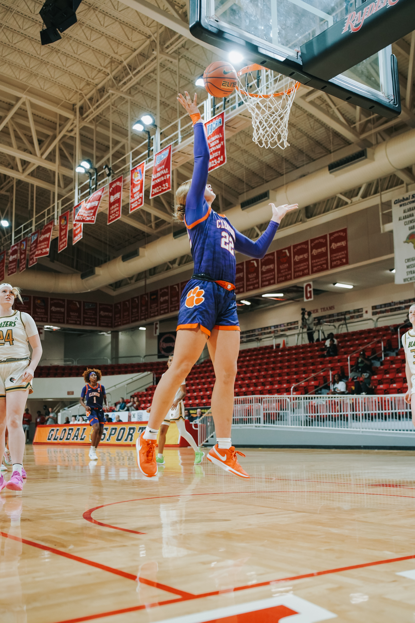 After a made UAB layup 47 seconds into the contest, a three by Mia Moore got the Tigers on the board with 8:48 to play, and Clemson did not trail for the remainder of the competition. Moore and McQueen teamed up a combined 23 points, 10 boards, 4 assists and 2 steals in the first half. The Tigers went on a 12-0 run spanning the end of the first quarter into the second over a 4:17 period, with five different Tigers making shots. Clemson forced nine UAB turnovers this half, which they converted 14 points off of.