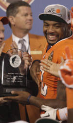 “It’s our first time to win 10 games in 20 years. It’s our first time to win an ACC Championship in 20 years, first time to go to the Orange Bowl in 30 years… So it’s just great to be a Tiger, and we’re 10-3, and we’re excited about representing the ACC in the Discover Orange Bowl.”