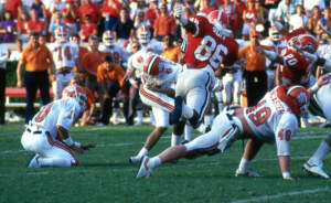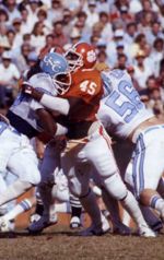 Jerry Butler made a diving backwards reception of a 20-yard pass from Steve Fuller with 49 seconds remaining, giving the Tigers a 31-27 victory in Columbia. The play might be regarded as the most famous in Clemson history. The victory gave the Tigers an 8-3 record and a bid to the Gator Bowl, Clemson’s first bowl bid in 18 years. Read More